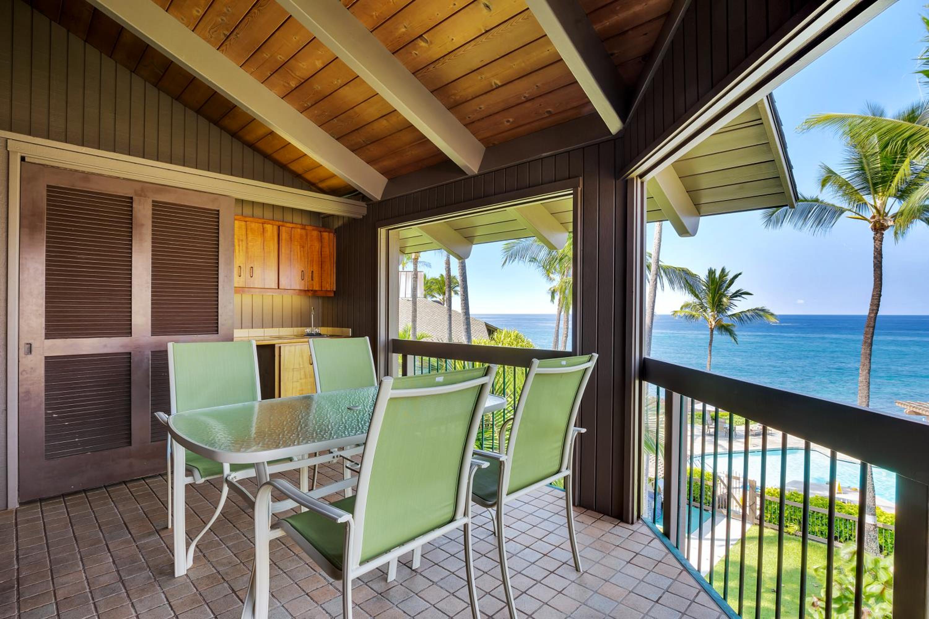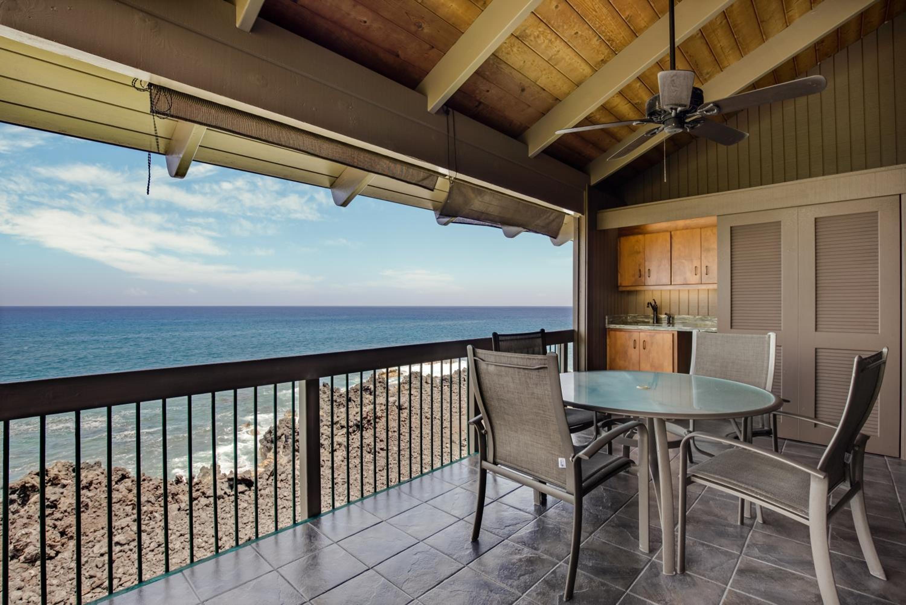 Lovely location south of Kailua; right on the ocean and very quiet (except for the birds). Pool and bbq facilities are very nice and convenient to all the units. Staff are quite pleasant and helpful. We had a small problem with the bill and they were quite amenable and efficient in resolving things for us, without argument. Our unit was well equipped for everything we needed, clean, roomy, and very comfortable, with ample, private patio space. Sunset views are great! Would give the property an 8.5 rating.