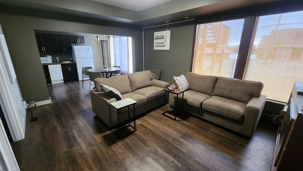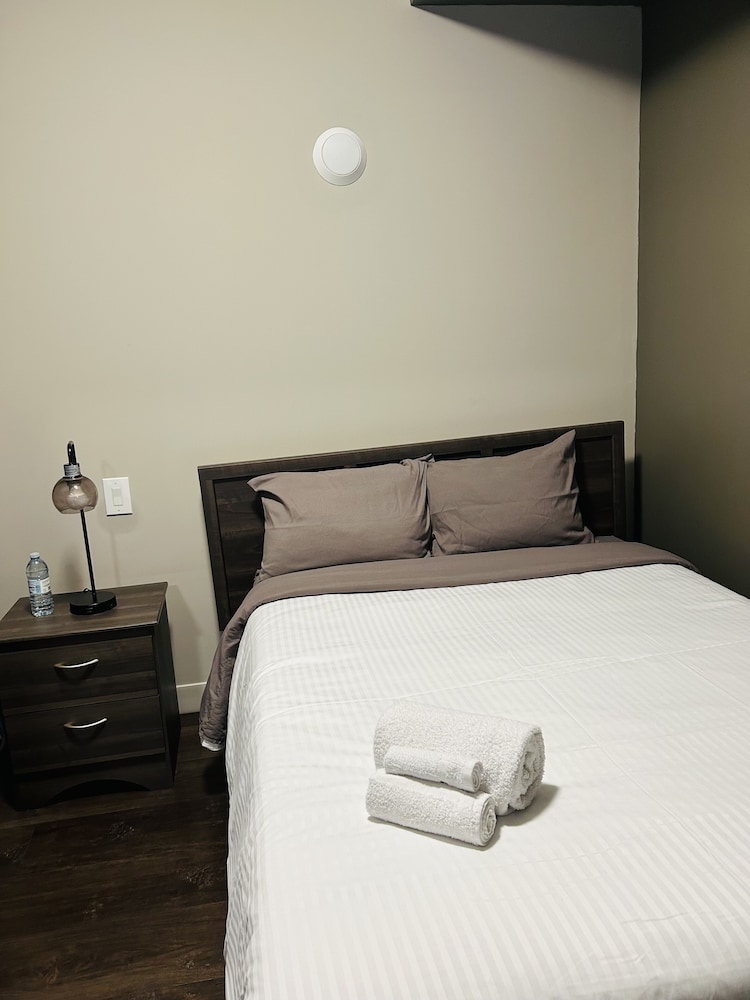 No staff on-site. We could only book thru app then we were provided a door access code to building and room. We only booked here because everything else in Kenora was full, which we didn’t expect on a Monday mid September. Was more like workers camp lodging. The actual room was ok,bathroom modern and air conditioner worked as it should (needed to drown out other guests partying).