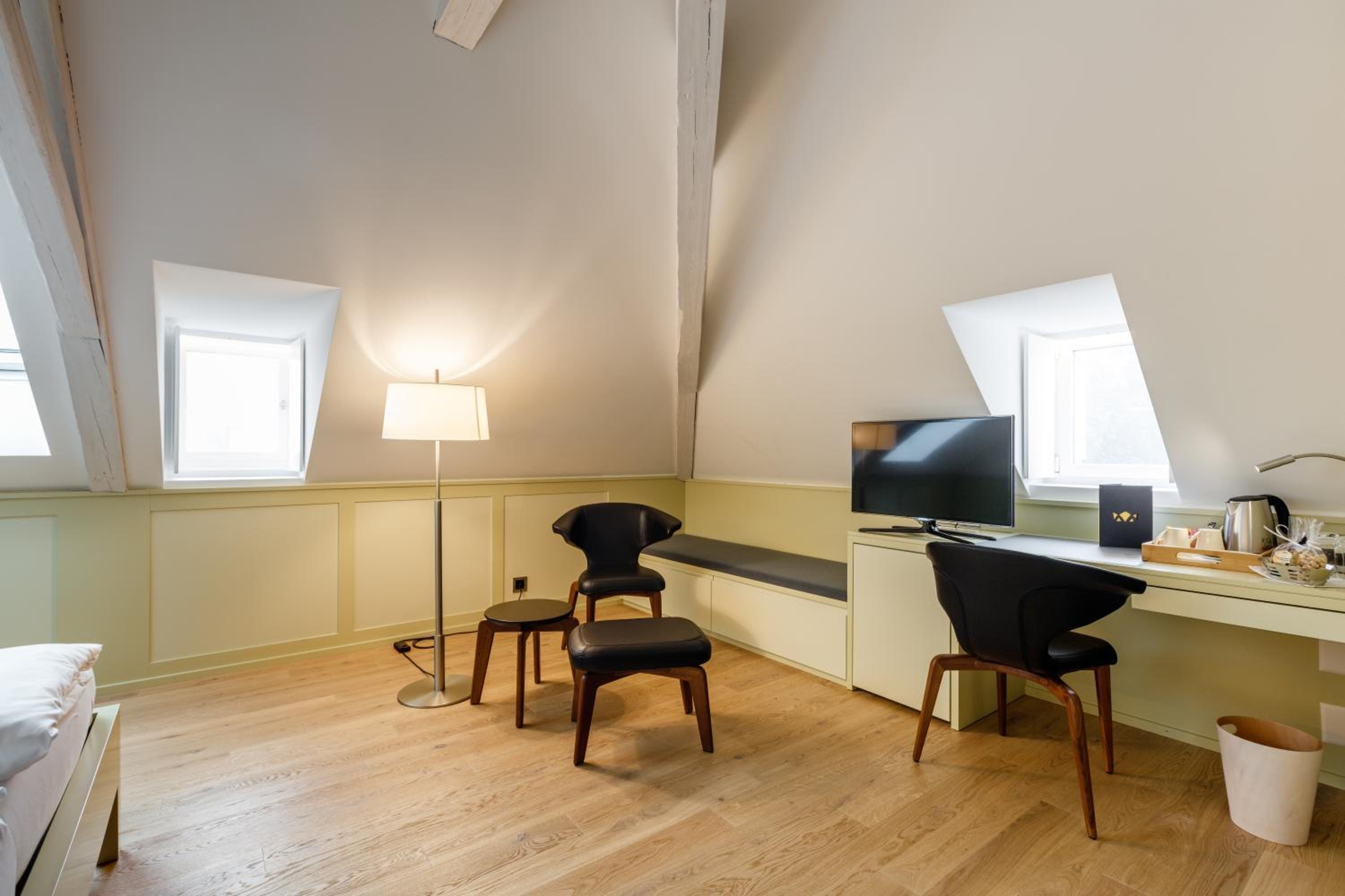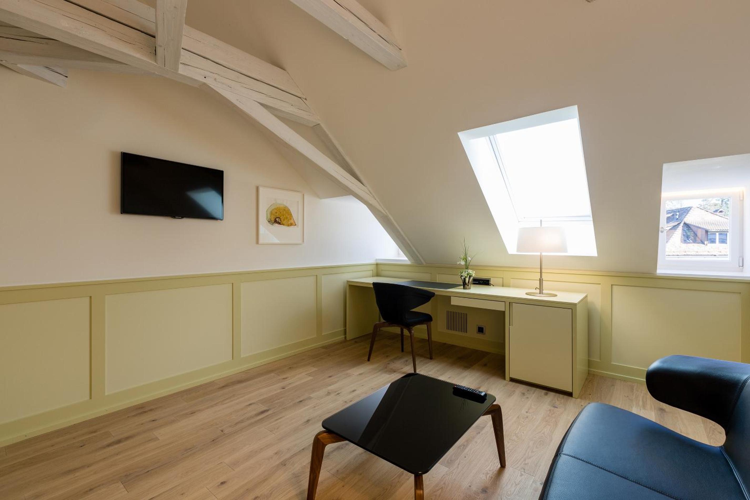 Experience modern and spacious rooms at Hotel Krone Speicher, each equipped with a seating area, flat-screen TV, free WiFi, and a safety deposit box. The en-suite bathrooms come with complimentary toiletries and slippers for your comfort.