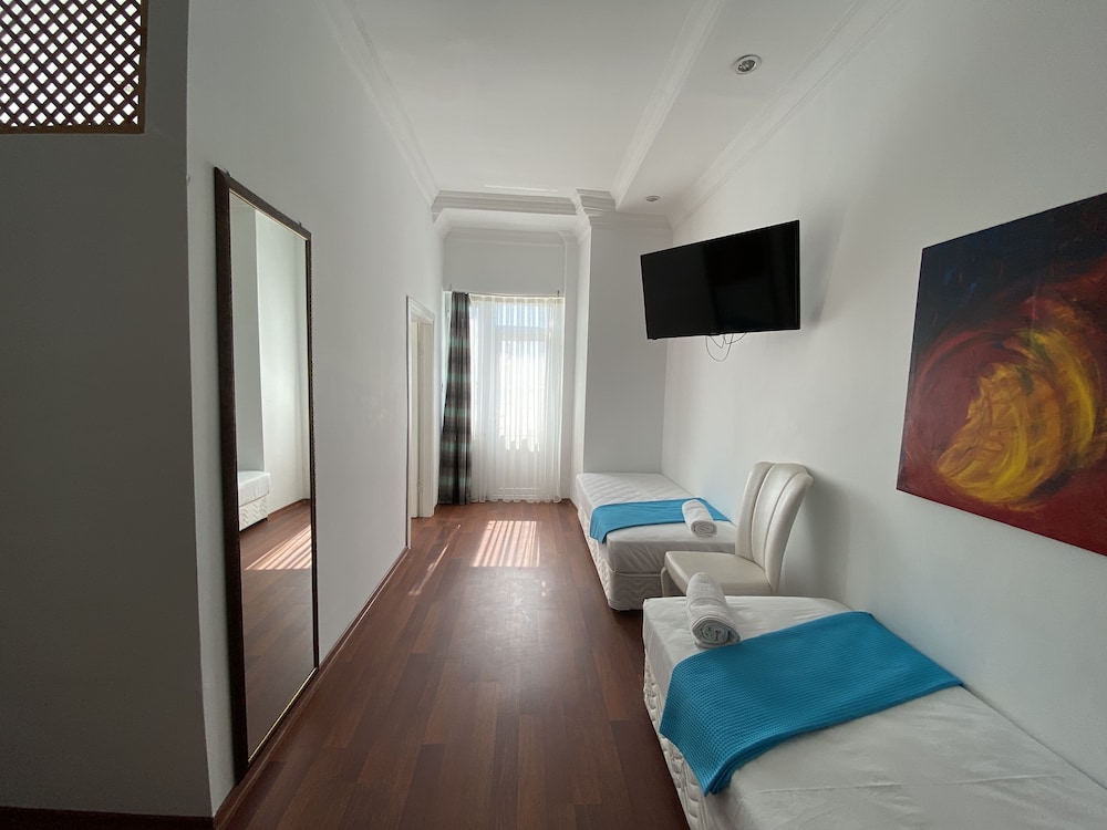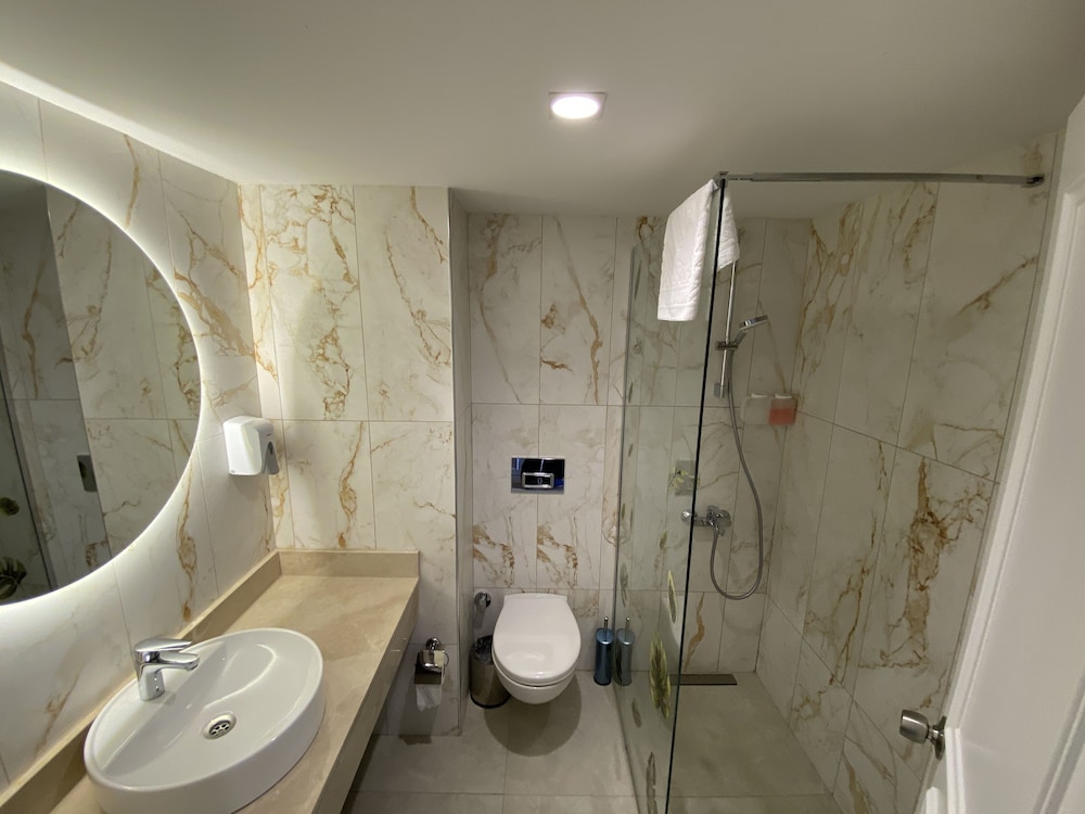 Odada lekeli carsaflar ve yatak telleri batiyordu resmen hic rahat bir yatak degildi tuvaletteki muslugun alti cok kotu gozukuyordu curumustu nem kokuyordu banyosu tasiyordu ve dusa kabinin icerisinde cis lekesi bardi dusa girdimizde iceride kaldik tuvalet kapisi yerinden cikti kendimiz geri takip zor acabildik otelde guzel olan tek sey manzarasi ve restorantı idi sabah kahvaltisi da guzeldi.