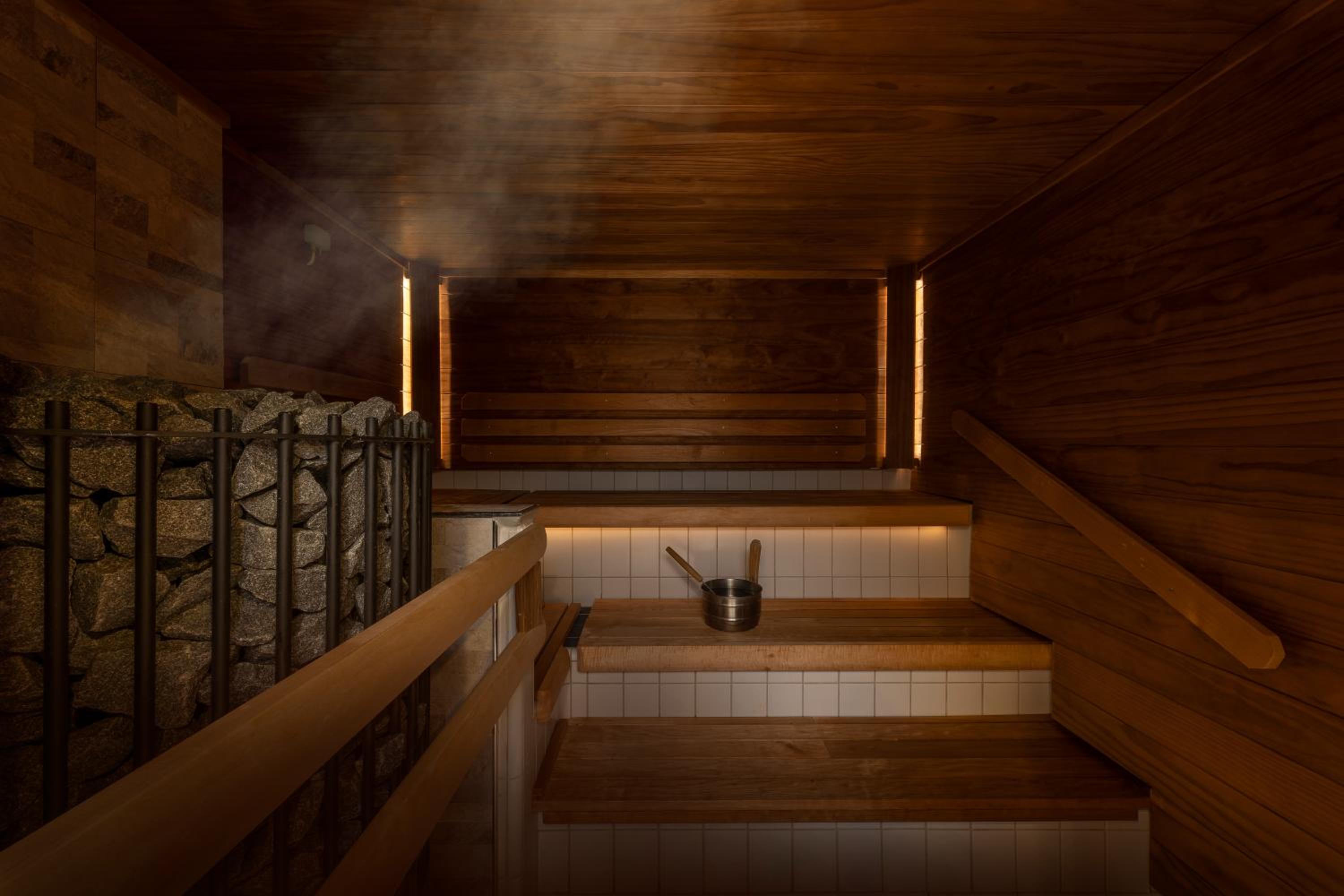 Kiva kun oli väljää olla, vain muutama henkilö saunassa sekä uimassa.