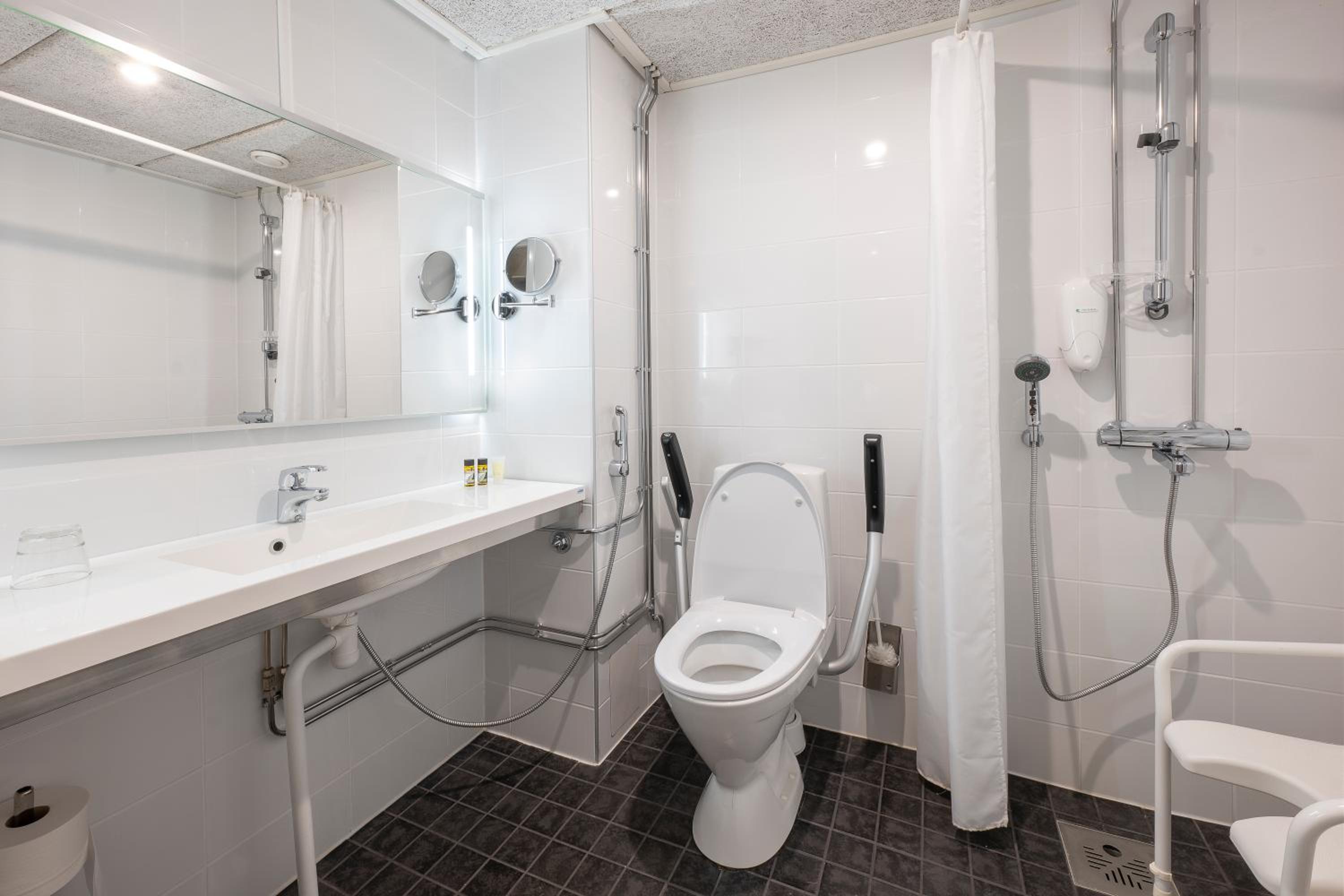 Huone oli siisti, viemäri haisi huoneen vessassa jonkun verran, kun mentiin, mutta veden laskulla saatiin haju pois.