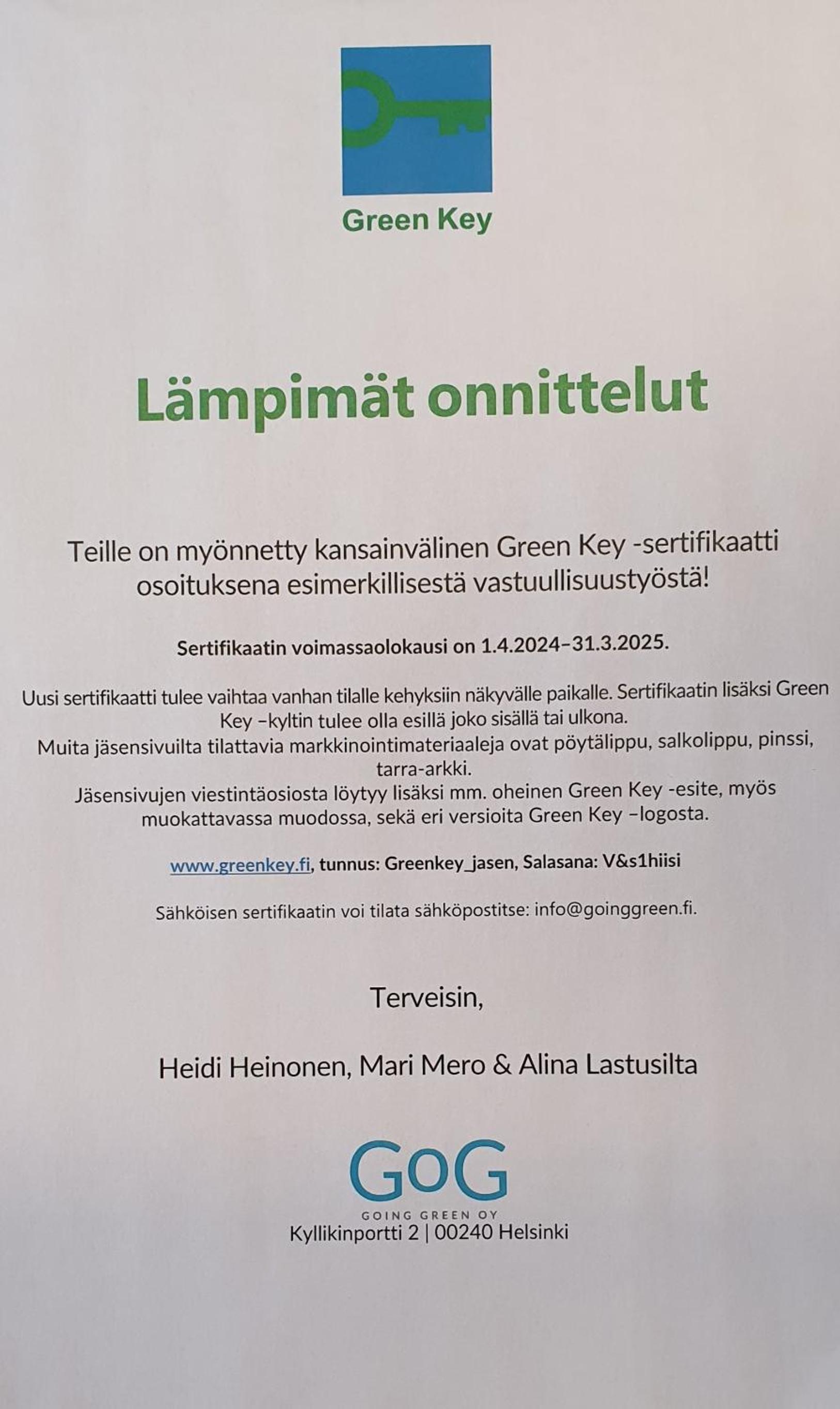 Ystävällinen henkilökunta. Aamupala hyvä, samoin ruoka muutenkin. Kylpylän saunassa hyvät leppoisat löylyt, savusau