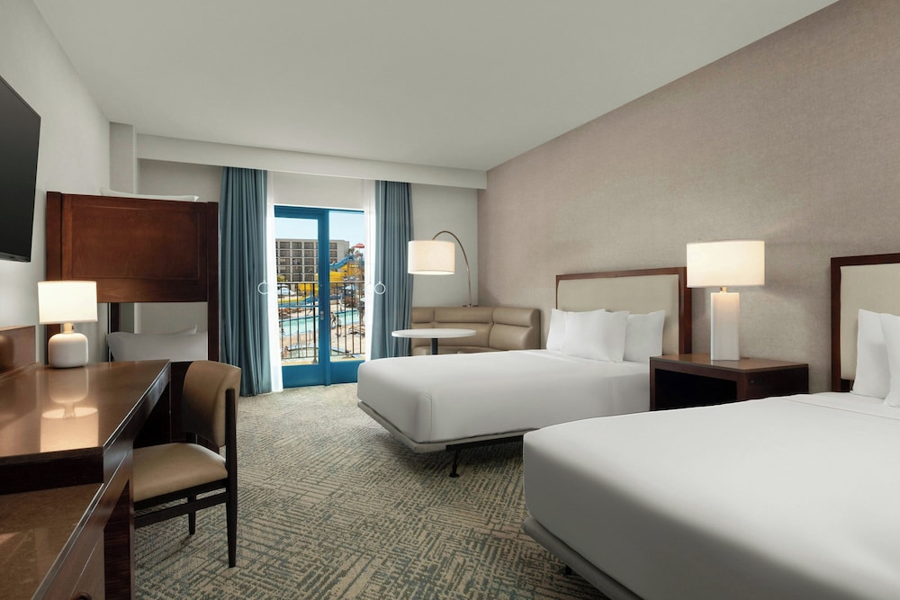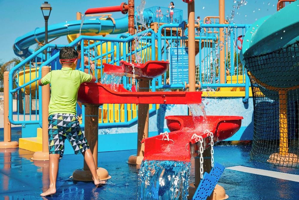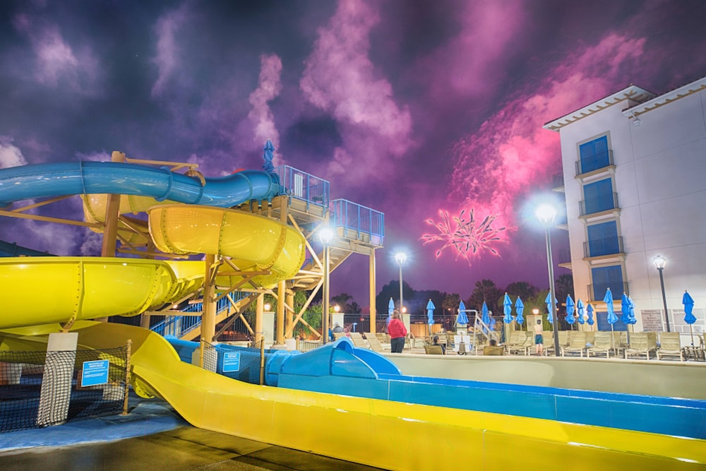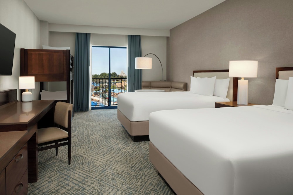 Fun hotel, excellent service and water park great for kids. Room had large patio and we could see the fireworks from it. Comfy beds, spacious room.