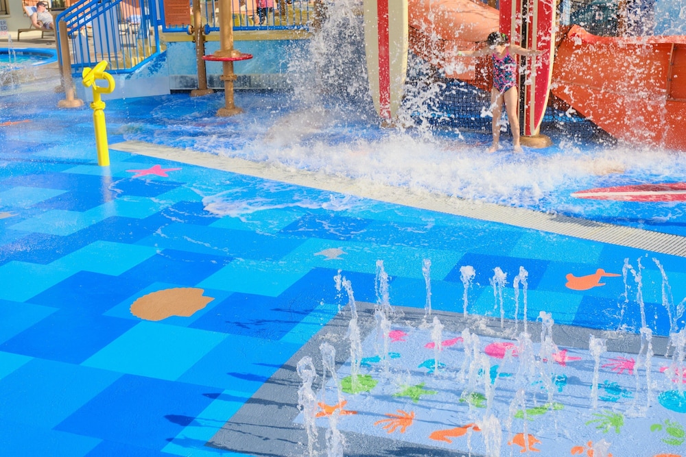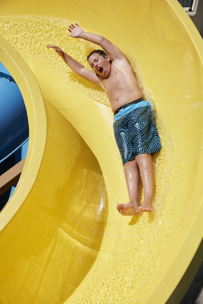 Dive into excitement at our complimentary water park or unwind in the outdoor pool and hot tub. Savor delicious meals at The Bistro restaurant, serving cooked-to-order breakfasts and snacks to fuel your adventures.