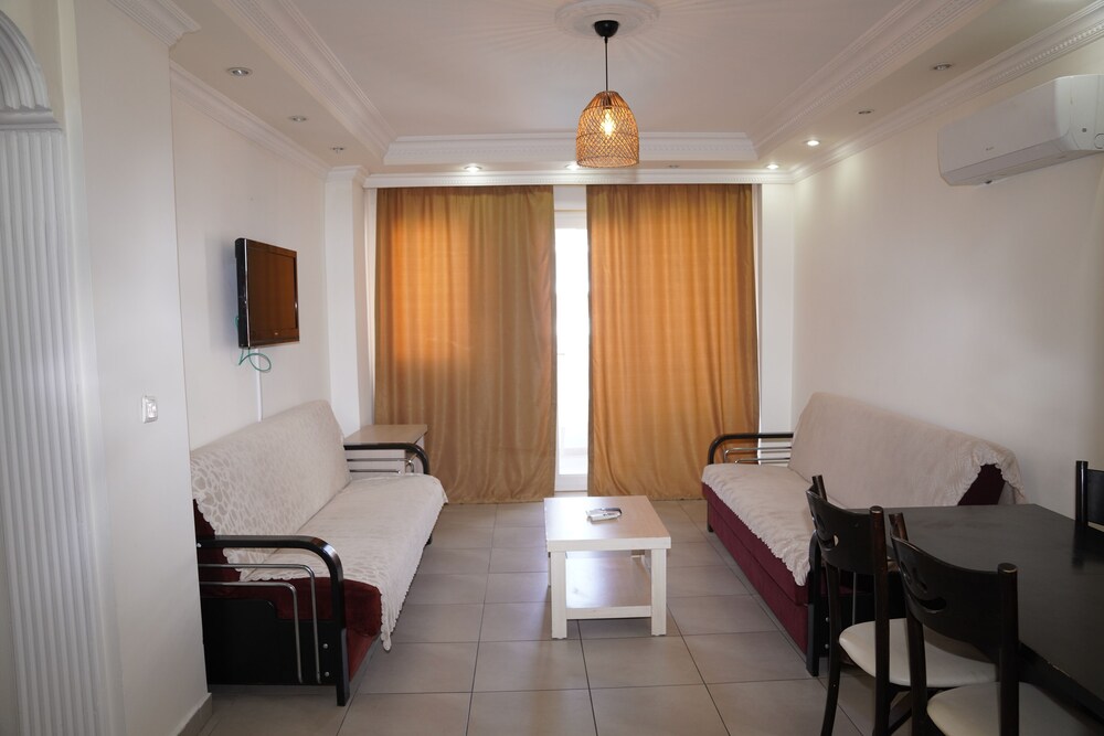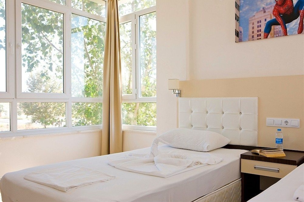 İki arkadaş konakladık, sanırım en izbe odayı bize vermişlerdi. Apart otel diye yemek vb ihtiyacımızı odada görürüz demiştik ancak mutfak kirliydi, bulaşık deterjanı, süngeri dahil hiçbir malzeme de yoktu. 3 gece konaklamamızda bir kez oda servisi uğradı, yalnızca yerleri silip gitmiş. Havlu yenileme yoktu. Eşyalar biraz eski, küçük bir tv vardı. Açıklamada yazmamış ancak otel yolun iki tarafında iki blok halinde, iki küçük havuzu vardı ve görece temizdi.