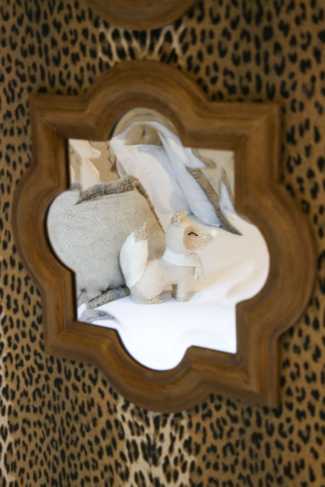 The decoration/wall paper in the room makes beautiful pictures.