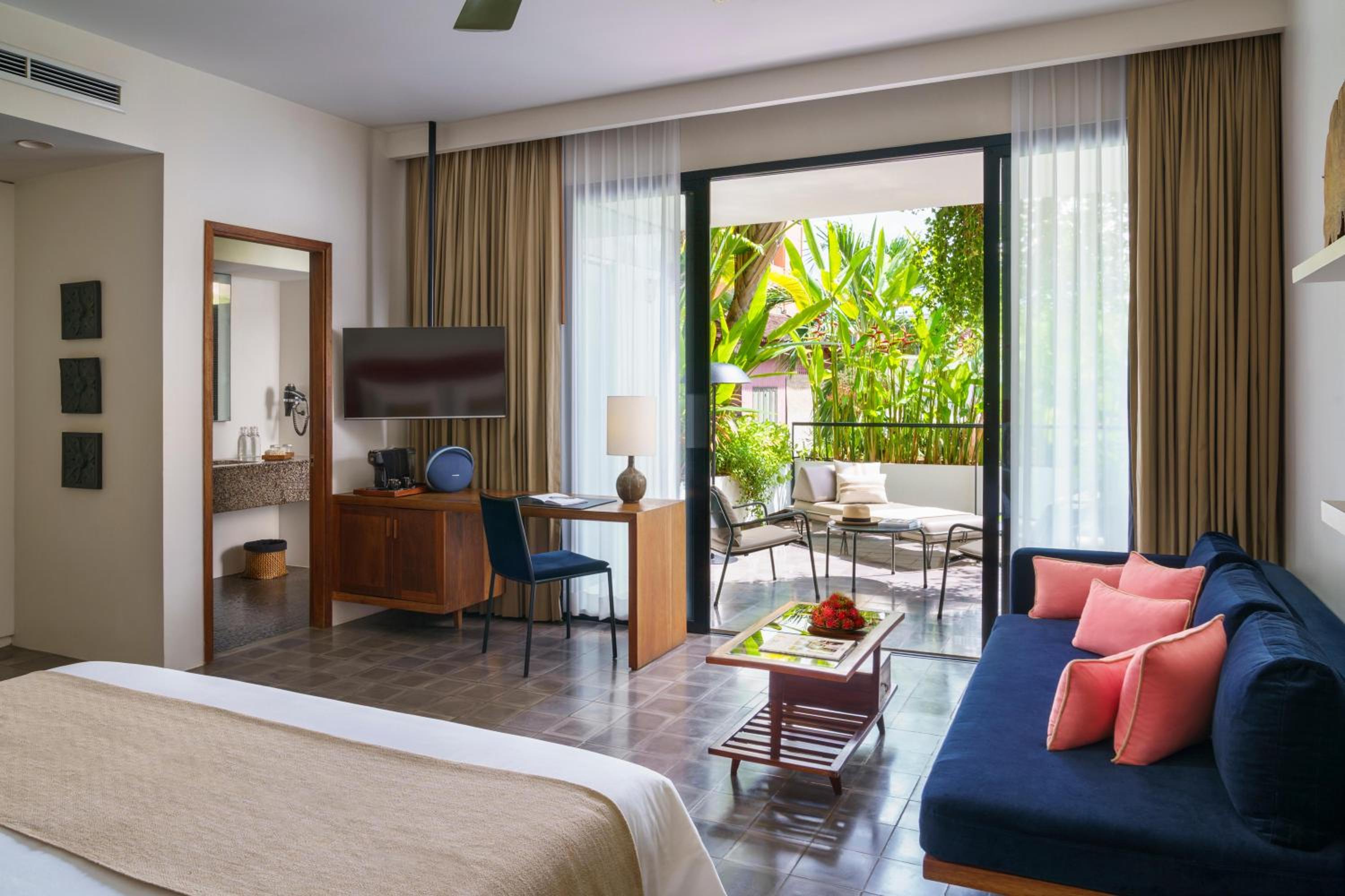 Stylish Interiors: Experience the perfect blend of 50's contemporary design and Cambodian culture in our air-conditioned rooms, each equipped with modern amenities and elegant terrazzo bathrooms.