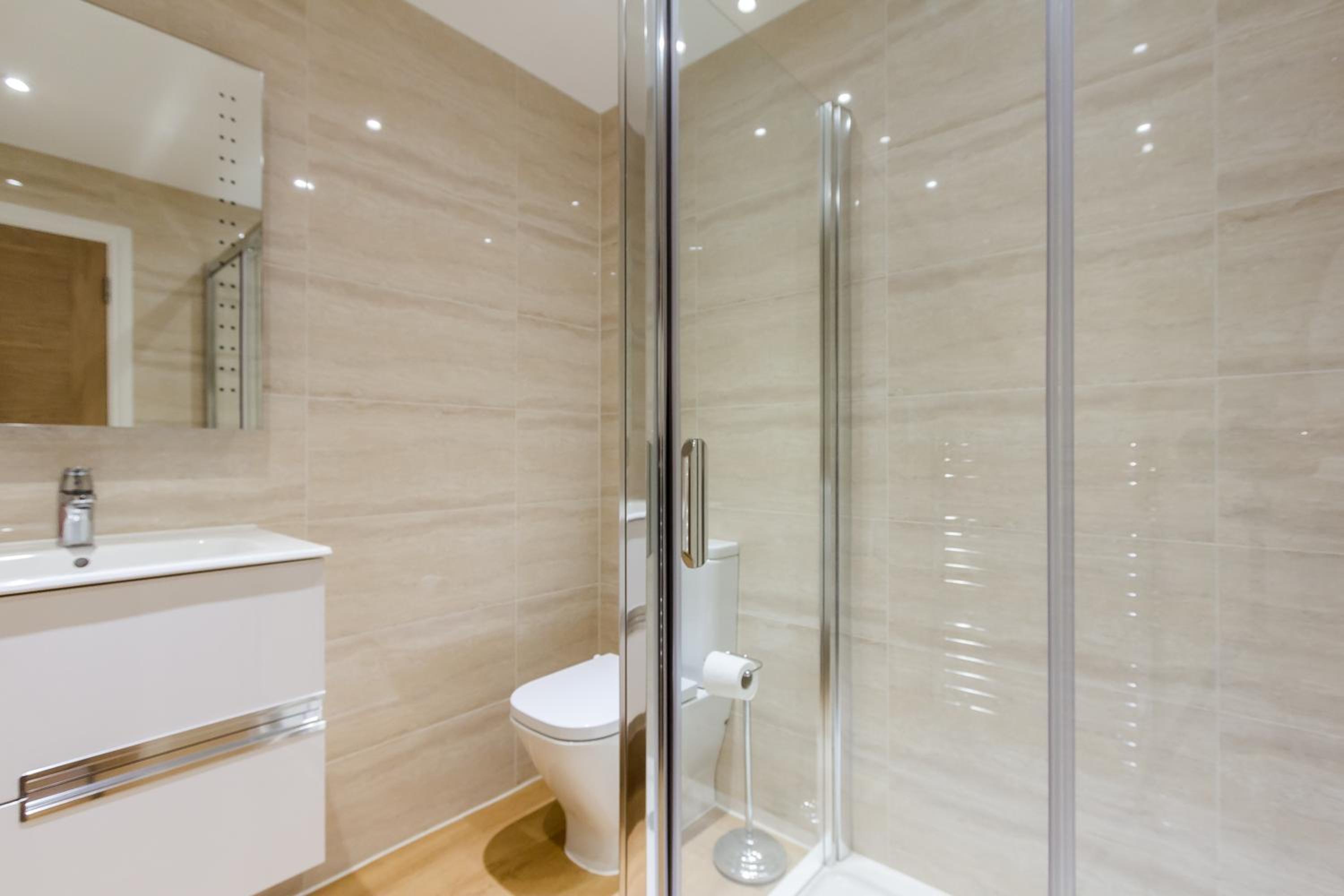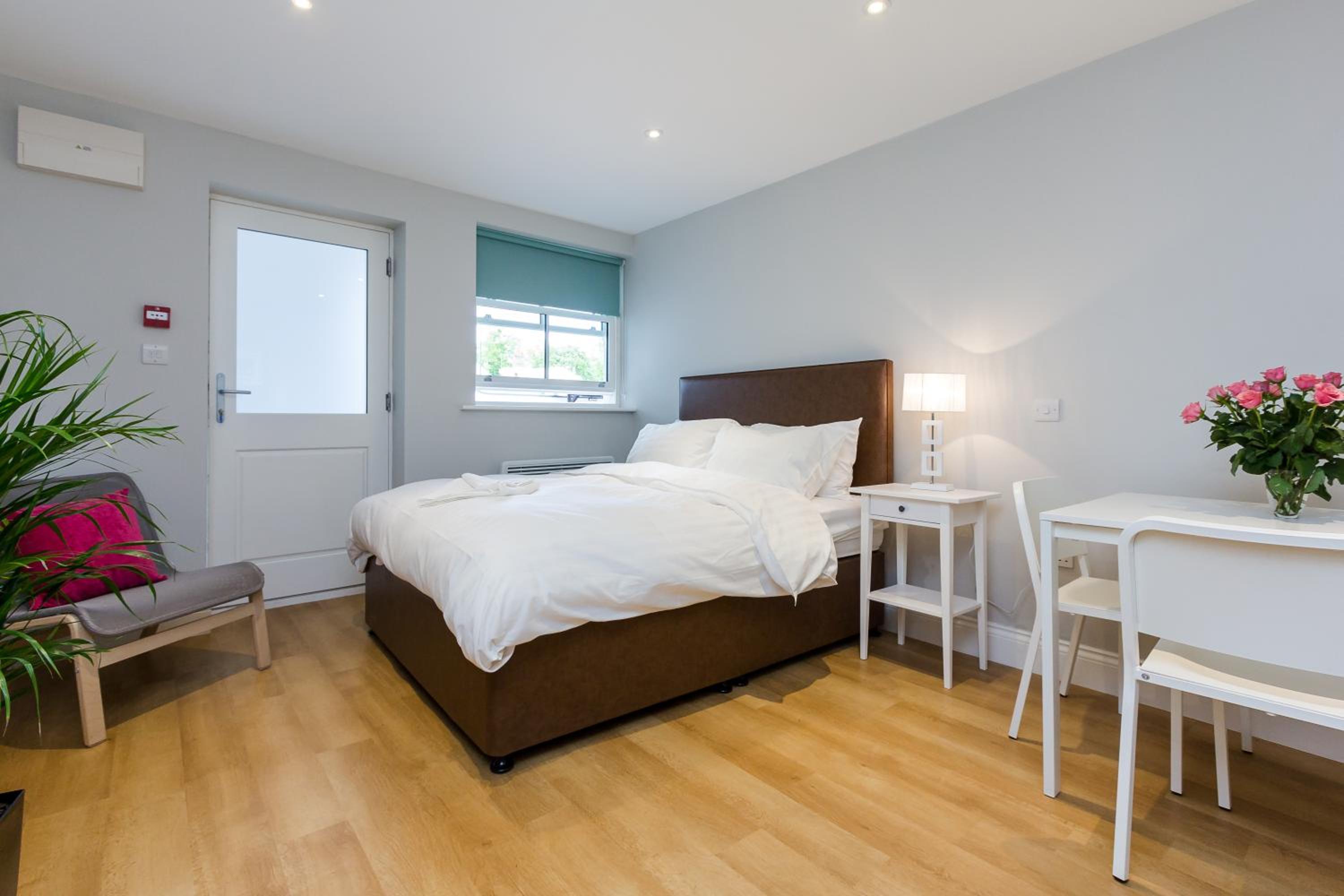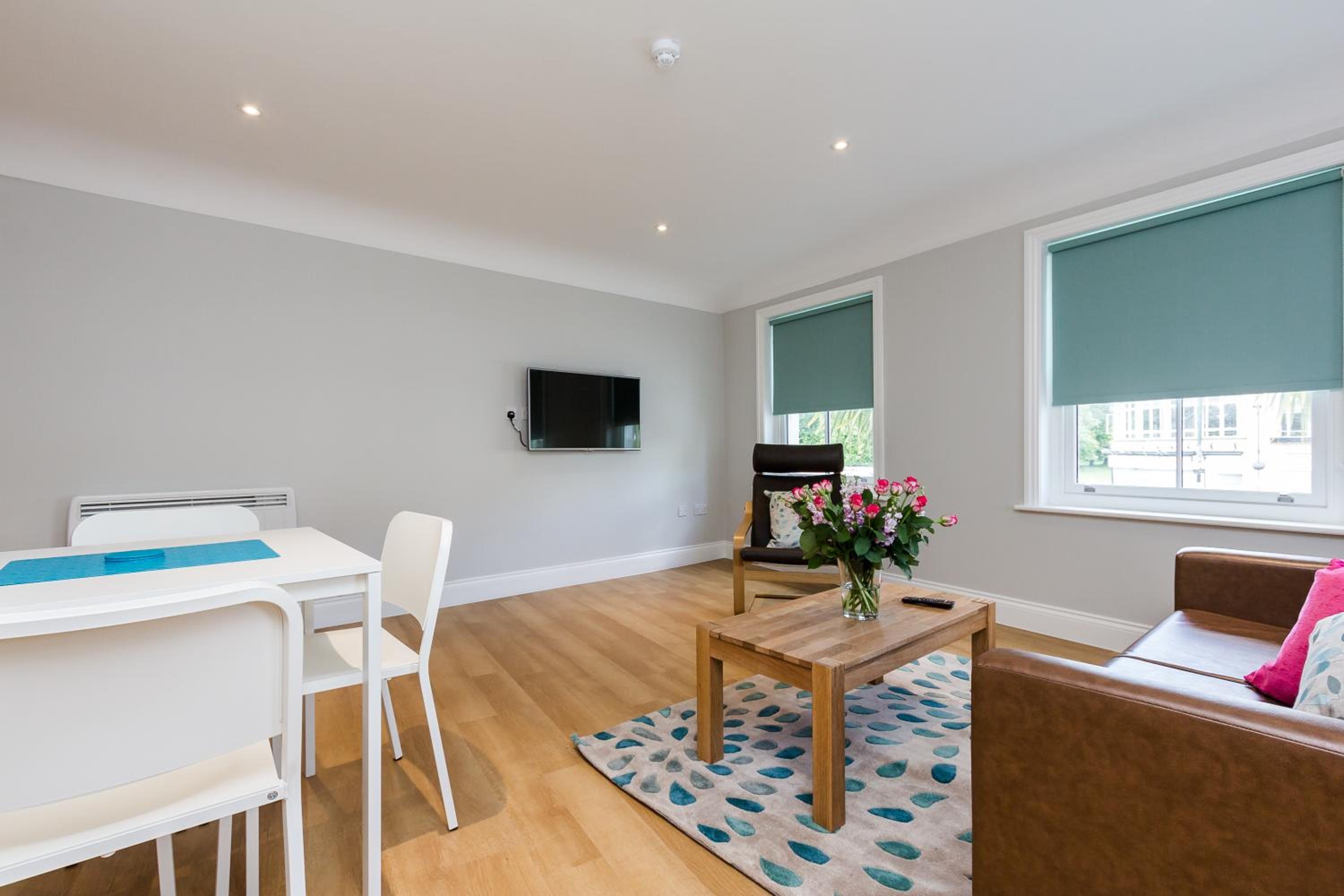 Indulge in soundproofed apartments featuring a cozy lounge with a flat-screen TV, dining area, and options for en suite or family bathrooms. Enjoy the shared garden and cooking facilities, including a refrigerator and hob for a homely touch.