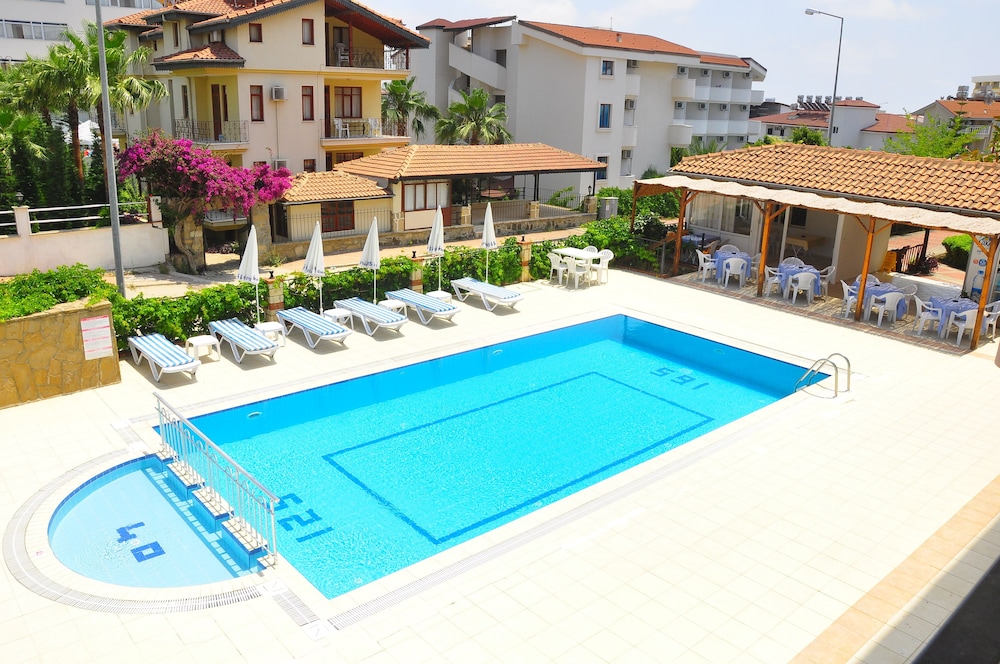 Staff very helpful, apartment adequate, pool area very good. No one spoke English which made life a little difficult, but they were very patient and used language apps helpfully. The only negative is the location. It is surrounded by all inclusive resorts which meant a lot of noise at various points in the day, and a lack of decent bars and restaurants in the immediate vicinity. However, the noise never lasted long, and it was only 3 lire for the dolmas into Side. WiFi only worked in certain areas, not in the room, but that was not an issue. And the balcony was well equipped and of good size. We would definitely return, as it was such good value.
