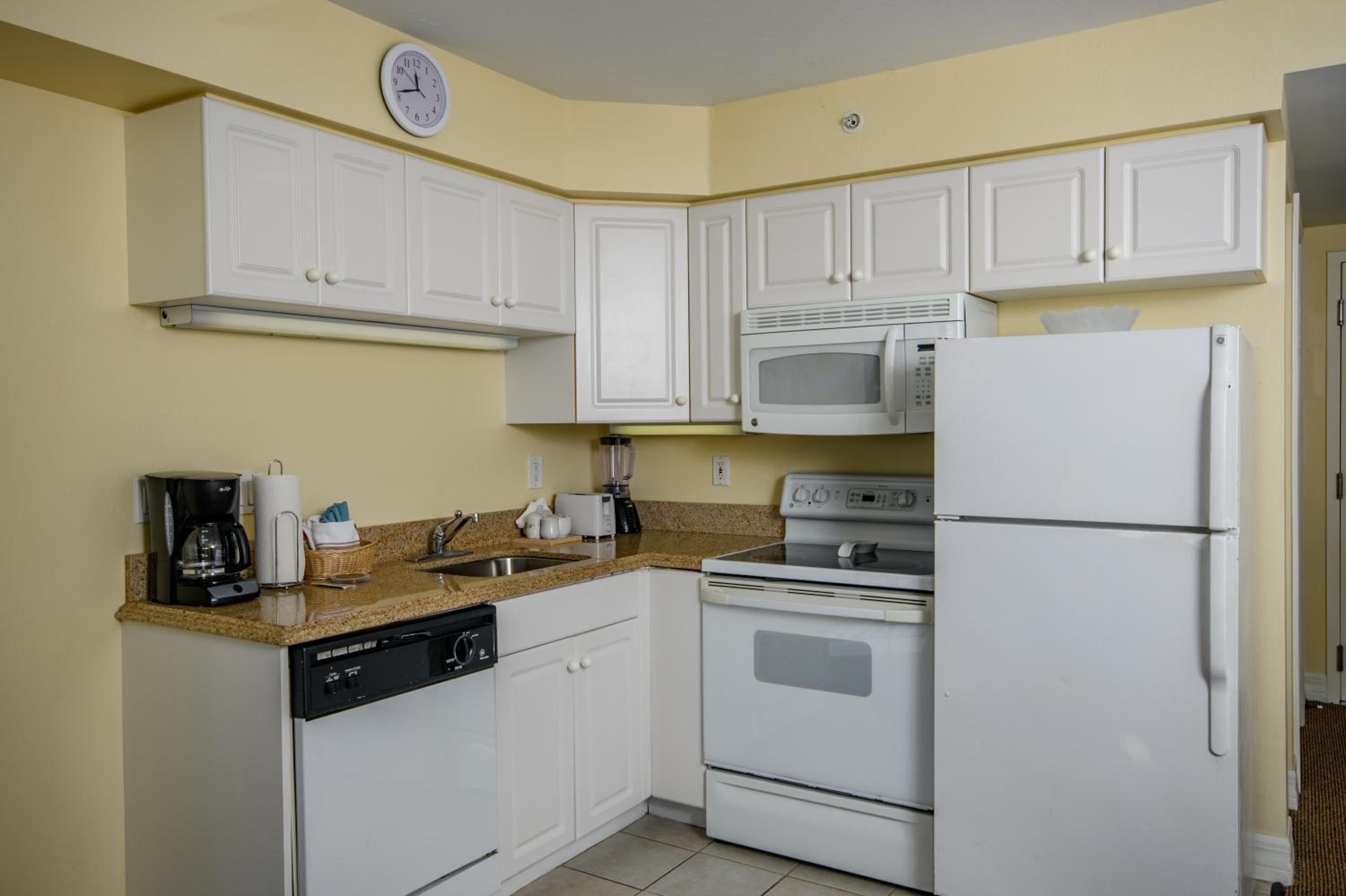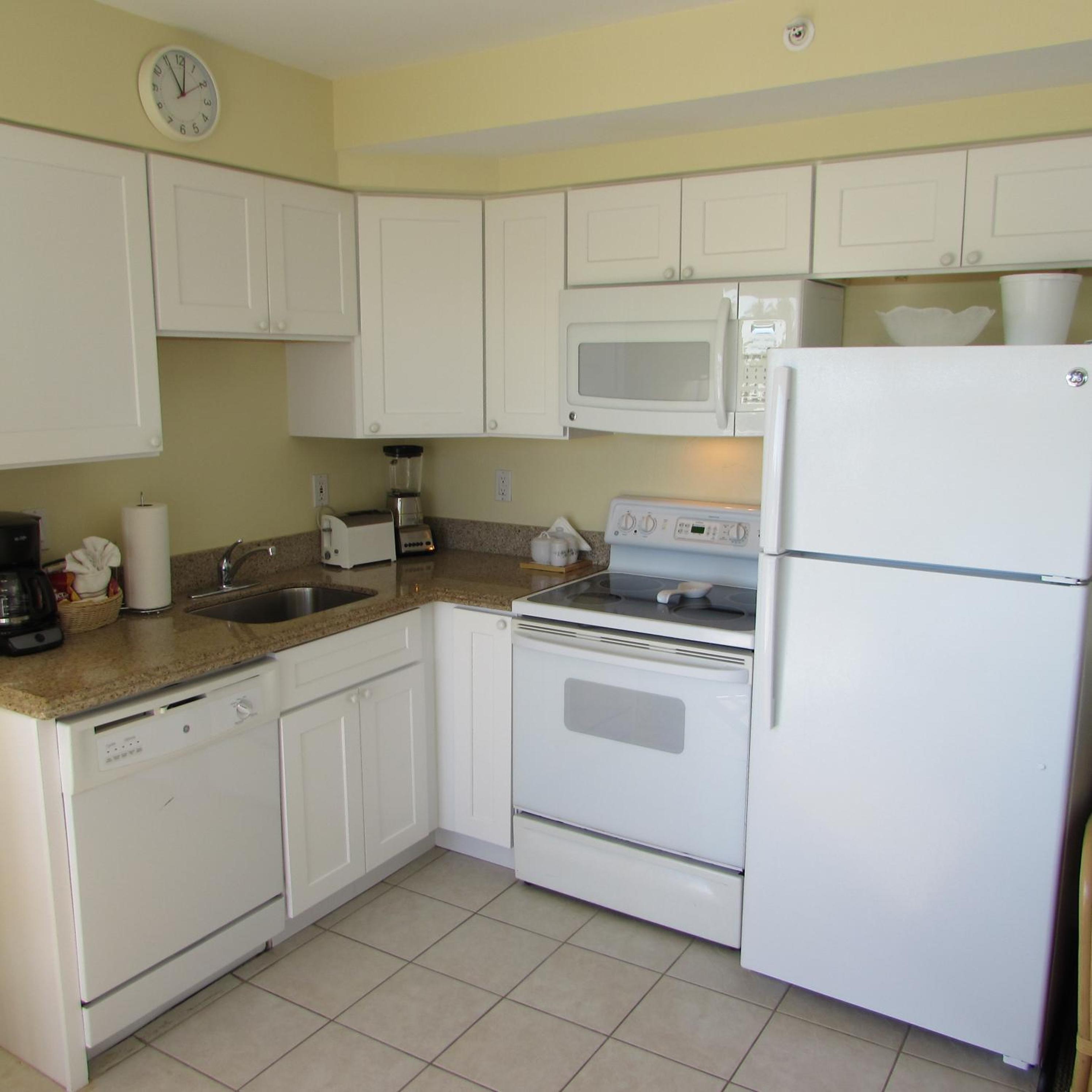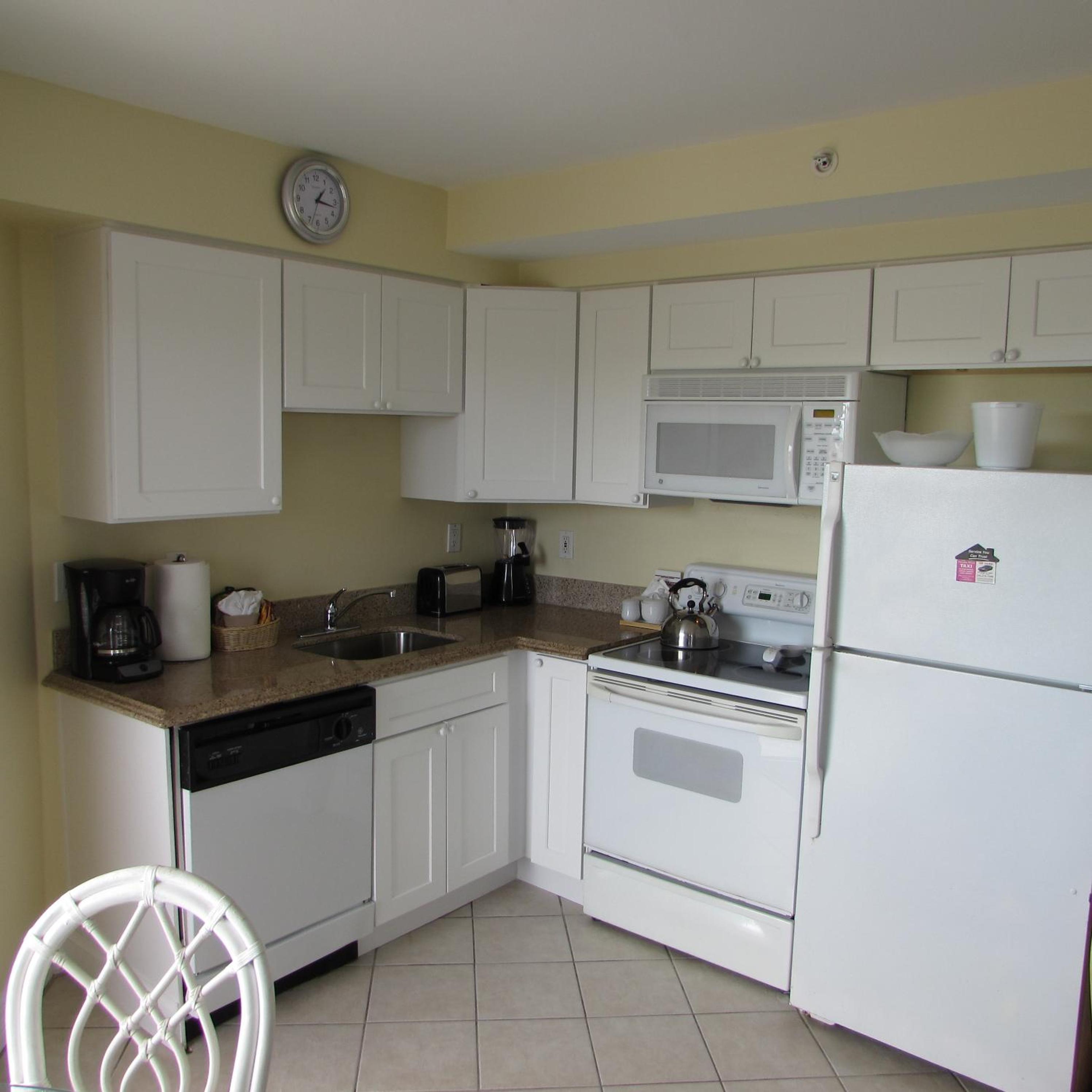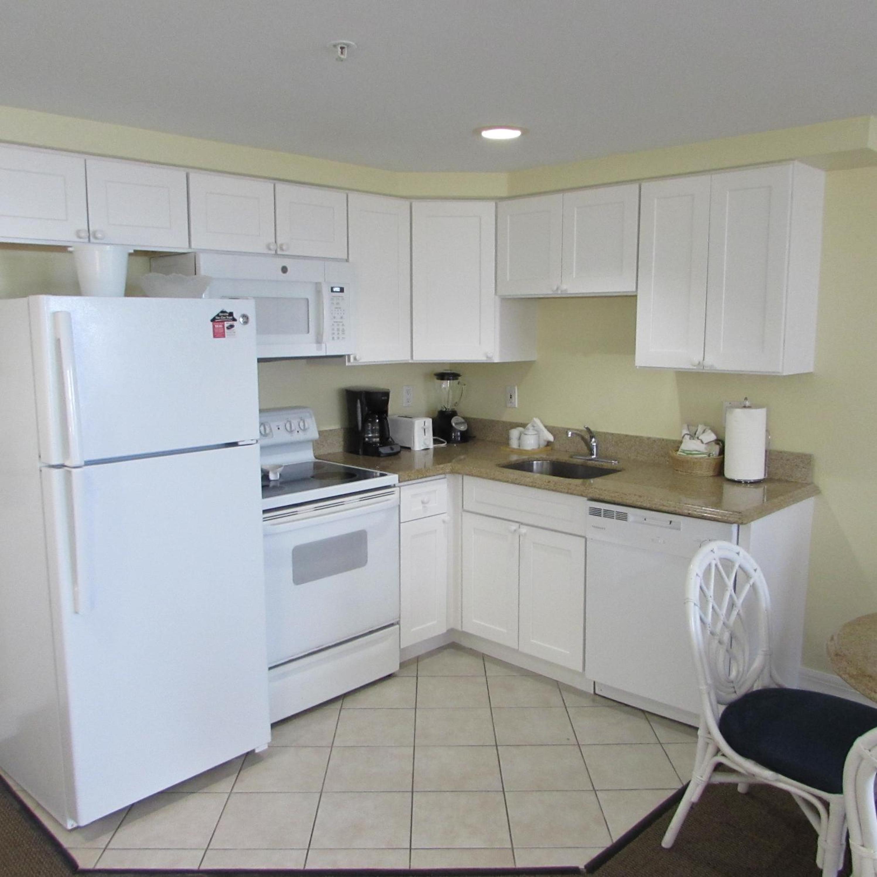 In-suite kitchenettes with full-size refrigerators, microwaves, stoves and dishwashers are available in every room.