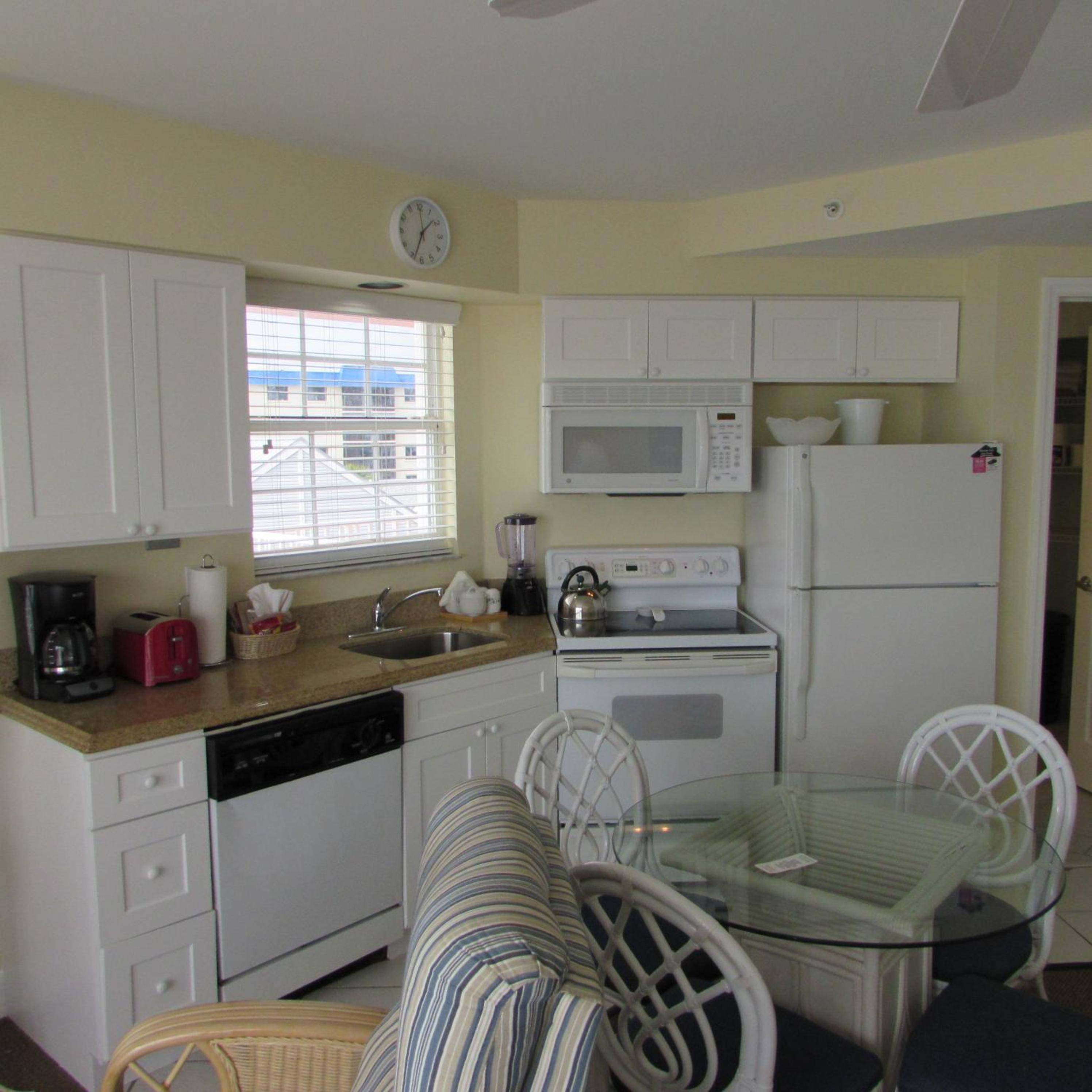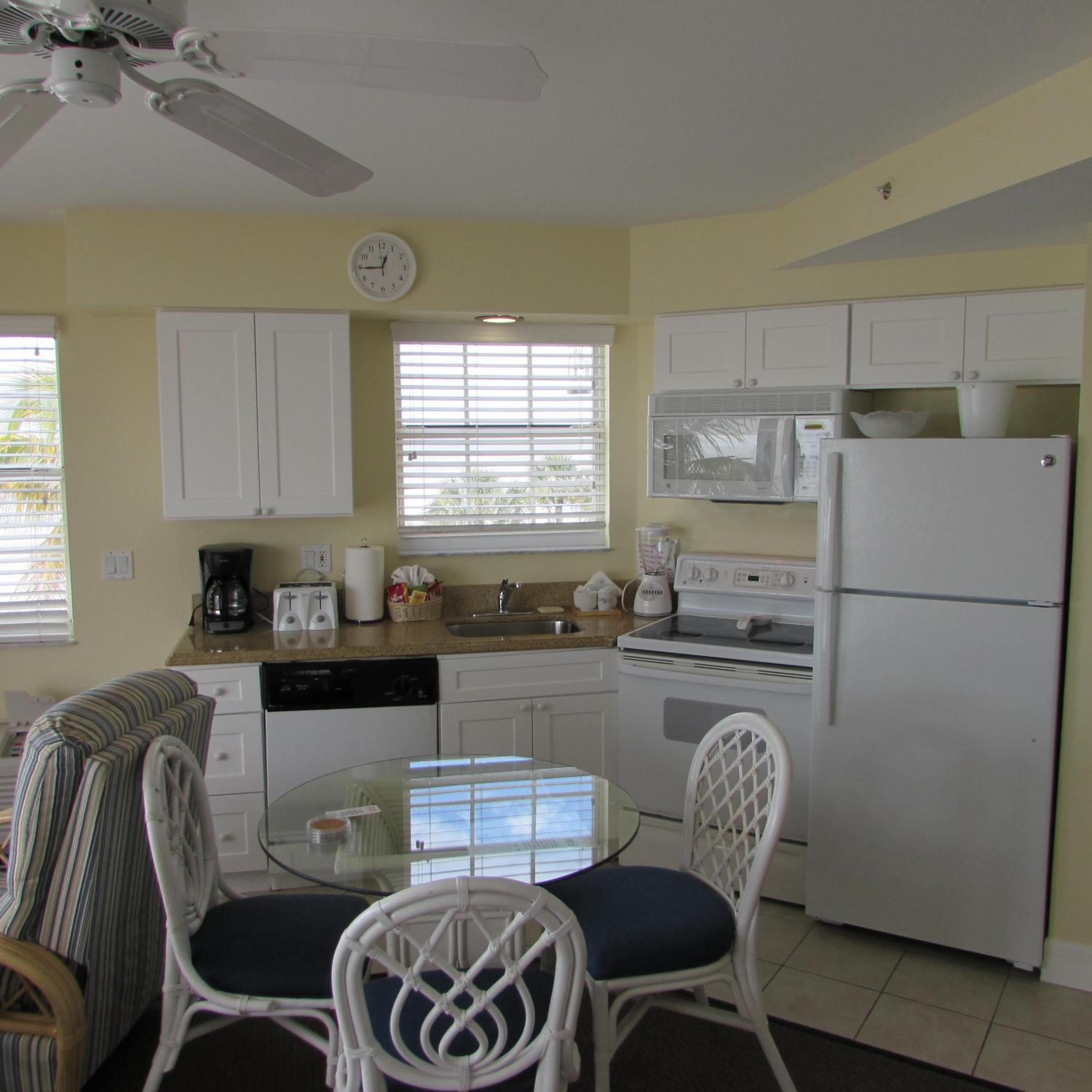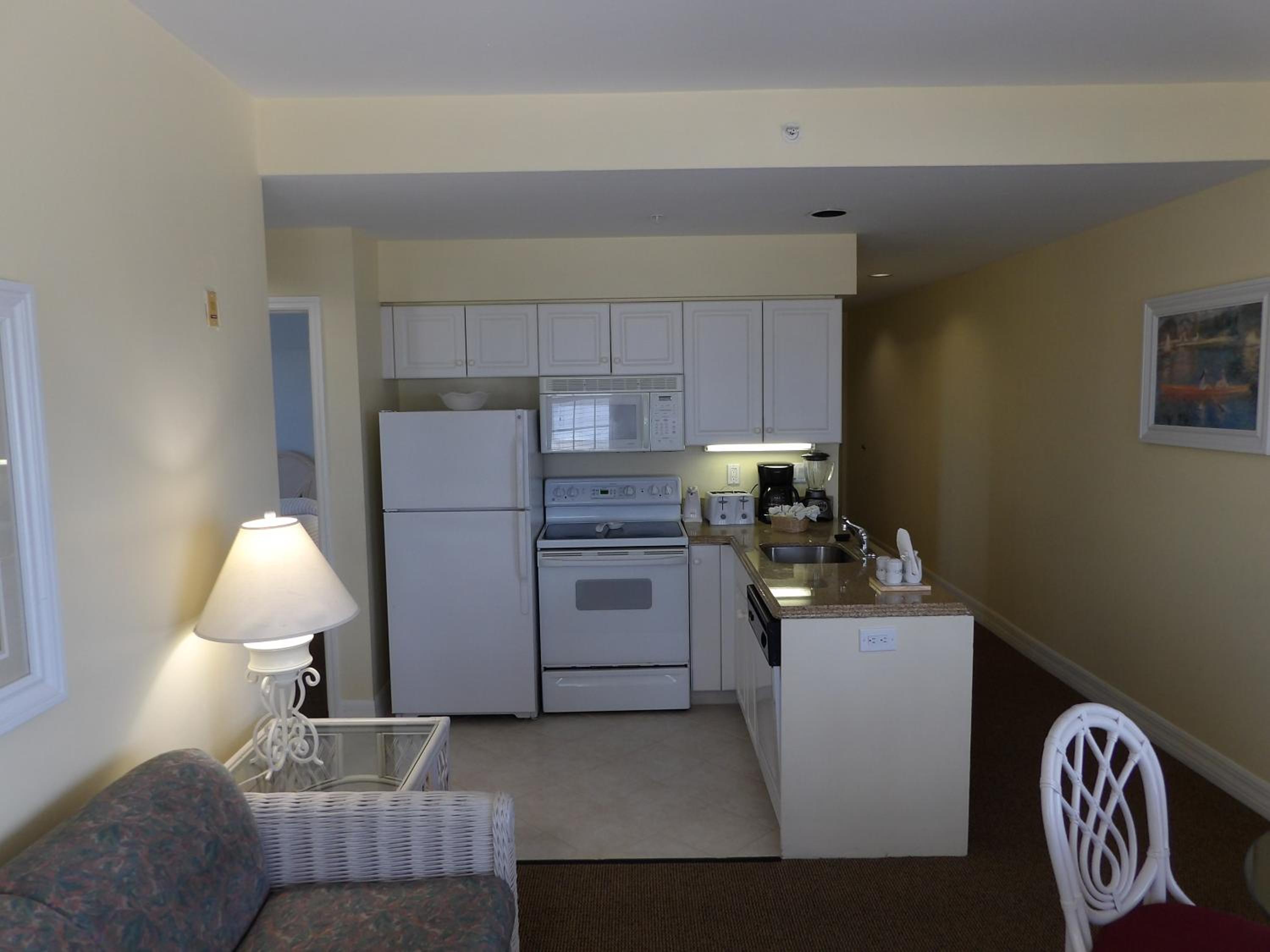 In-suite kitchenettes with full-size refrigerators, microwaves, stoves and dishwashers are available in every room.