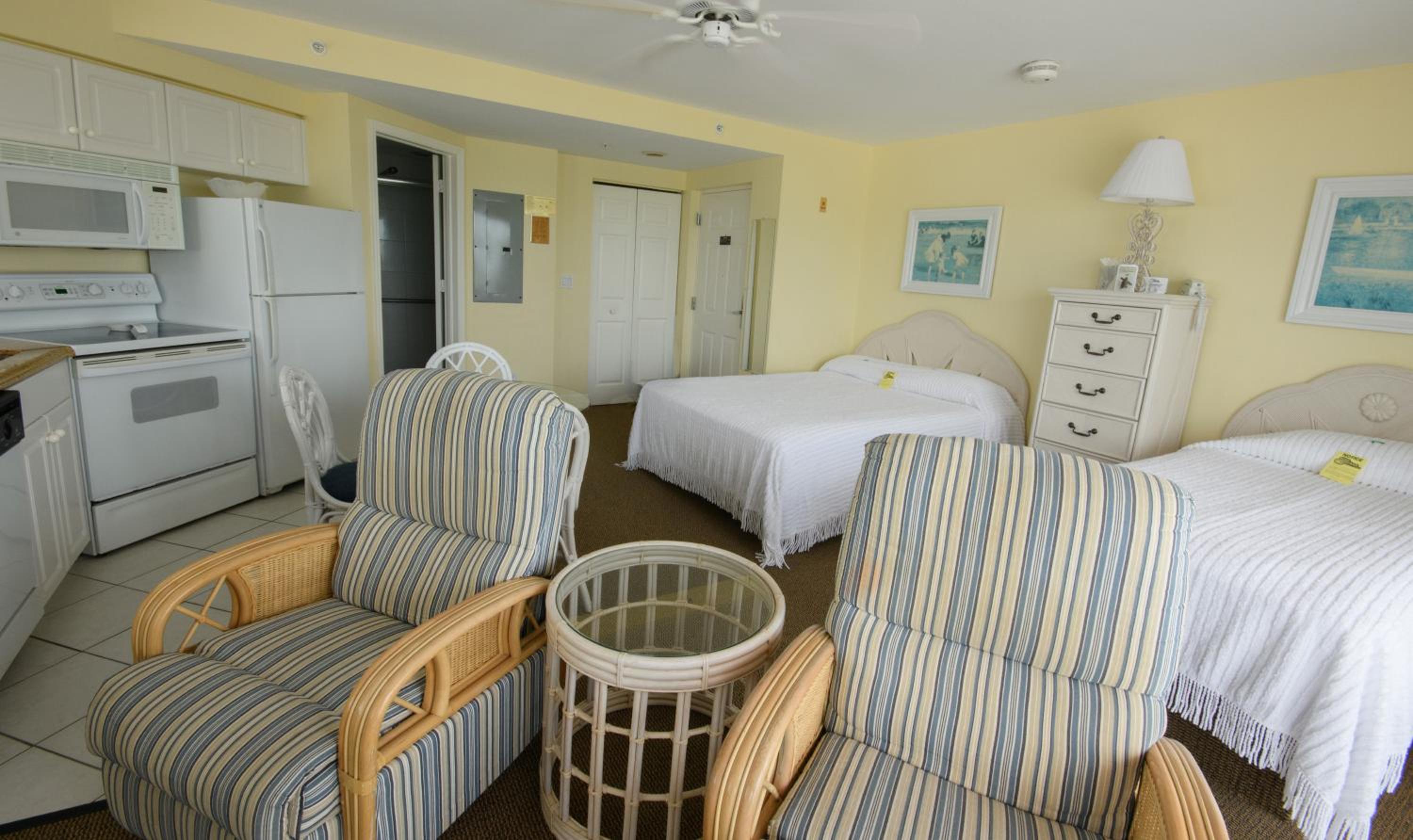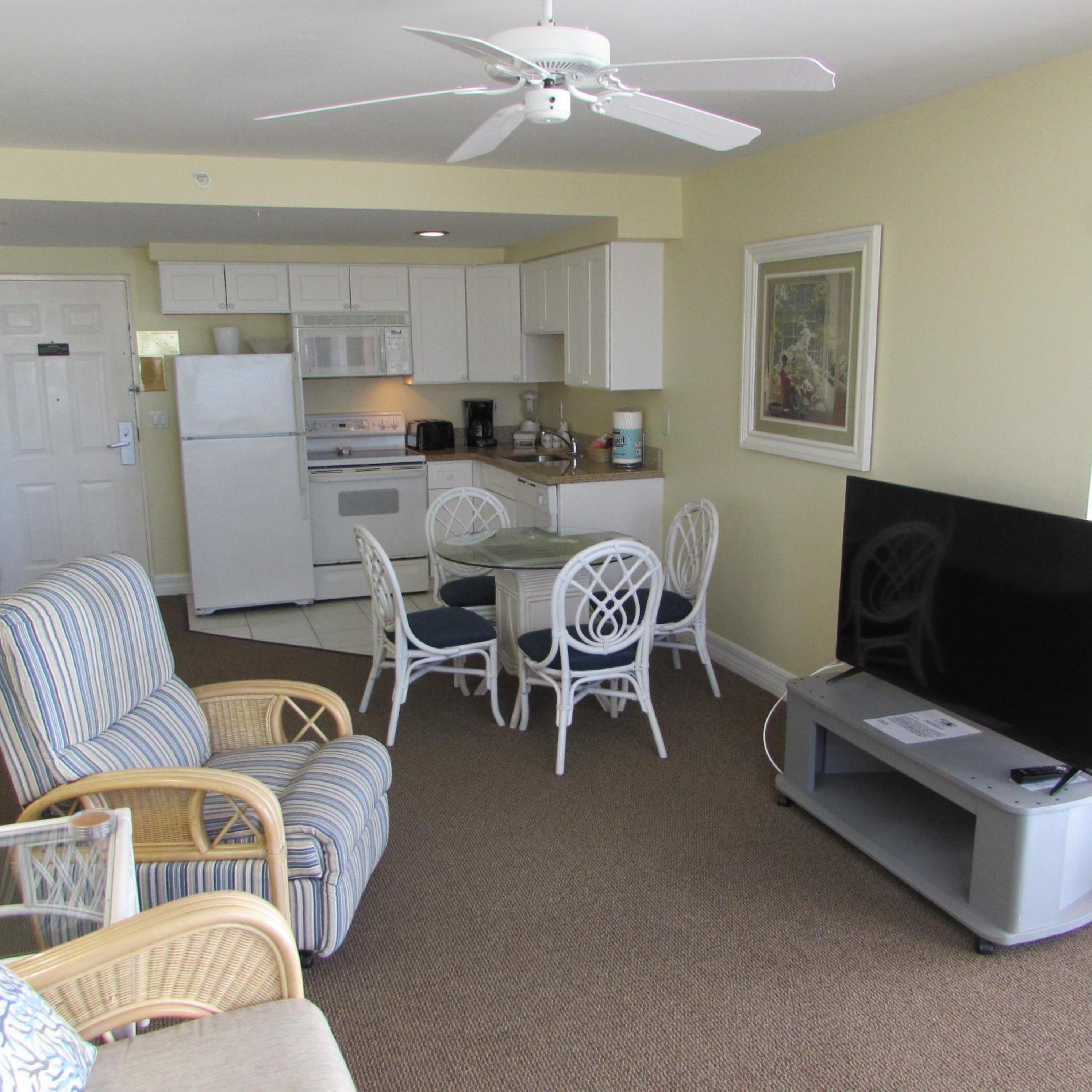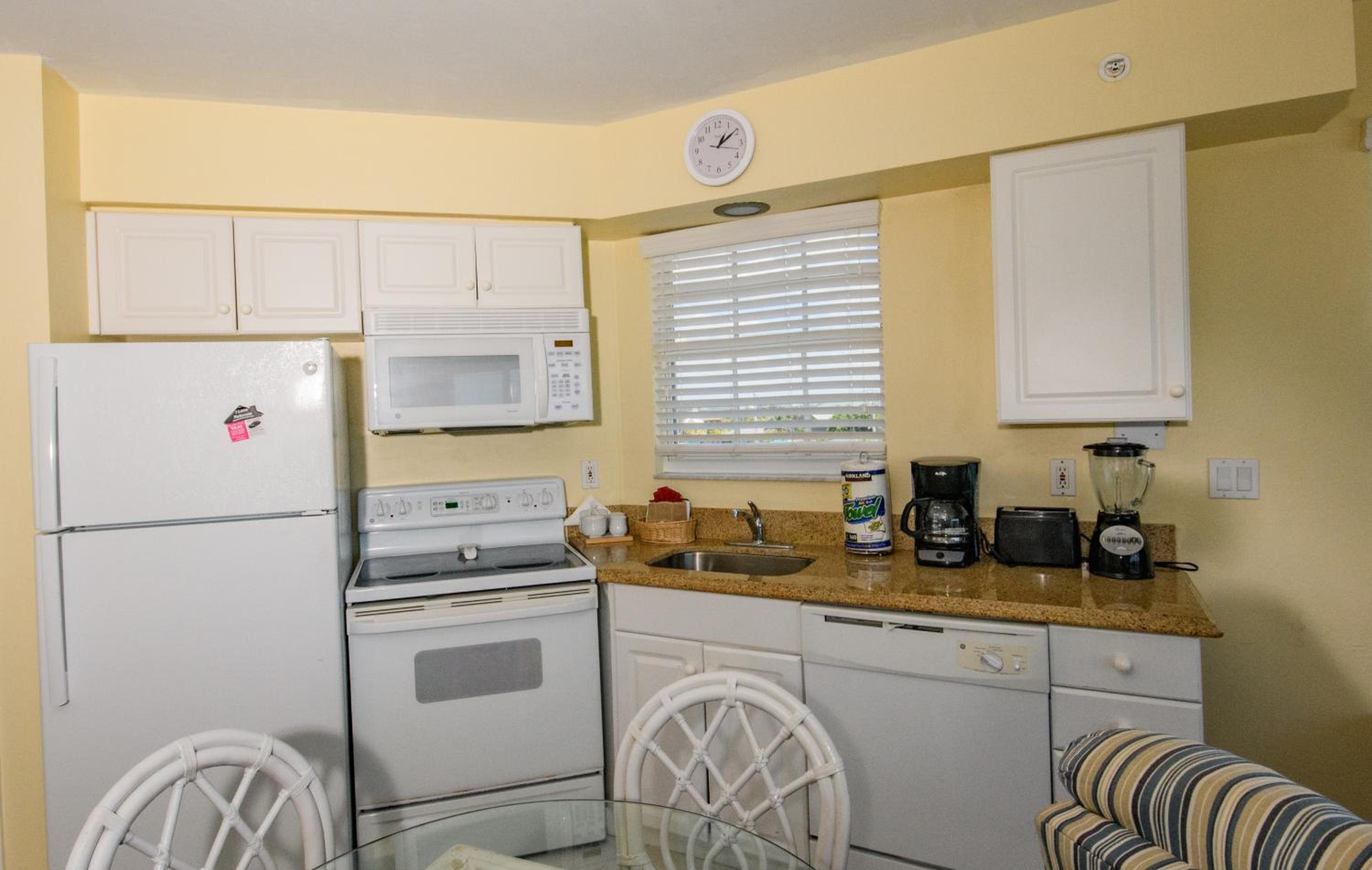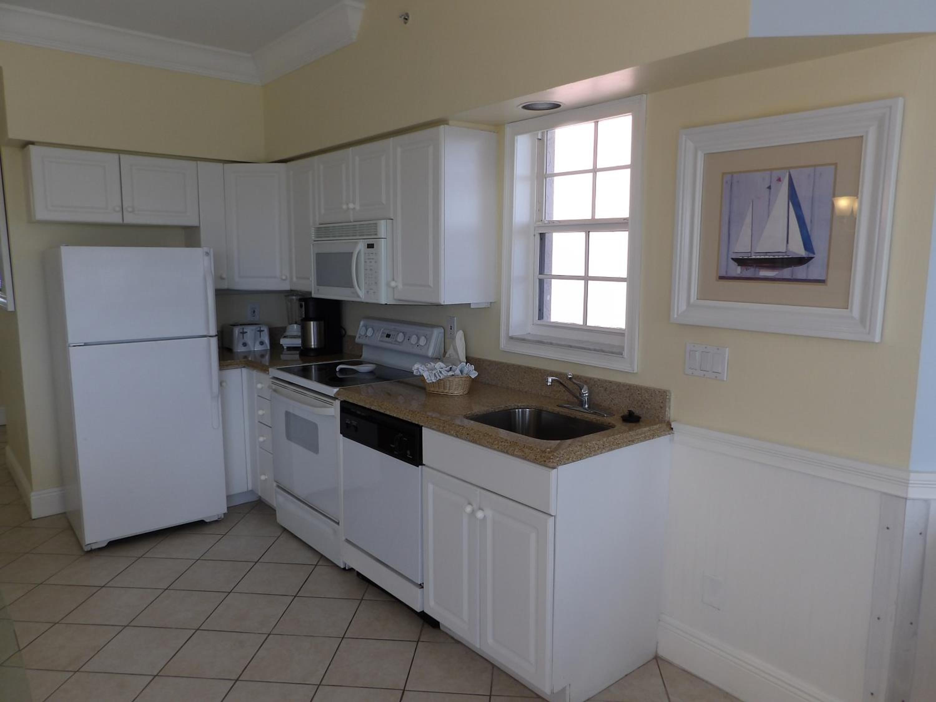 In-suite kitchenettes with full-size refrigerators, microwaves, stoves and dishwashers are available in every room.