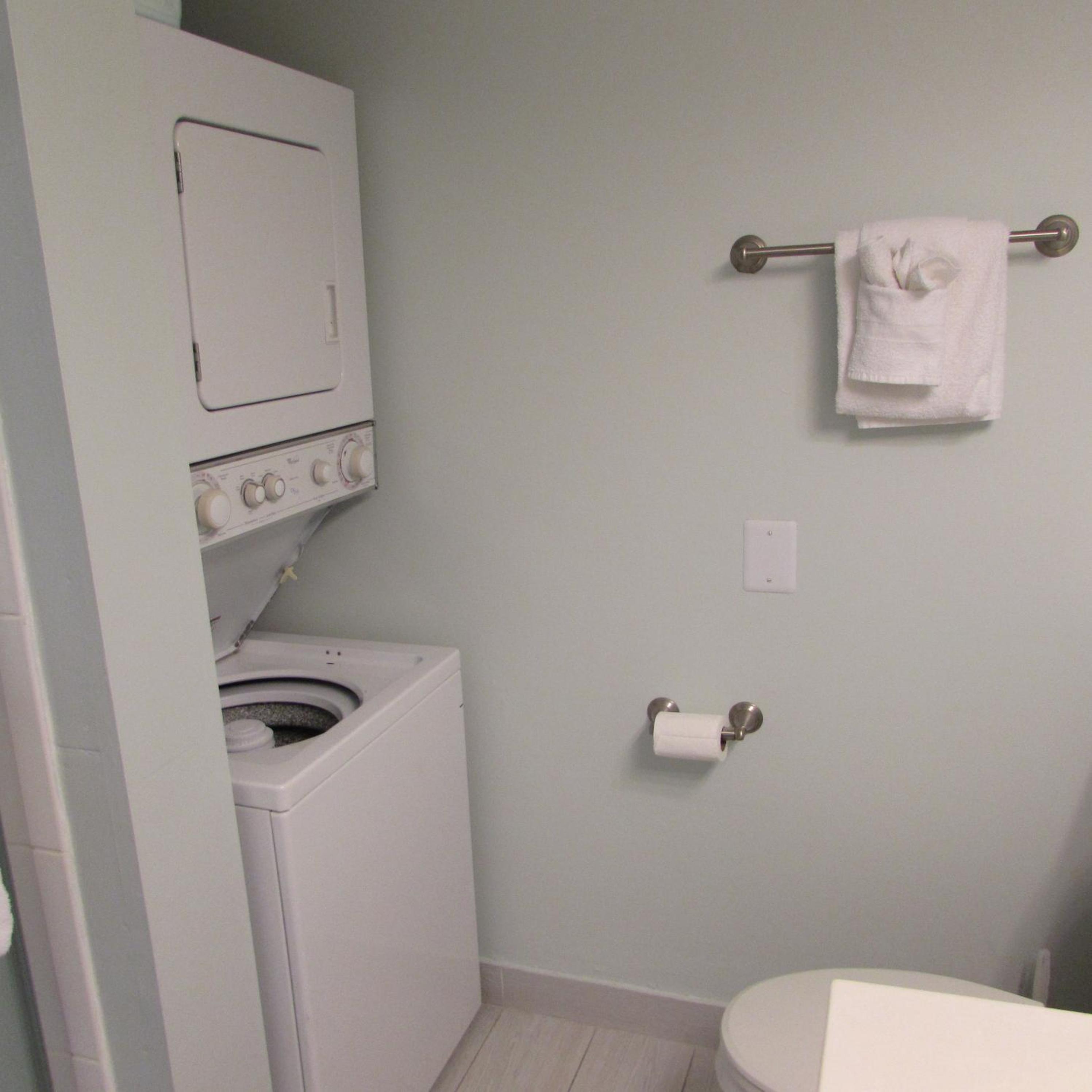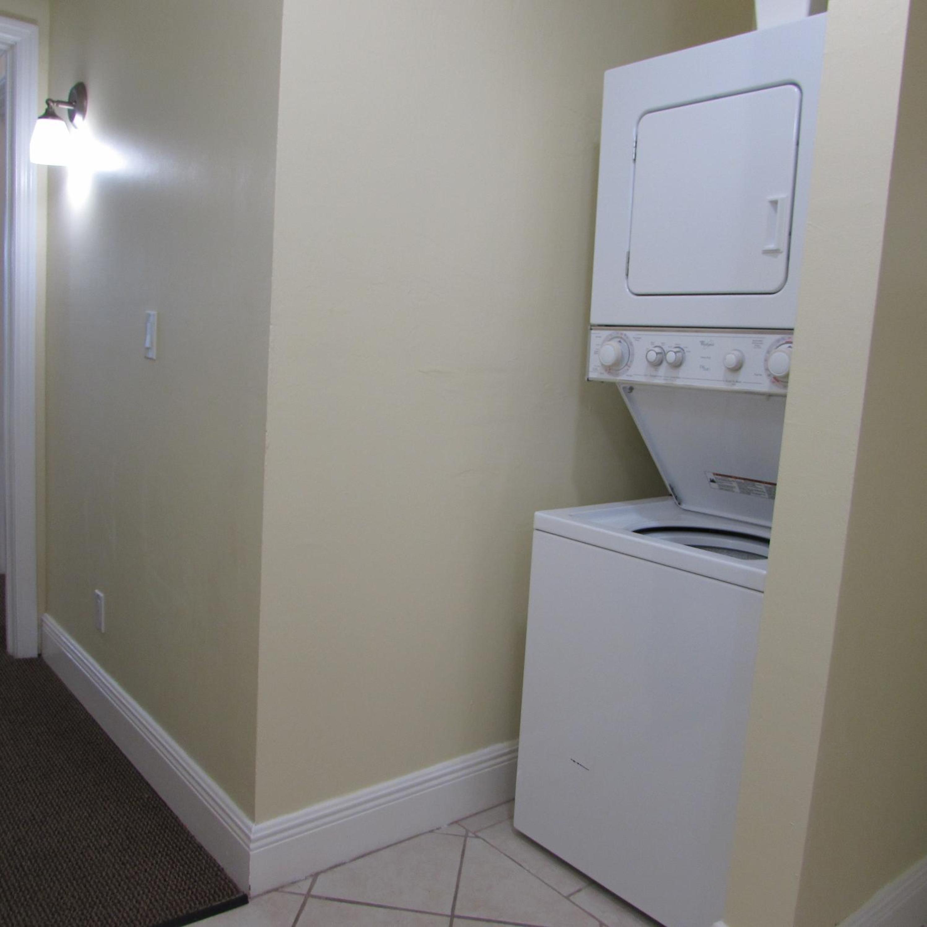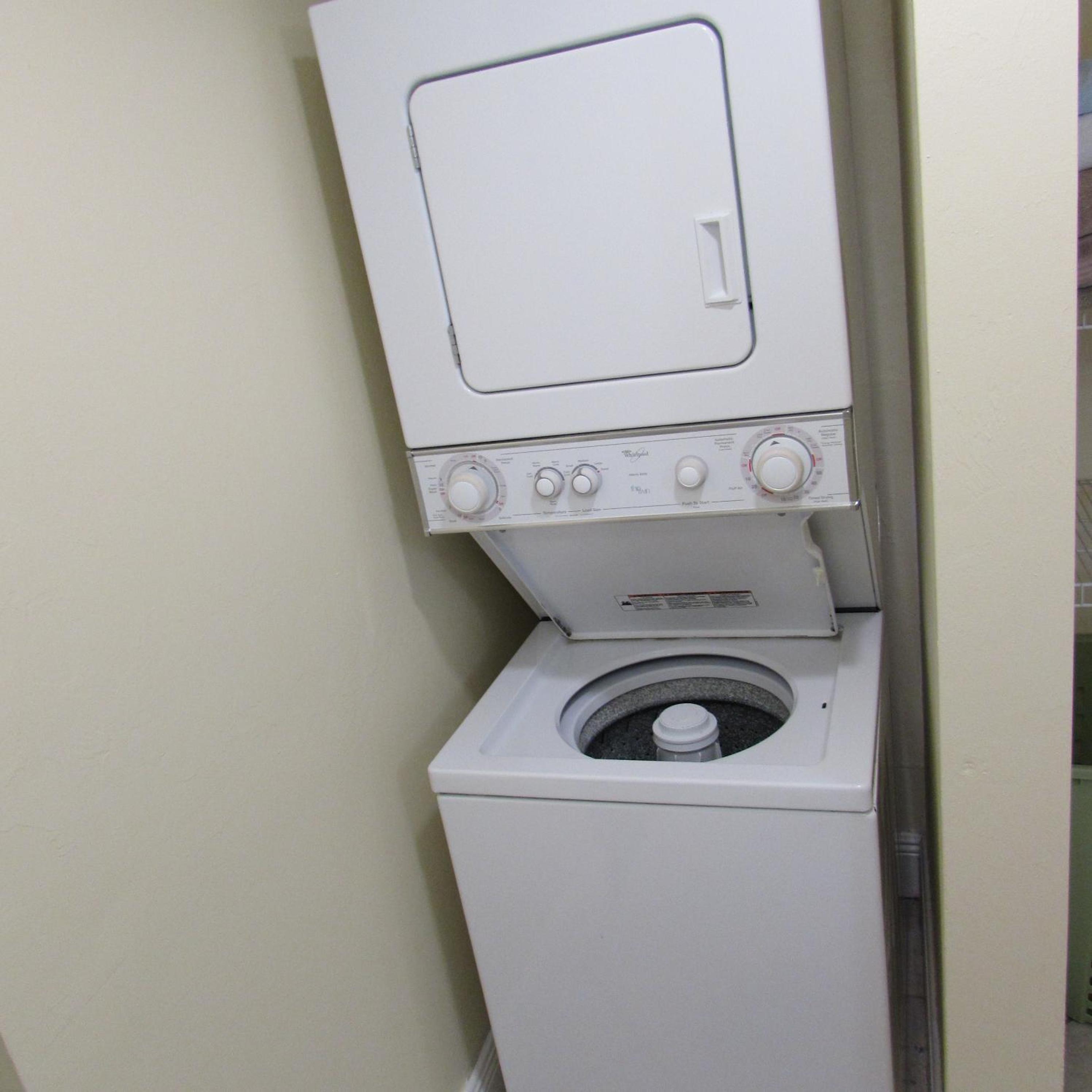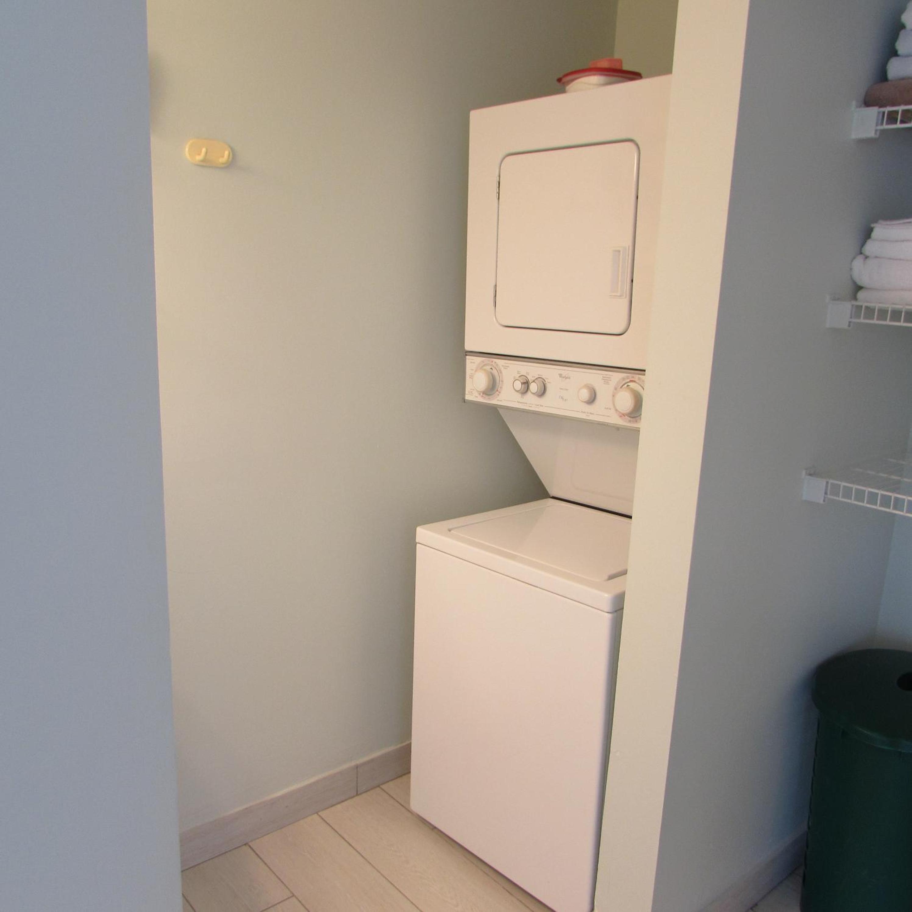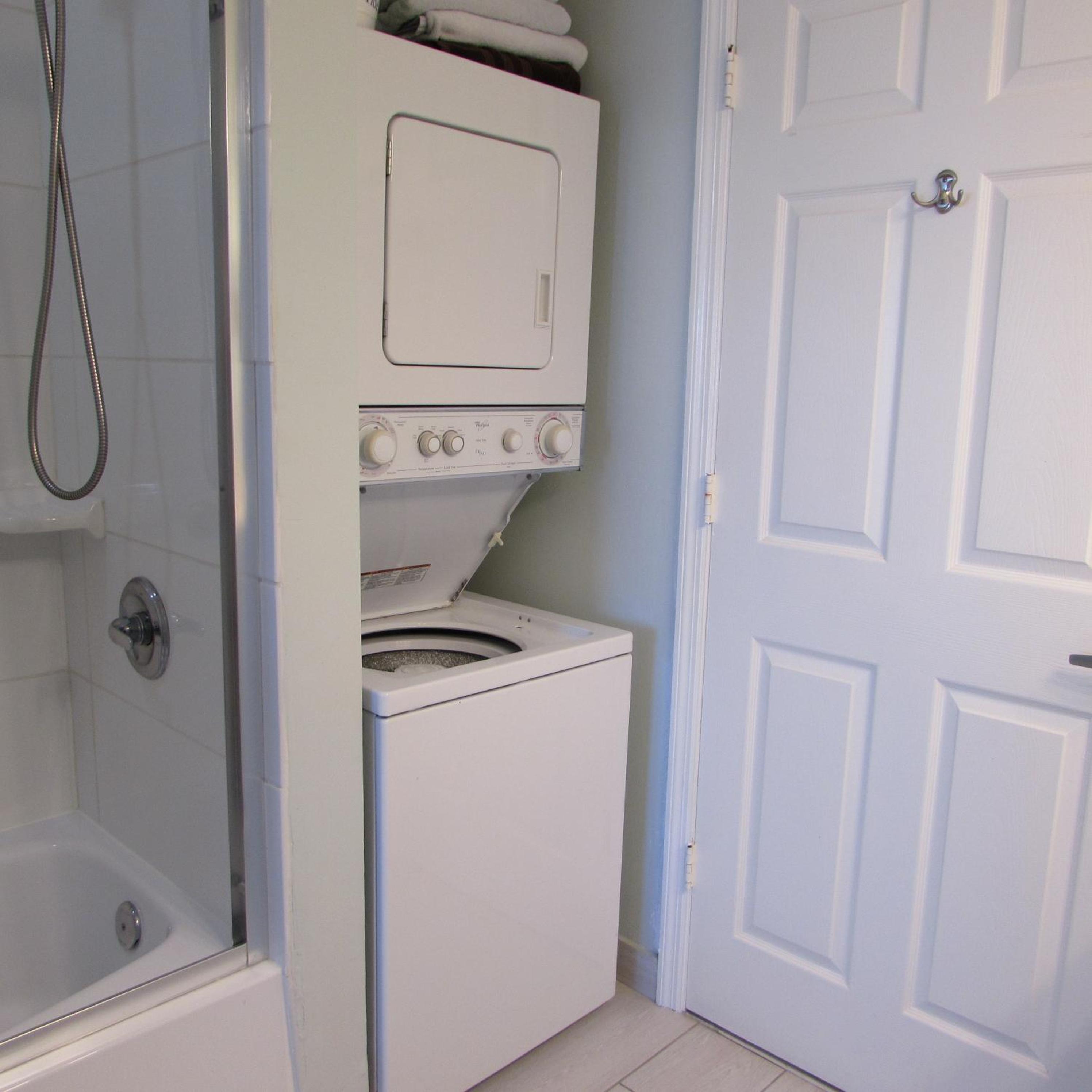 Stacked washers and dryers are available in each suite for personal laundry use.
