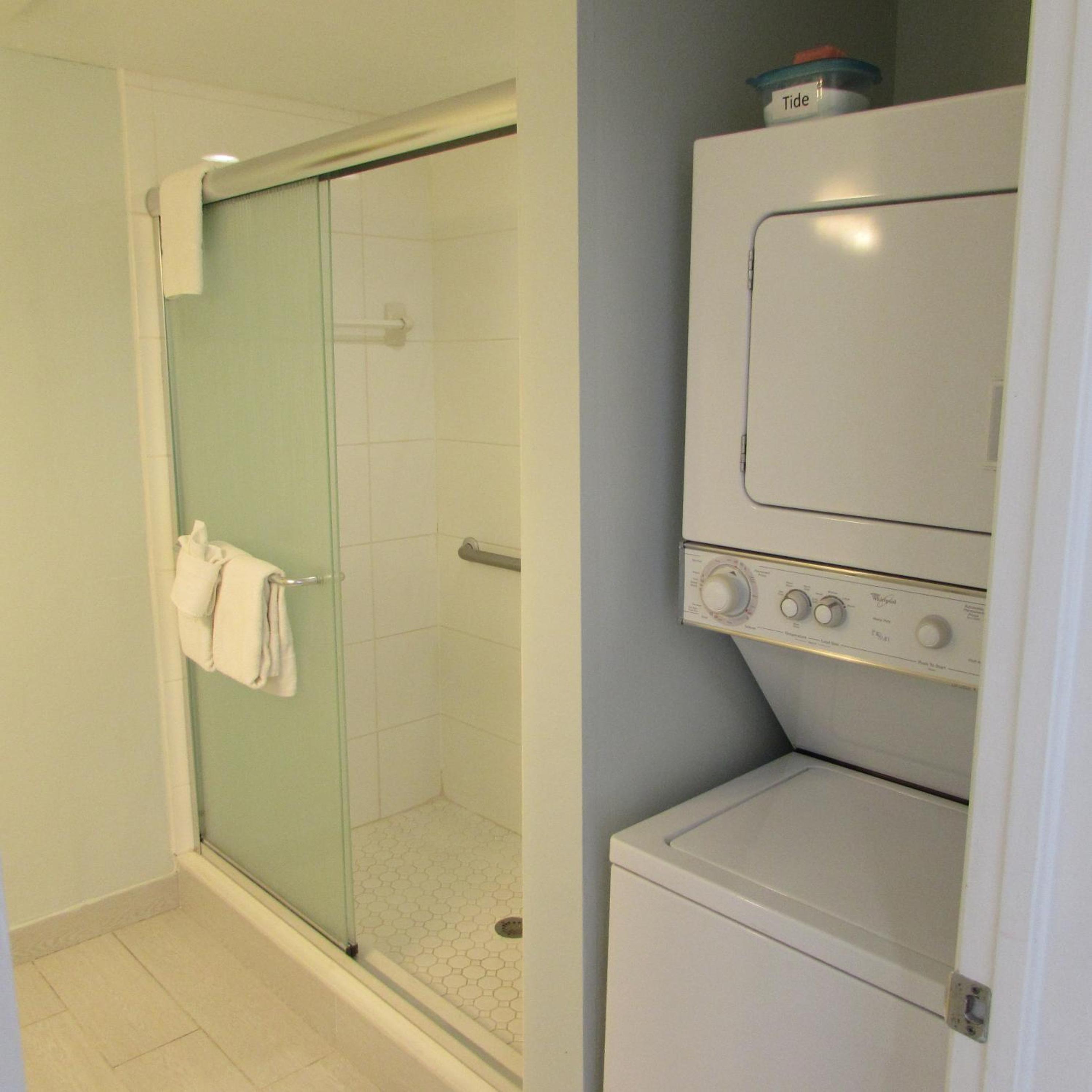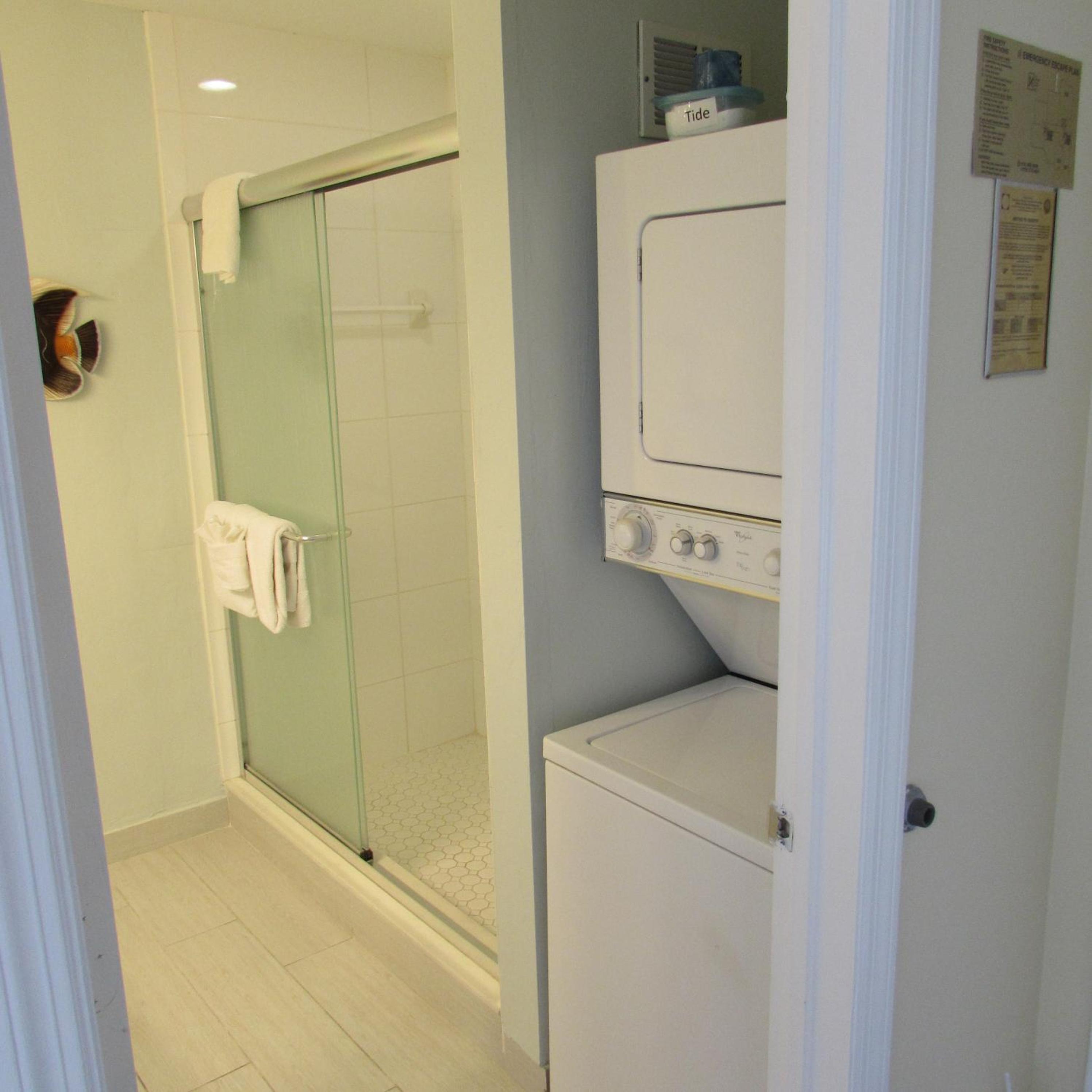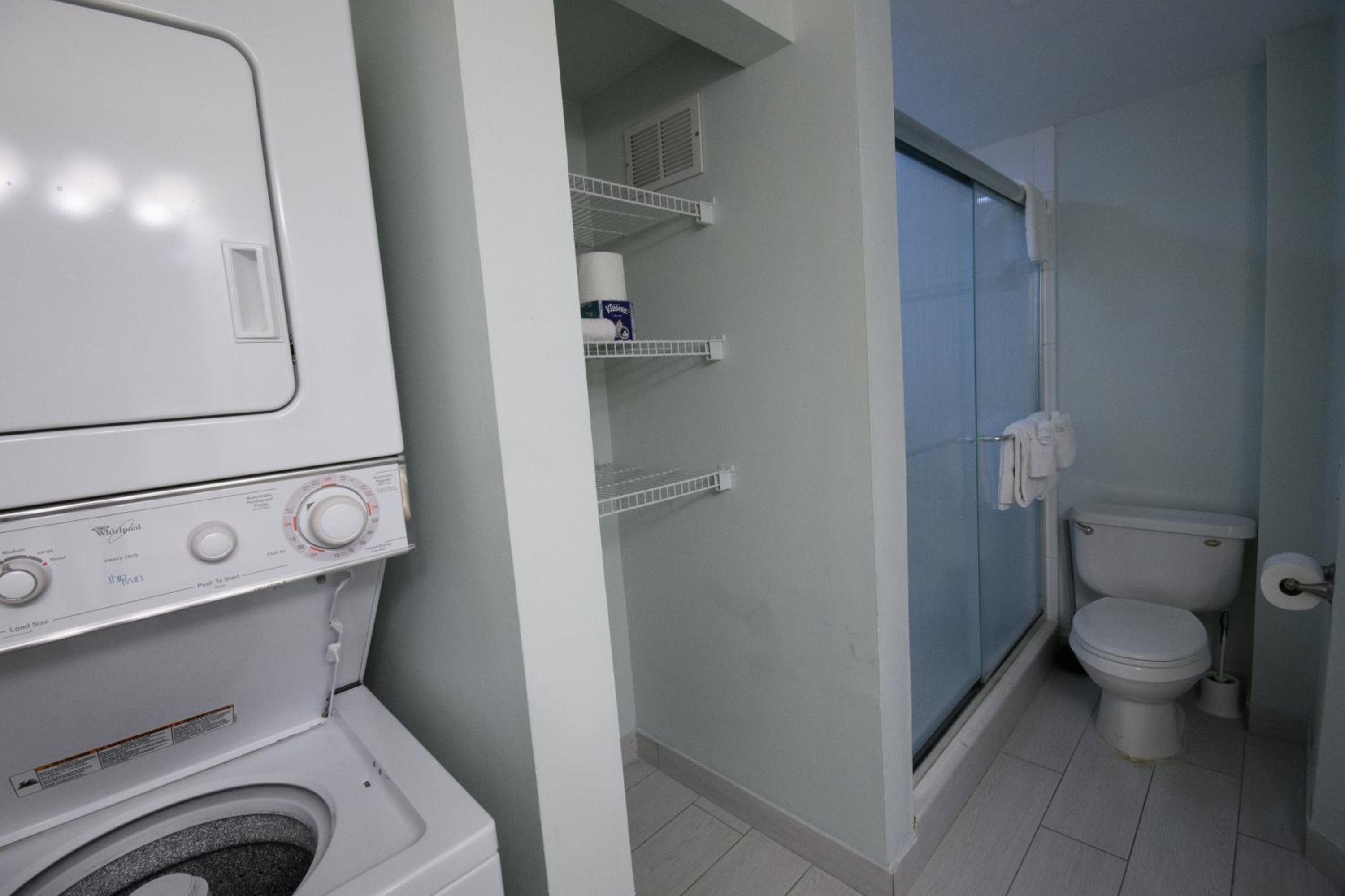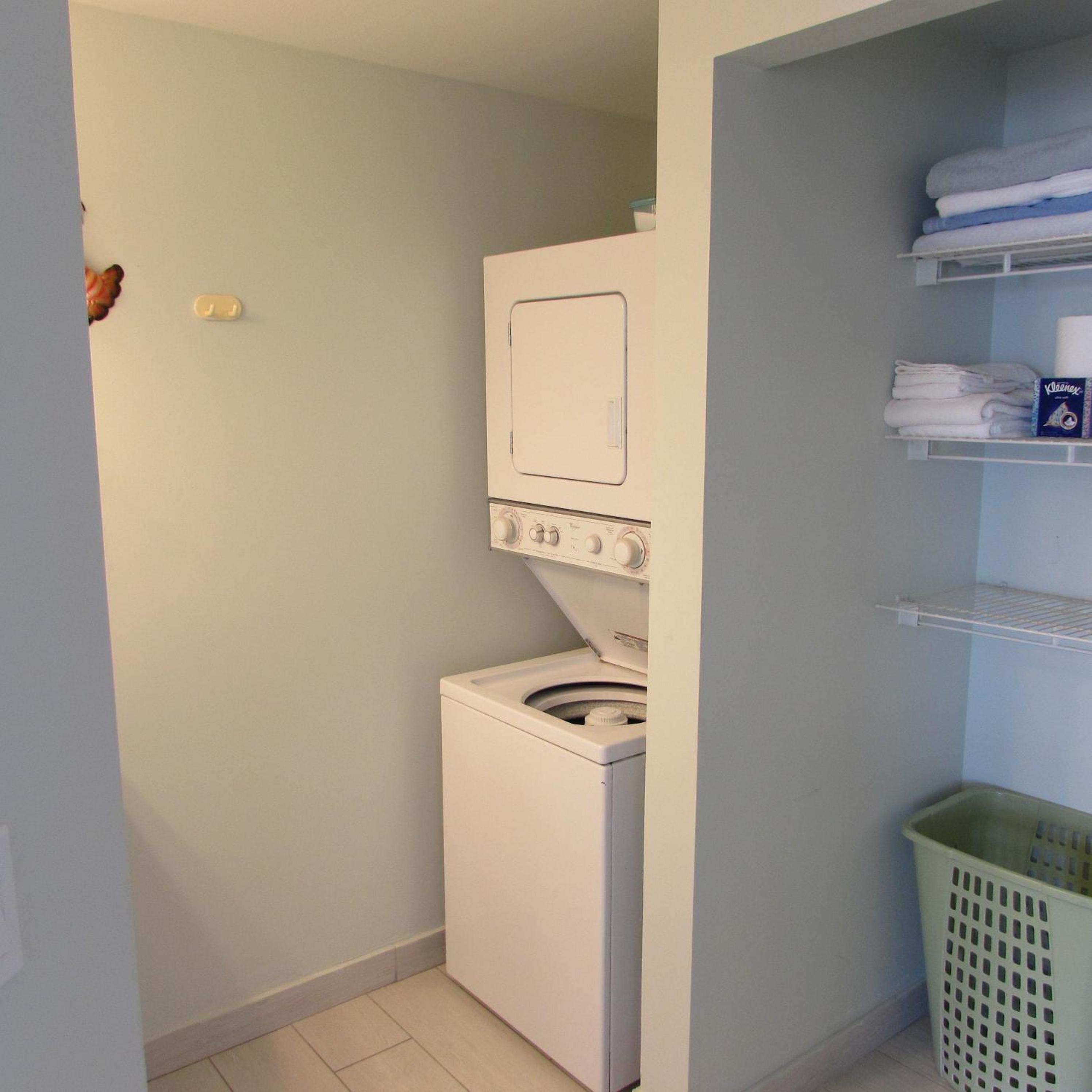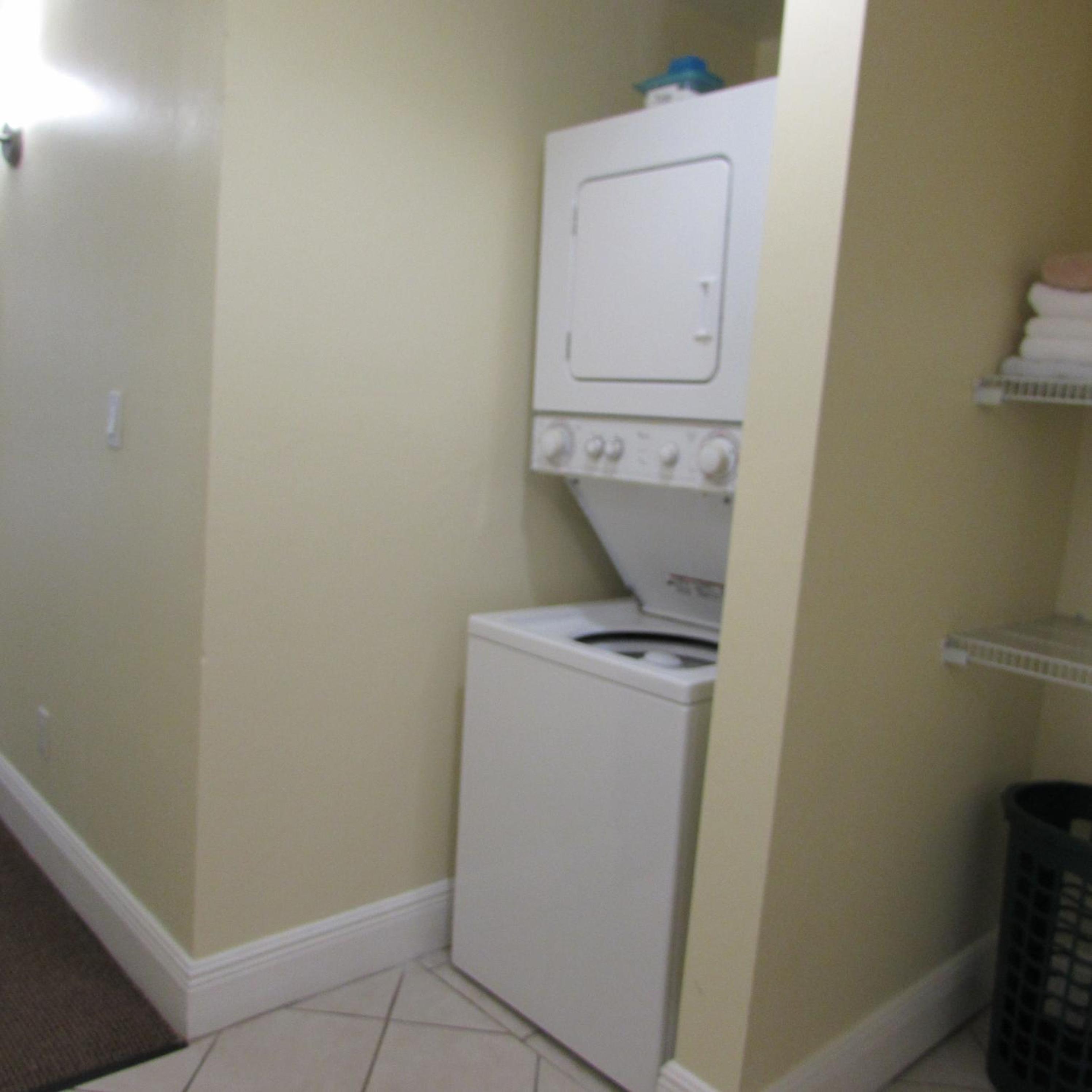 Stacked washers and dryers are available in each suite for personal laundry use.