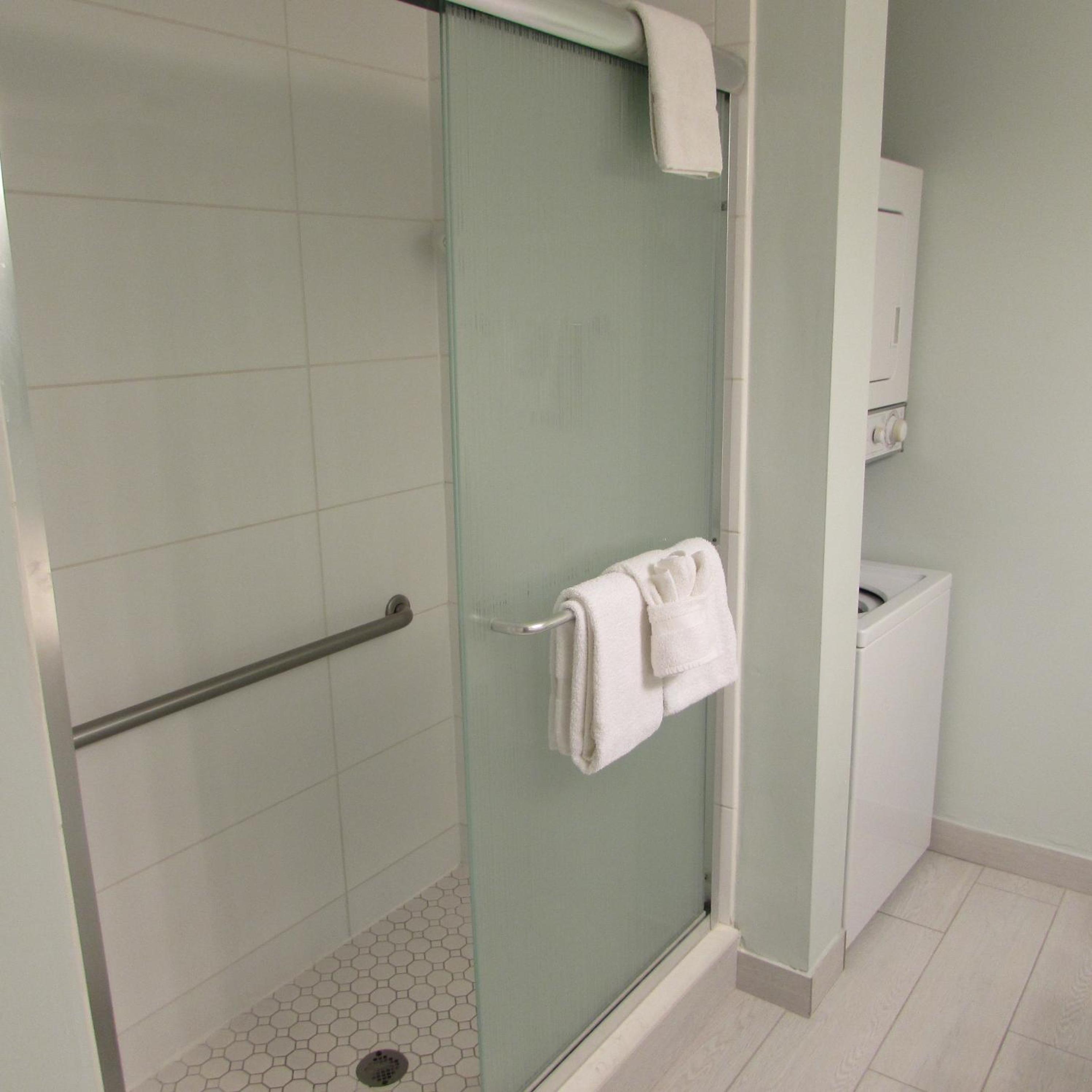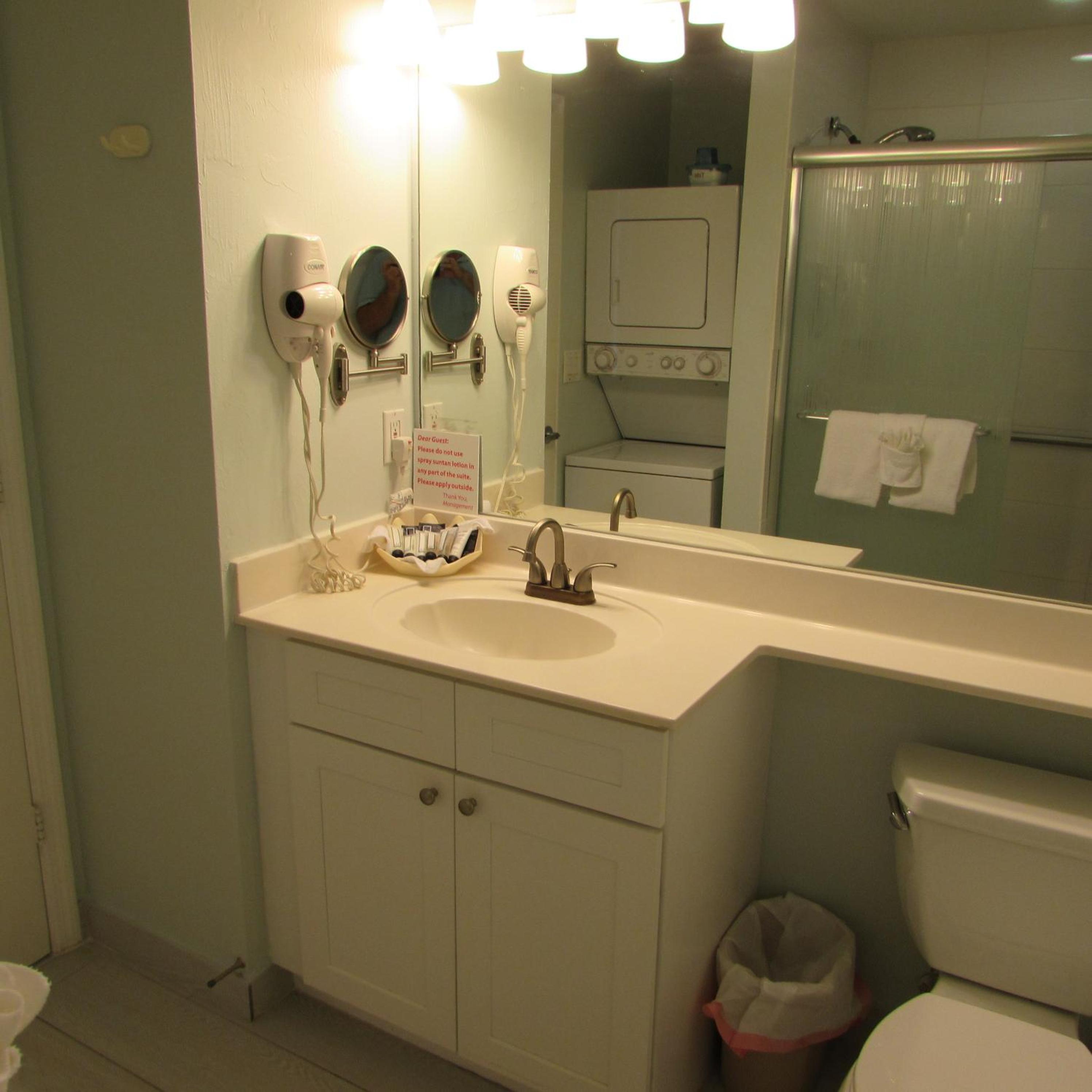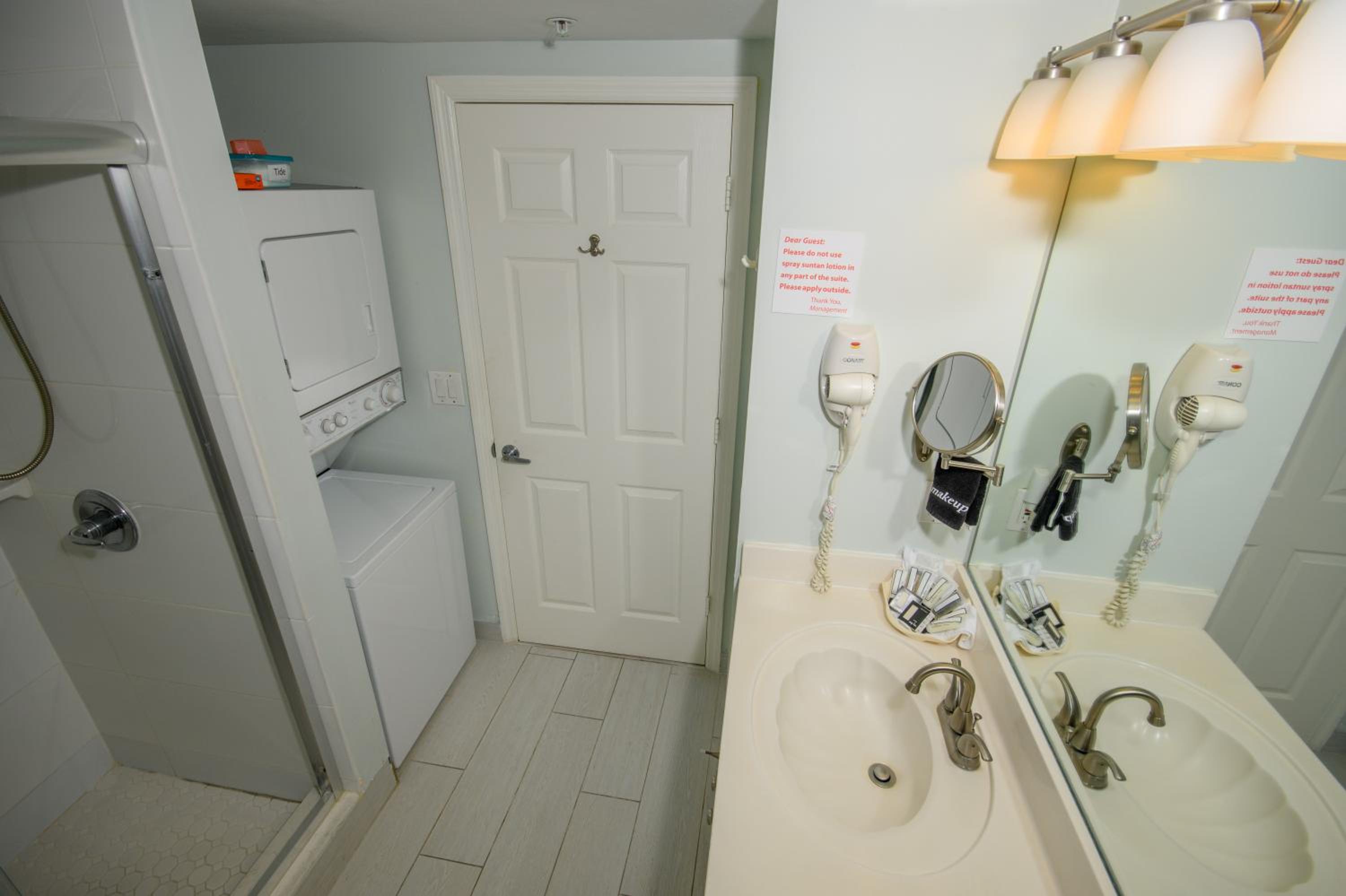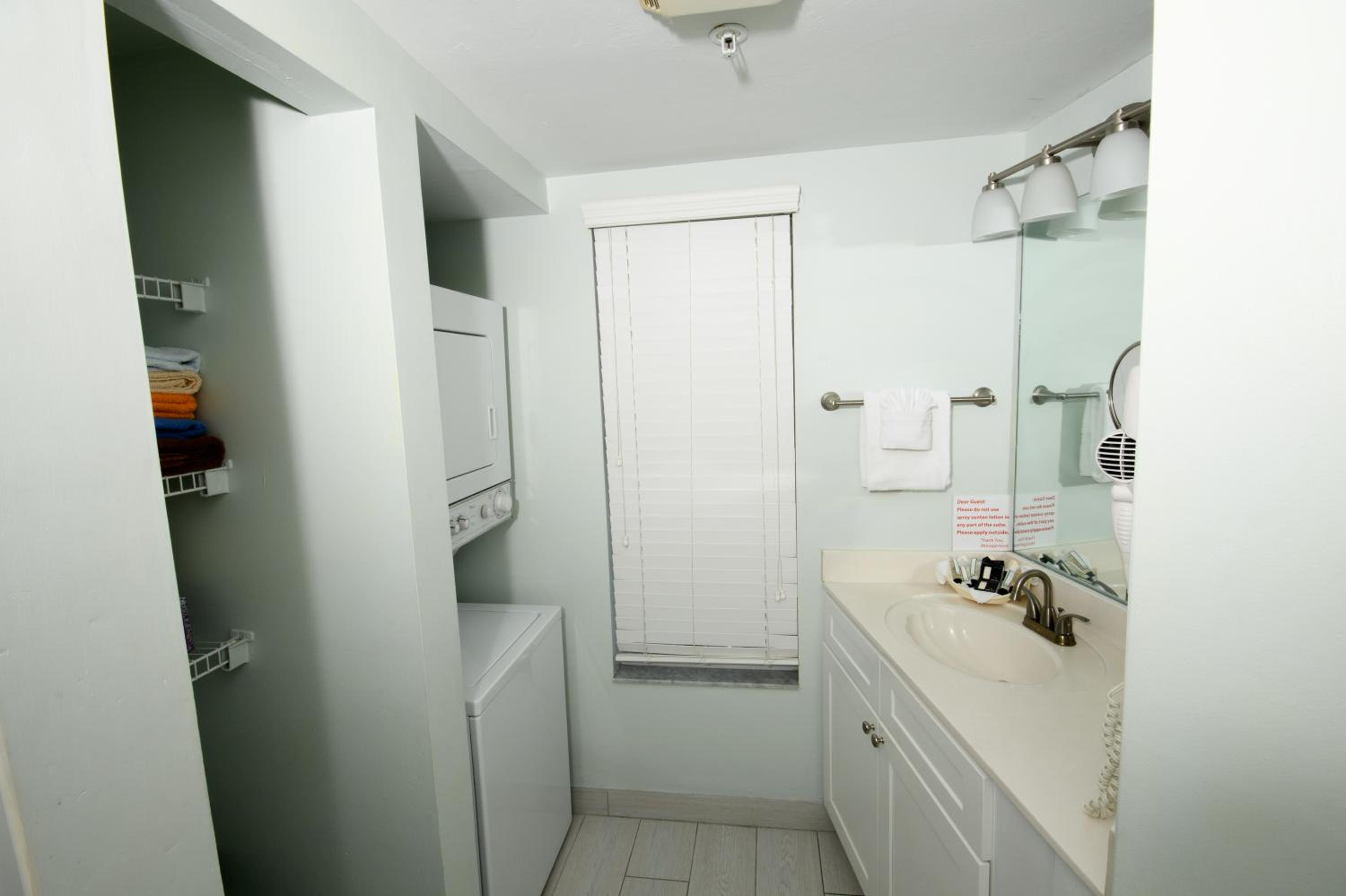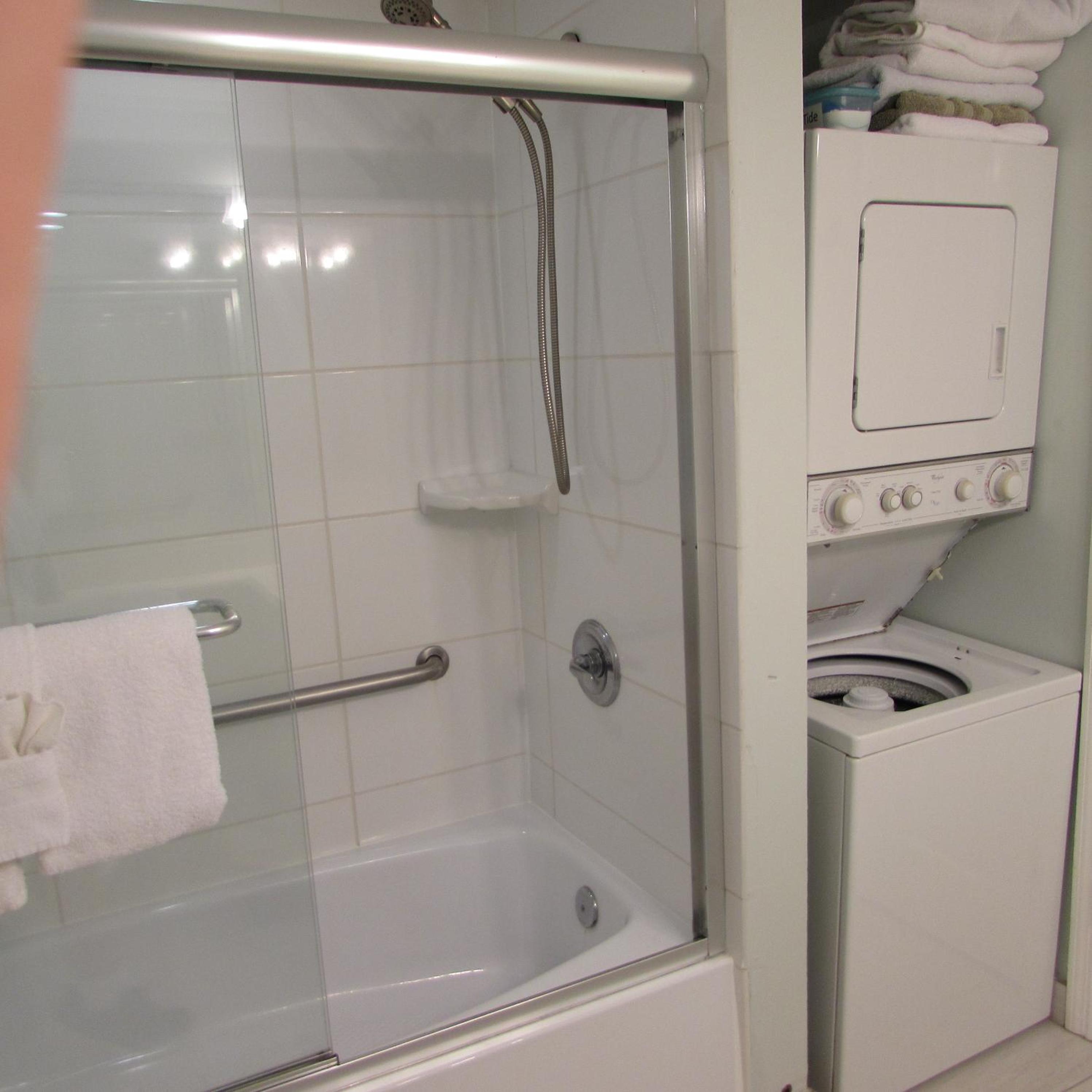 Stacked washers and dryers are available in each suite for personal laundry use.