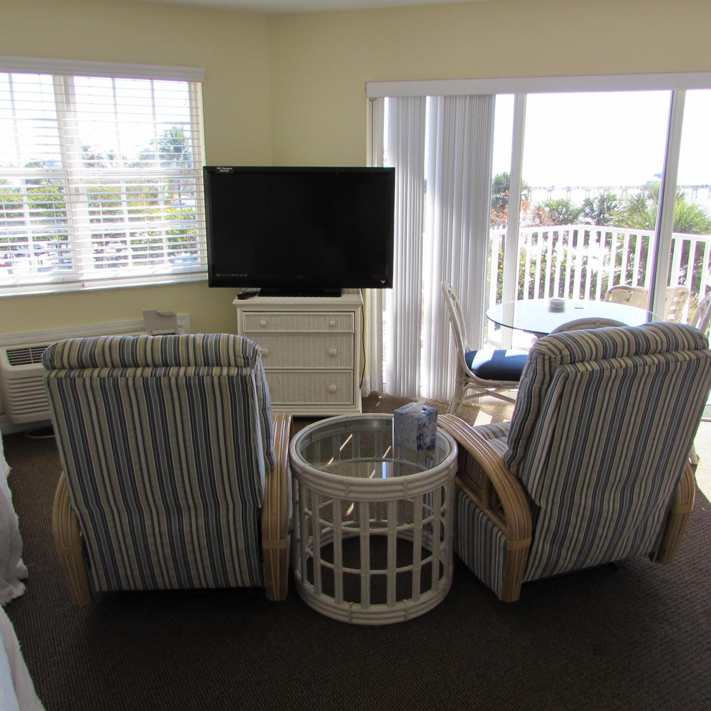 Great vacation, hotel is clean and view from room 302 was fantastic, beds were comfortable and there wasn’t anything I can think of that would’ve made it better! The grounds were clean and they had a small coffee and snack set up in the morning 7-10 with bear claws, juice, cereal , muffins , it was a nice touch! Beach was fantastic and they had floats, chairs and umbrellas! The pool area was also nice with plenty of chairs! Shout out to Annie, we interacted with her the most and she was the sweetest! Everyone else was great as well but I didn’t get all of their names. It was perfectly located in walking distance of everything! We had coffee every morning in the balcony and watched dolphins swim by! It was a great time and we will go back!