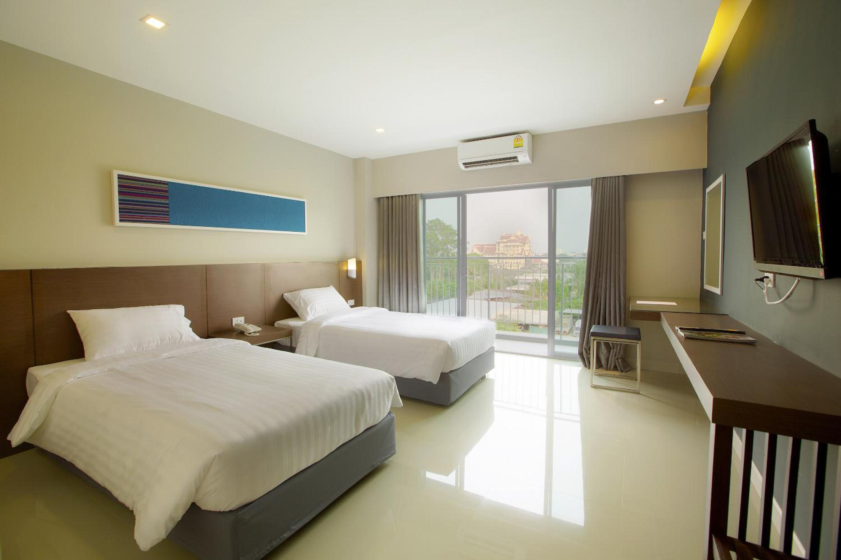 Indulge in well-equipped rooms featuring air conditioning, flat-screen TVs, and private balconies with city views. Each room comes with essential amenities including a fridge, ensuring a comfortable stay. The attentive staff is available 24/7 at the reception to cater to your needs in English and Thai.
