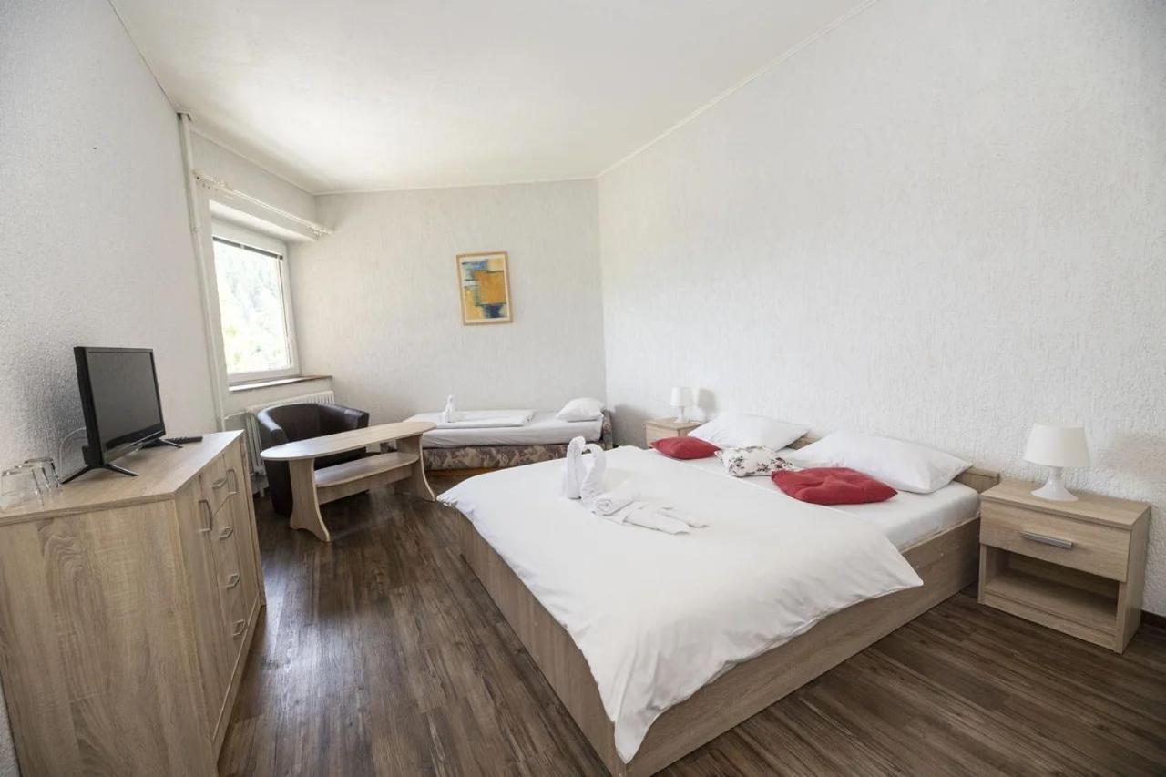 Hotel zlokalizowany tuż przy stoku. Duża powierzchnia pokoju, niezłe śniadanie.