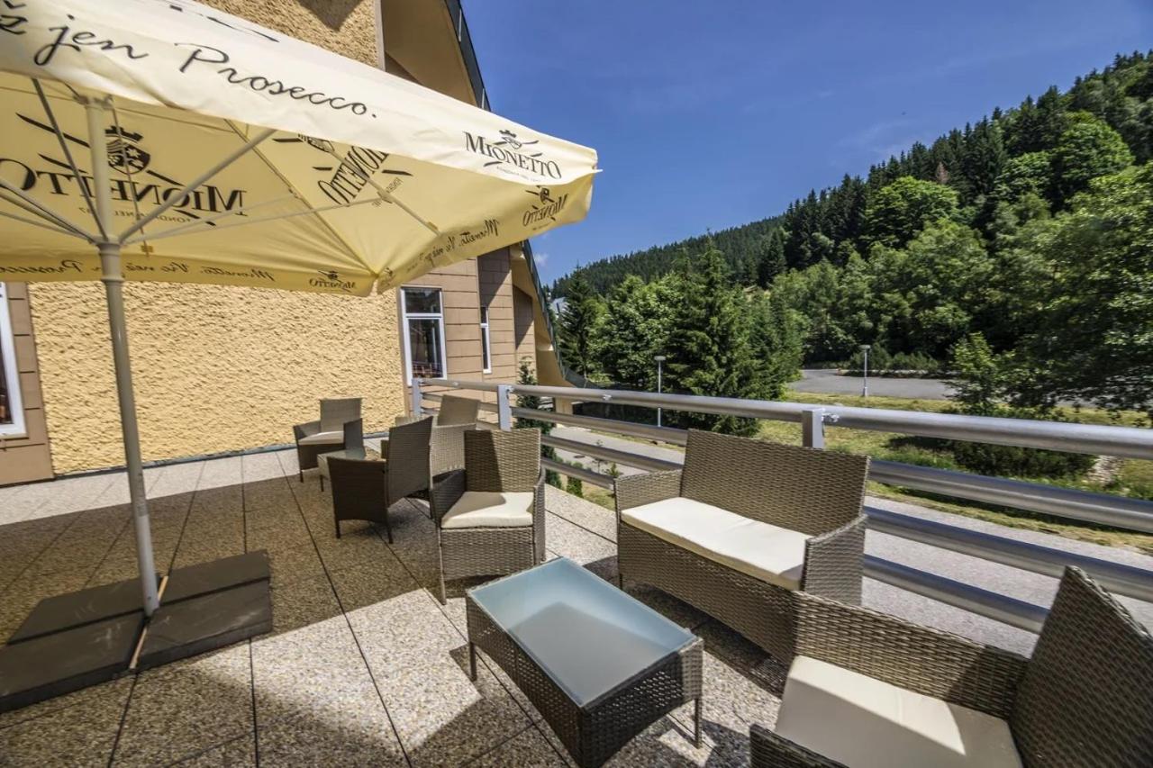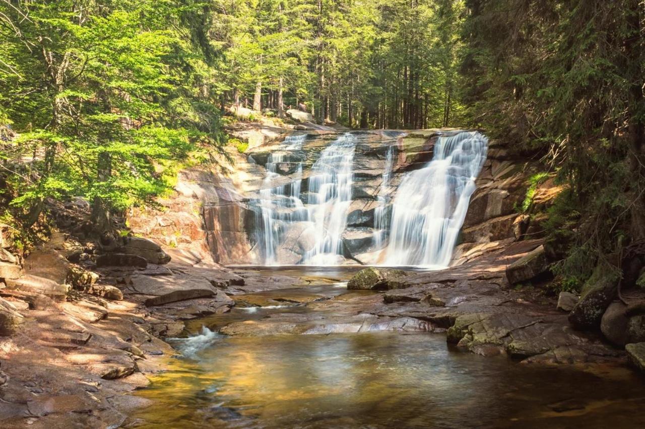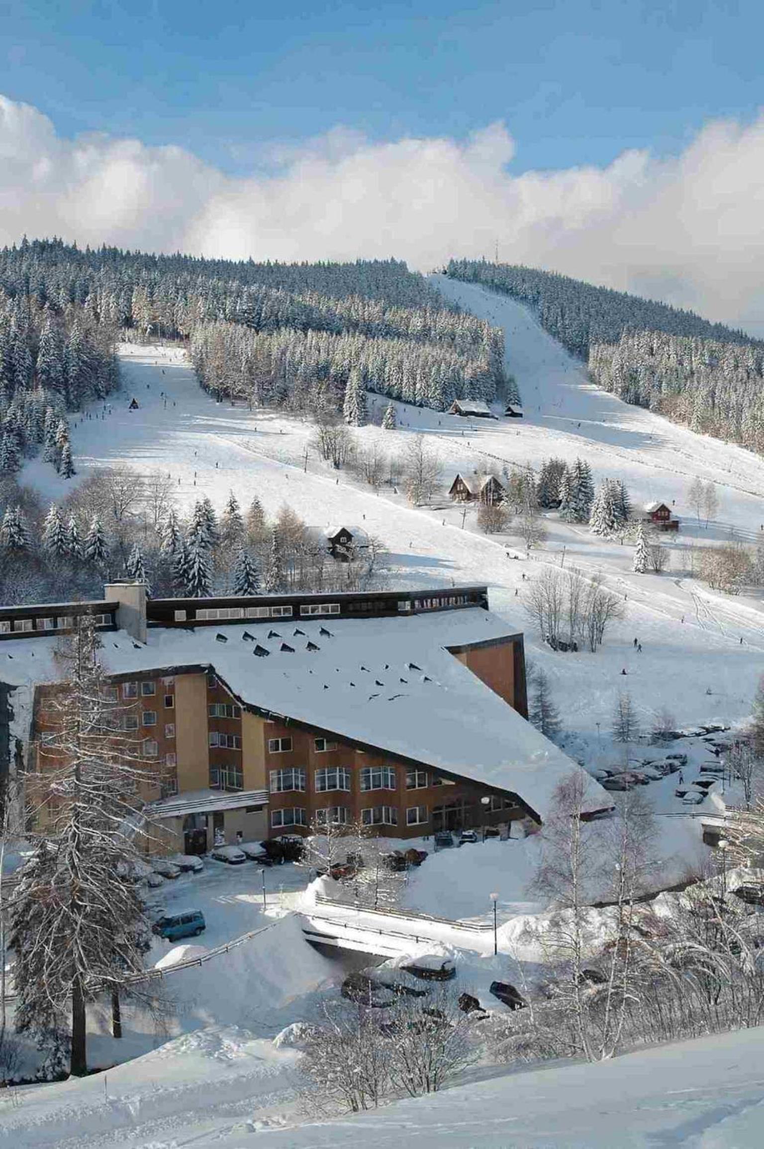 From renting bikes and skiing equipment to booking skiing lessons, the hotel caters to outdoor enthusiasts. Unwind in the hot tub, sauna, gym, or massage parlour after exploring nearby attractions like the Mumlavské Waterfalls or the Glass Museum in Harrachov.