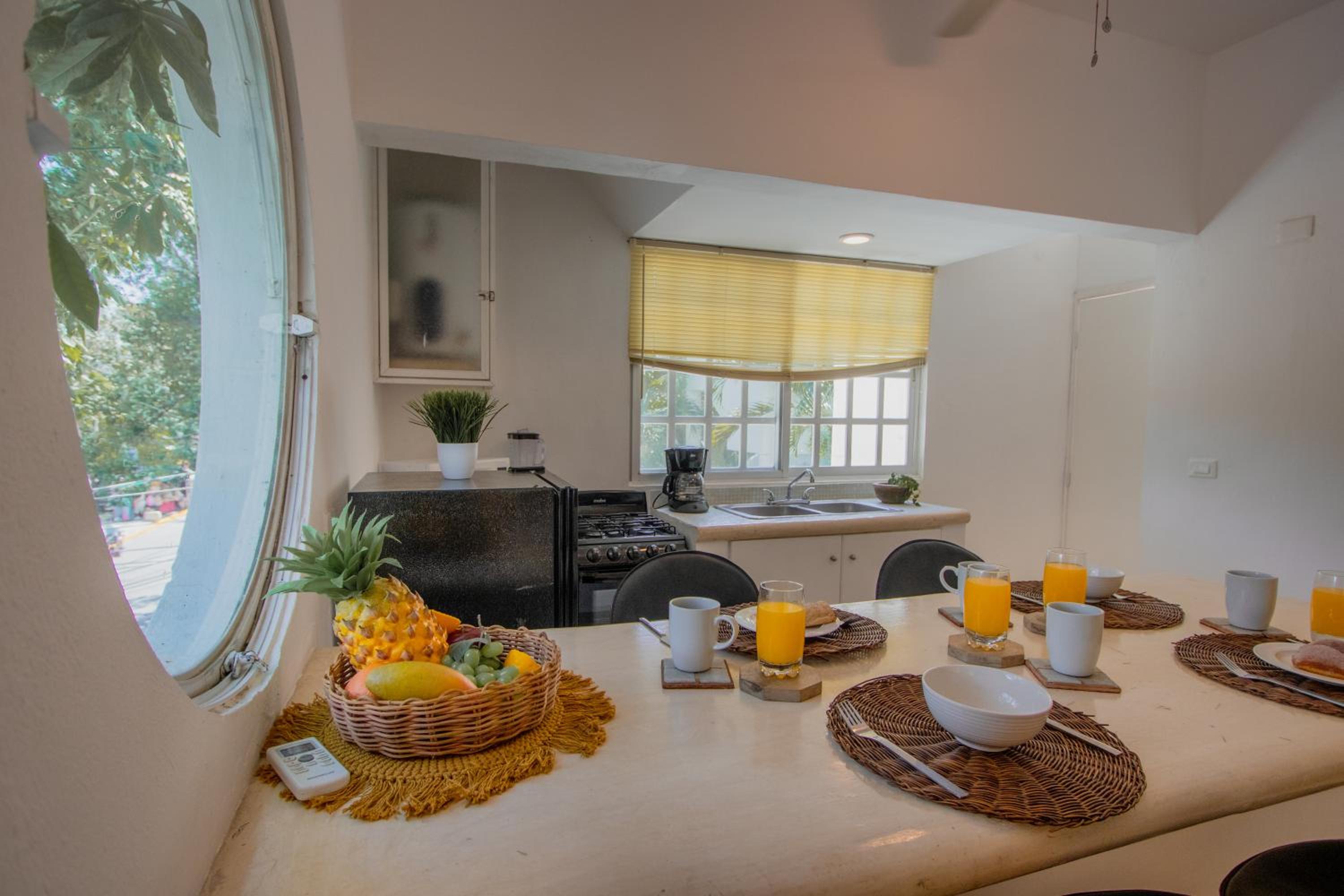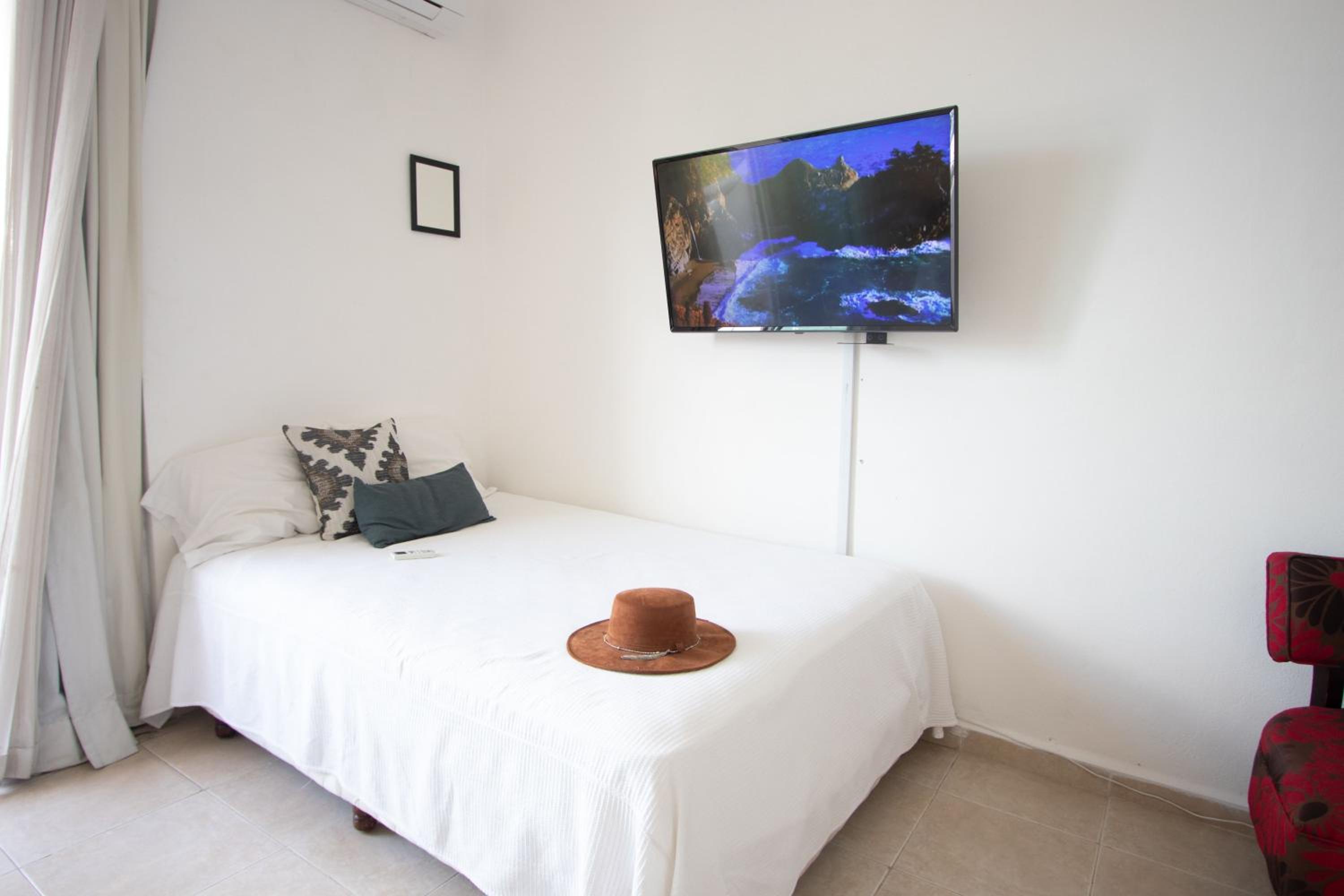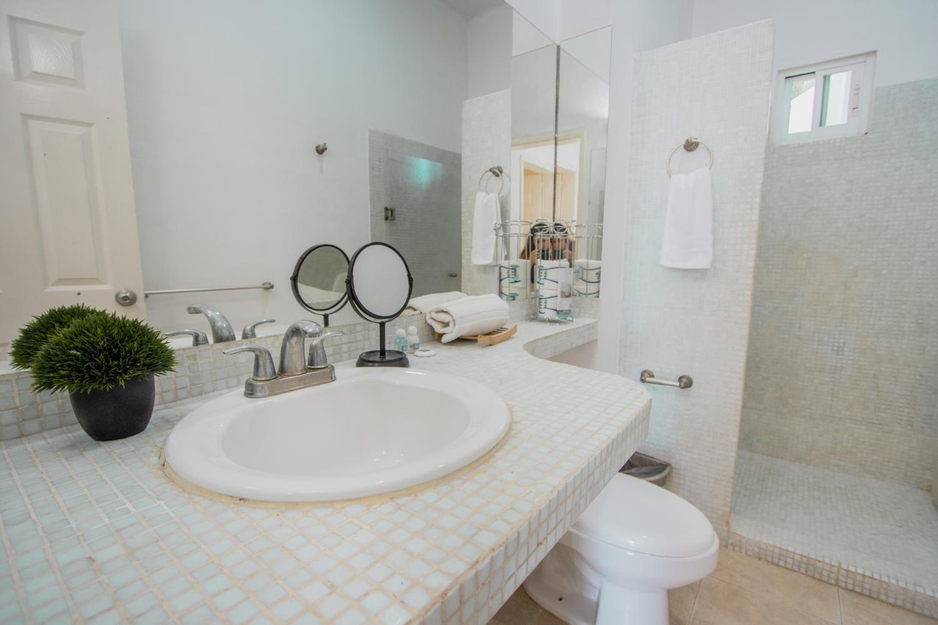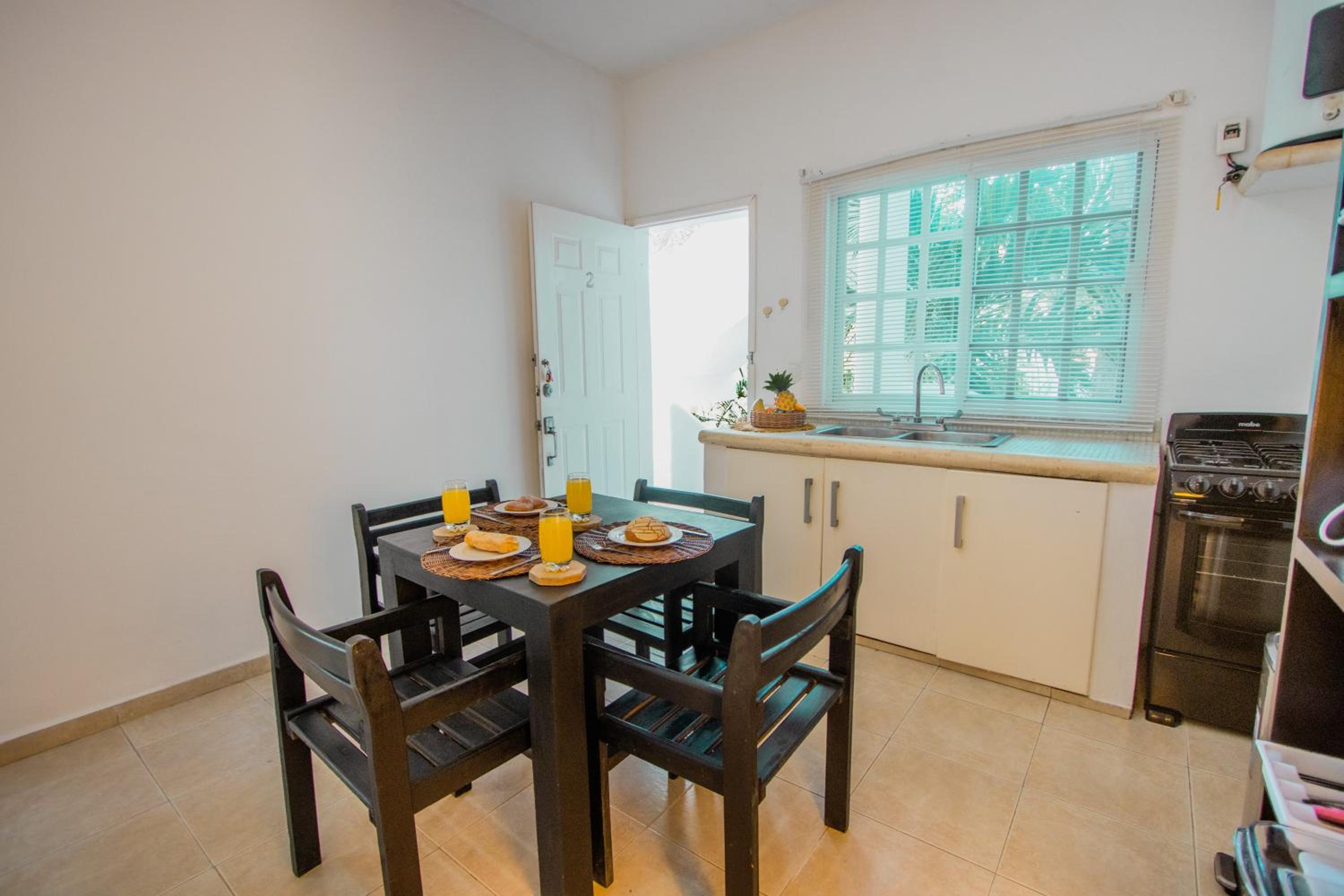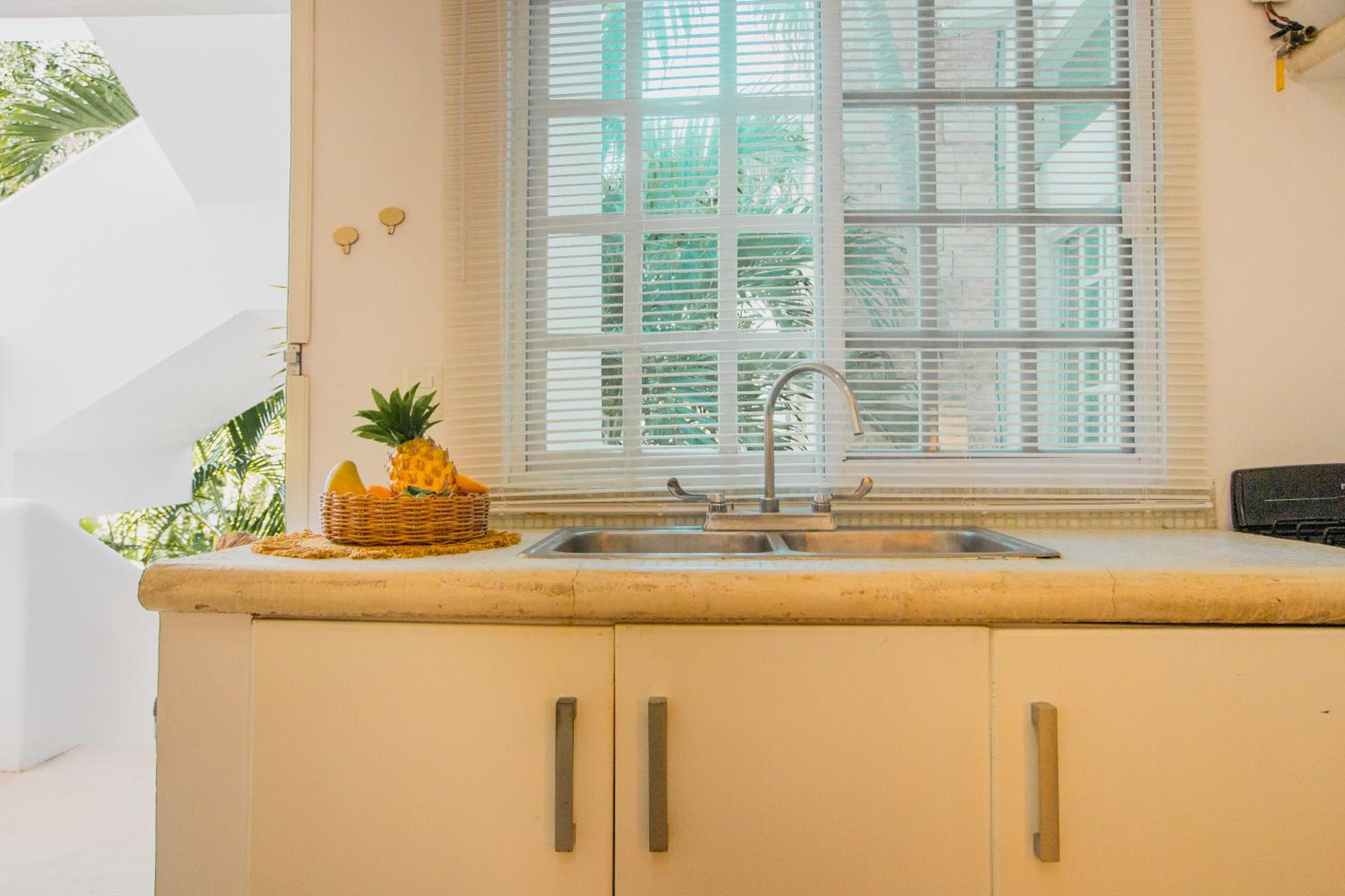 The photos posted for this hotel are totally photoshopped using filters. It is my opinion that they must have gotten friends and family to write reviews or bought the reviews. We were in unit 7 and it smelled of mold as soon as you stopped into it so you know it was on the walls. There was mold in different parts of the bathroom and there was mold all on the bedroom curtains. The second bathroom shower didn’t work so we never got to use it the entire time, even though I asked them to fix it twice. The shower that did “work” hardly had any water pressure. I actually washed my hair in the kitchen sink three times because that had better water pressure than the shower. The hot water handle got so hot that at the end of the shower you had to use a towel to turn it off or you would burn your hand. There was a sign that says you are not allowed to flush any toilet paper, even poopy toilet paper. But they just give you a regular trashcan without a lid or even extra trash bags. They say that it’s like that all over playa Del Carmen, but that’s not true. I never went into one restaurant or bar that said that we can’t flush the toilet paper. It said don’t flush paper towels, but that’s common sense everywhere in the world. Even the toilet seats were too big for the toilets because they hit the vanity and couldn’t even stay upright. So the one night I threw up, I had to hold the toilet seat up as well. This magical helper lady that everyone talks about, never saw her, never met her. There was a maintenance young man, but the only thing I ever saw him do for the entire six days we were there was wash the owners multiple vehicles in front of the property. I’m not exaggerating! The king size bed only came with two pillows, even after I asked for extra pillows with the reservation. They do not provide beach towels, but they will give you extra towels if you ask for them. But they don’t give you washcloths or hand towels.