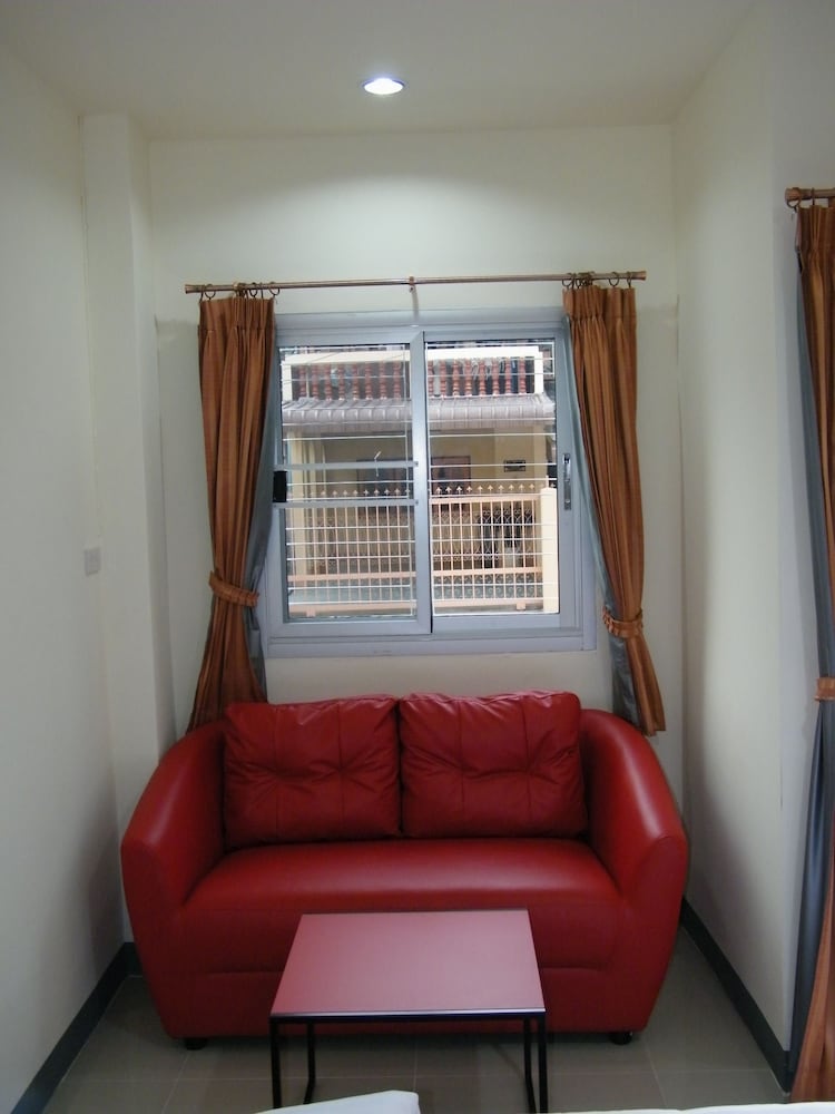 L'hôtel est assez excentré mais très facile d'accès depuis l'axe routier principal. La gare est loin mais pas l'aéroport. L'hôtel est situé on fond d'une petite rue. A part celles des riverains pas de circulation. J'ai dormi dans le calme. A deux pas il y a un Big C, des commerces et restaurants locaux où l'on mange bien. Il y a régulièrement des Pick up taxi 10 places qui fond la navette centre ville Big C et contraire. Pour quelques jours je recommande cette maison d'hôtes sans problèmes.