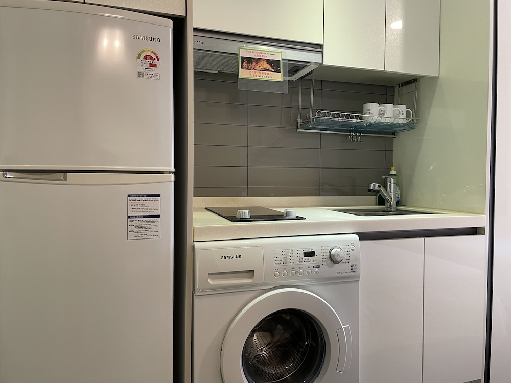 Extremely convenient to subway lines 3 and 5 and short walk to bus stations. Lots of good places to eat in the area. Room had small cooktop to do some light cooking if you prefer to dine indoors, but with the assortment of dining options we didn't use it. Room has a laundry machine also which was a nice touch.