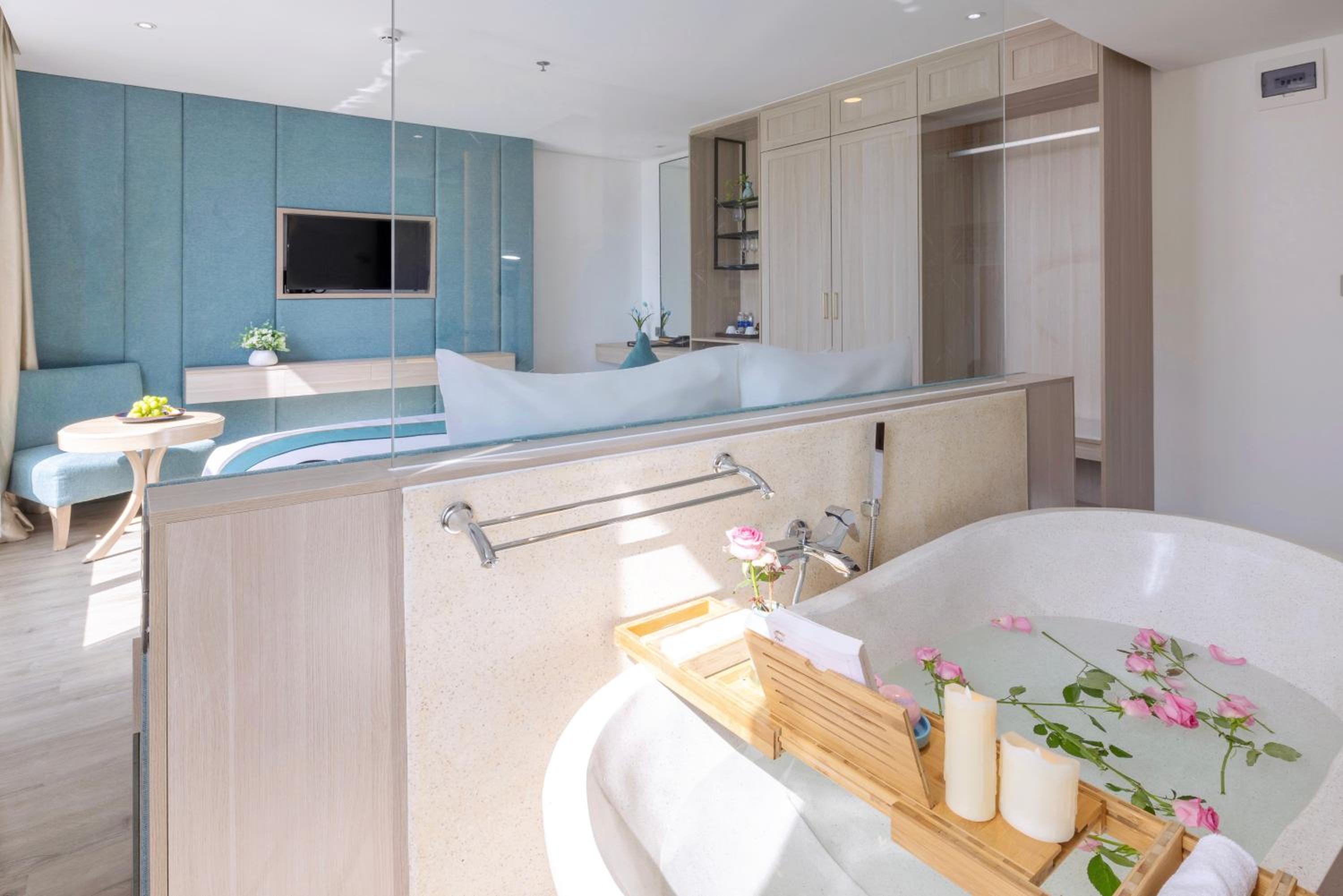 Great location for beach access, just 5 minutes walk to (paid) sun loungers and surfing equipment hire. Two nice pools (lower floor one more secluded than the top floor). Huge breakfast area, which still got somewhat crowded, but it was during the Tet holidays. Good vegetarian options; one big part of the restaurant is allocated specifically to vegetarian food. Generally helpful staff. Rooms are clean and spacious. Beds are on the hard side. Air con can be somewhat noisy in some of the rooms (mostly due to strong wind I guess).