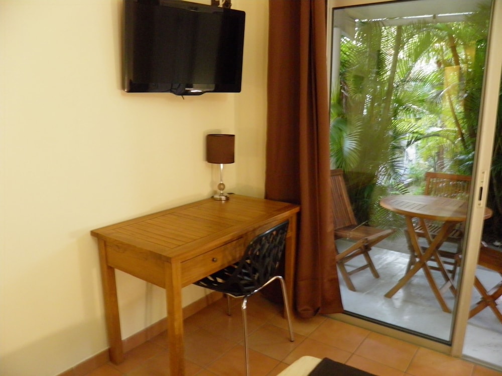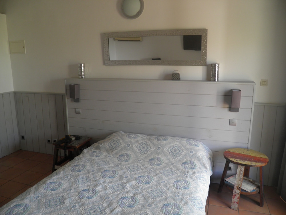 Chambre en duplex avec salle de bain et kitchenette. Un bureau, du wifi avec un bon débit, une piscine super sympa avec 24h/24h. Et gérant très sympathique. Je recommande