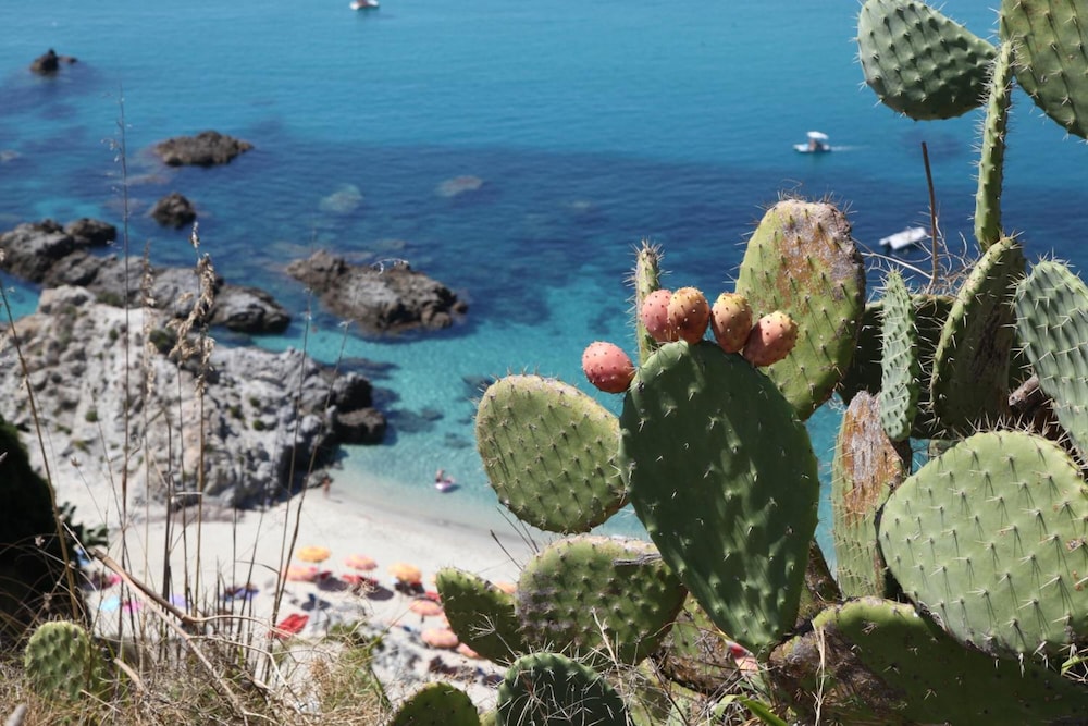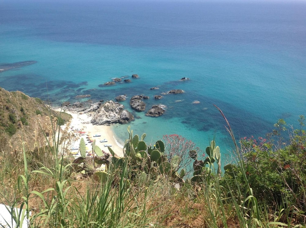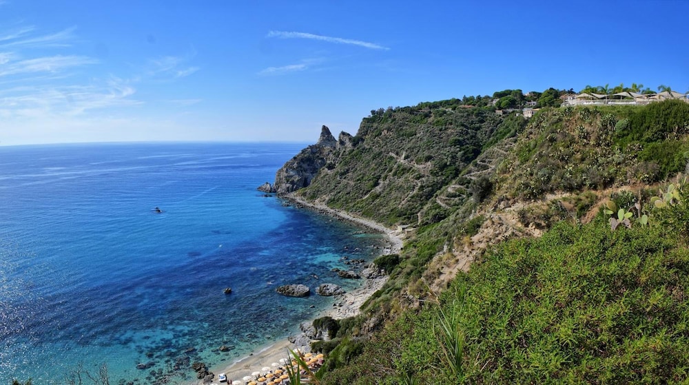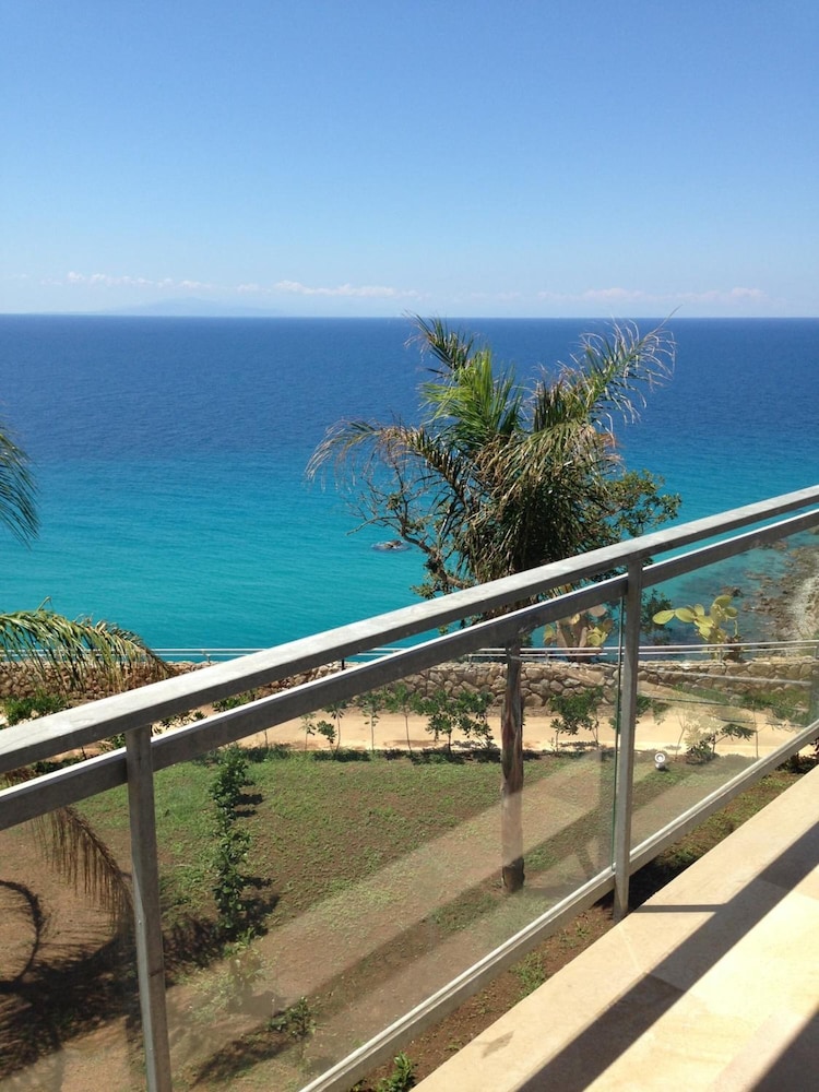 Tolle Lokation an der kalabrischen Küste mit einer herrlichen Aussicht von jedem Punkt auf dem Gelände. Schöner privater Strand mit einem großartigen Weg/Abstieg zum Strand, Der bei 30 Grad aber durchaus schweißtreibend sein kann.