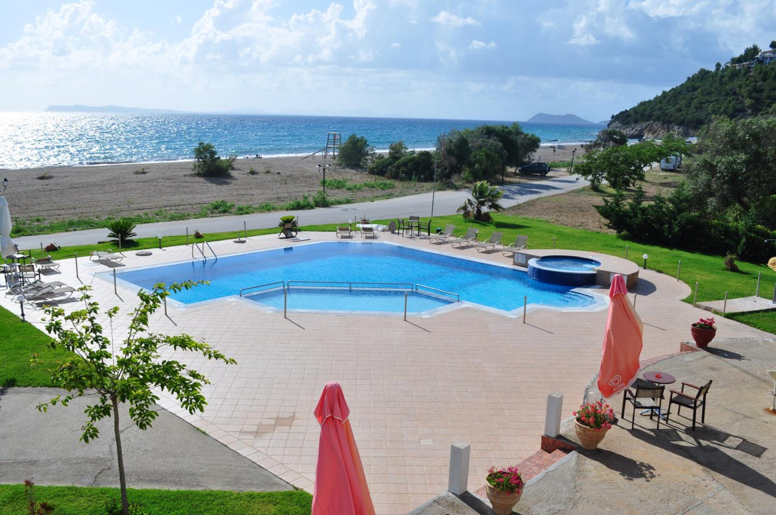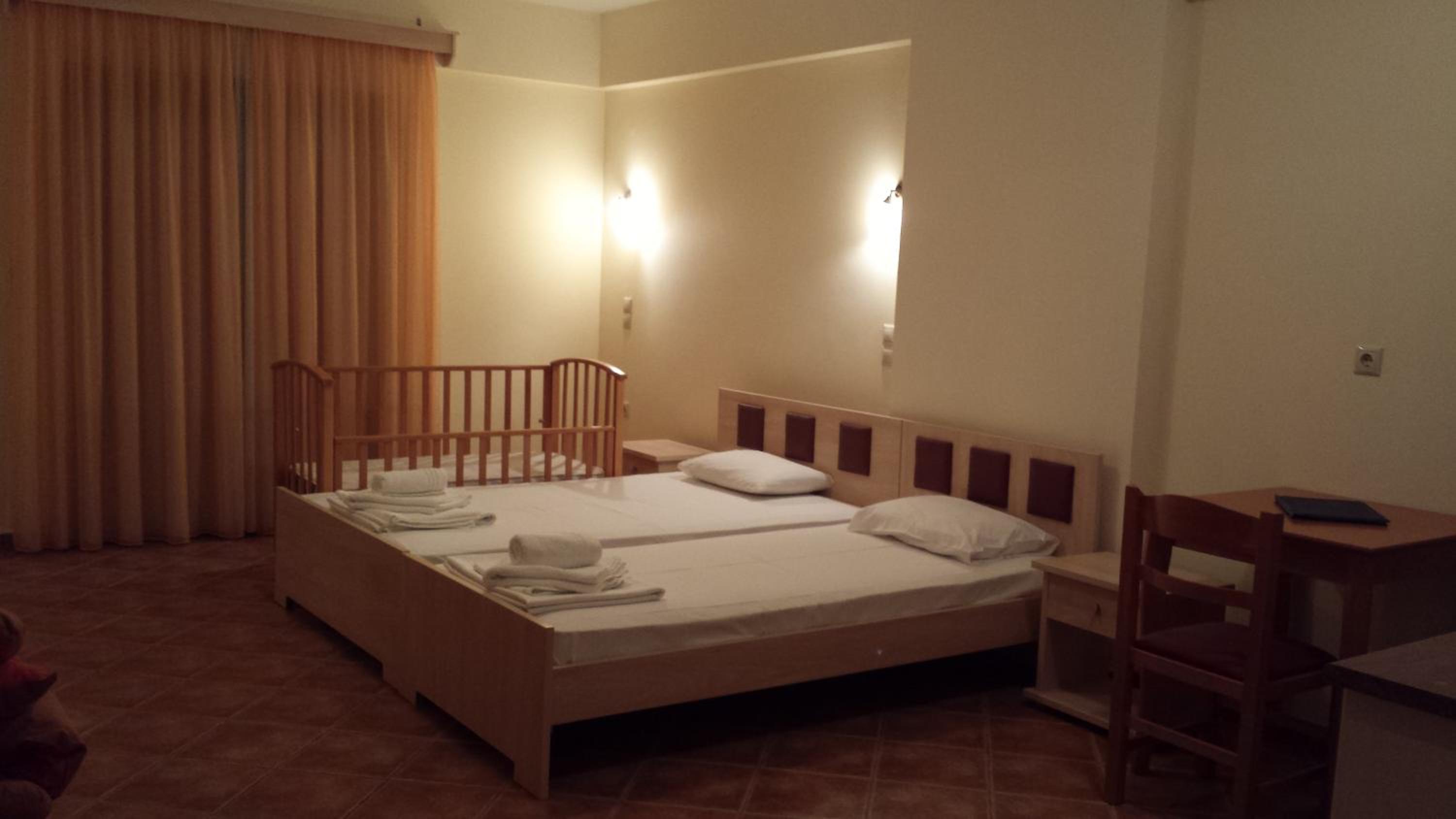 Location was very good. The beach was outstanding. Very good hotel with spatoius and clean rooms. Cots available. Quiet place for family vacations. The staff was very friendly and helpful;Kostas, Maria, Nikos and Irini. The service was very good, always punctual. The food was delitious and very well cooked. Highly recommended.
