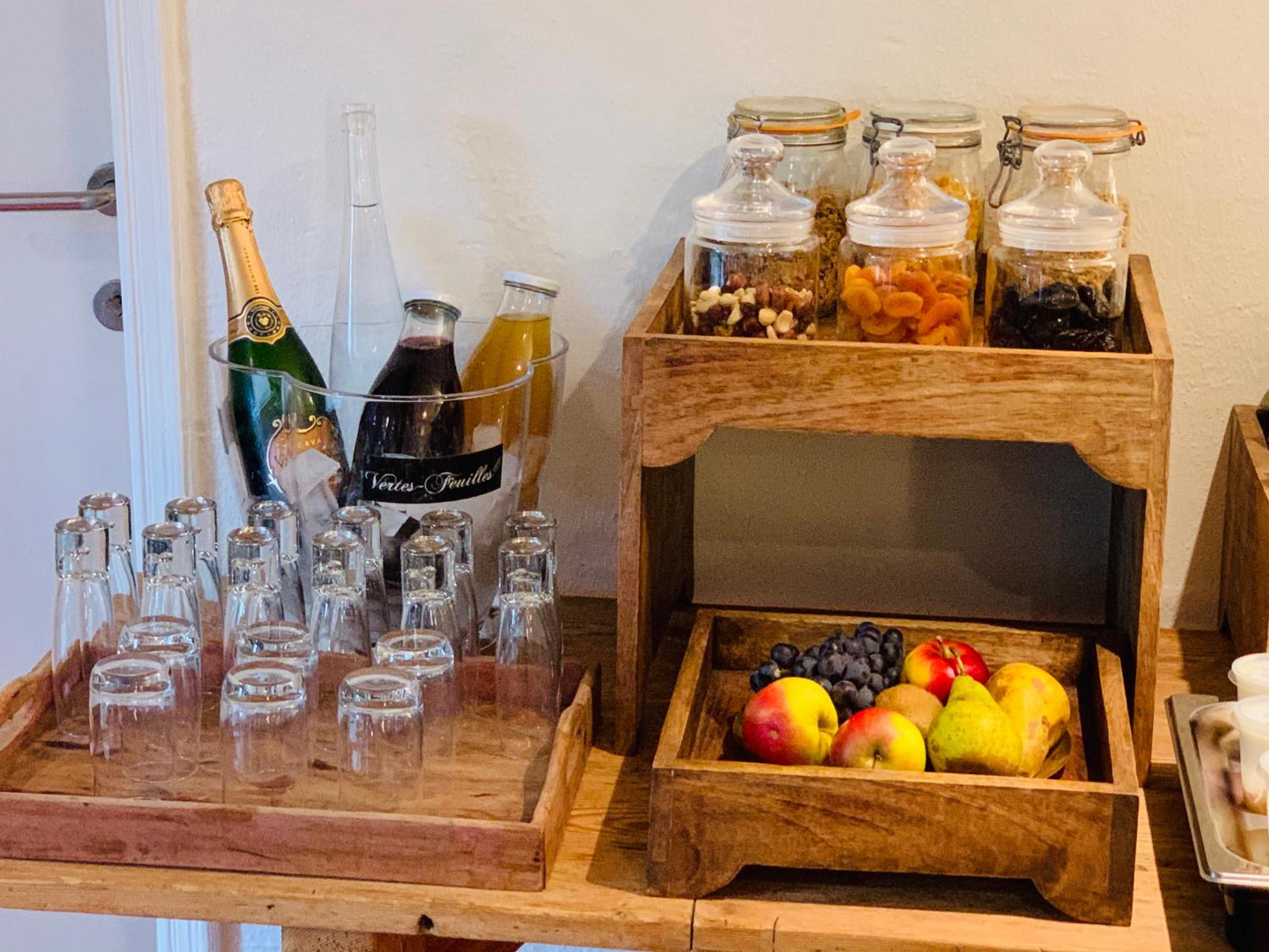 La colazione ha disponibilità di una grande varietà di prodotti (salumi, formaggi, frutta, uova, marmellata, succo di frutta, acqua aromatizzata, pane fatto in casa...)
