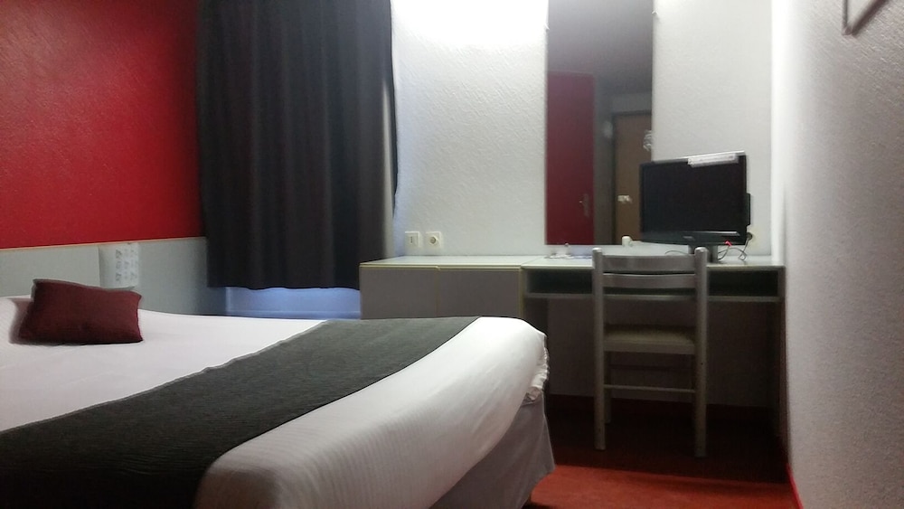 Chambre avec une literie confortable ; proximité des commerces (mc do et cora juste en face de l'hôtel) ; personnel acceillant