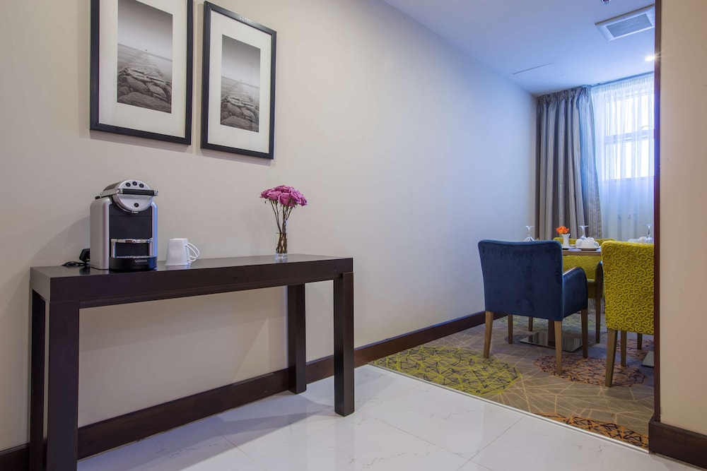 The other thing about this hotel is the location, very close to Al salam Mall and the Andelus mall. Train station al sulaimanya is 10 minutes of walk. Tim horten, McDonald's, 1/2 Million, bakery, convenience store, gas station, many other cafes and restaurants are in a walking distance. A very larg supermarket is 5 minuts of walk.
