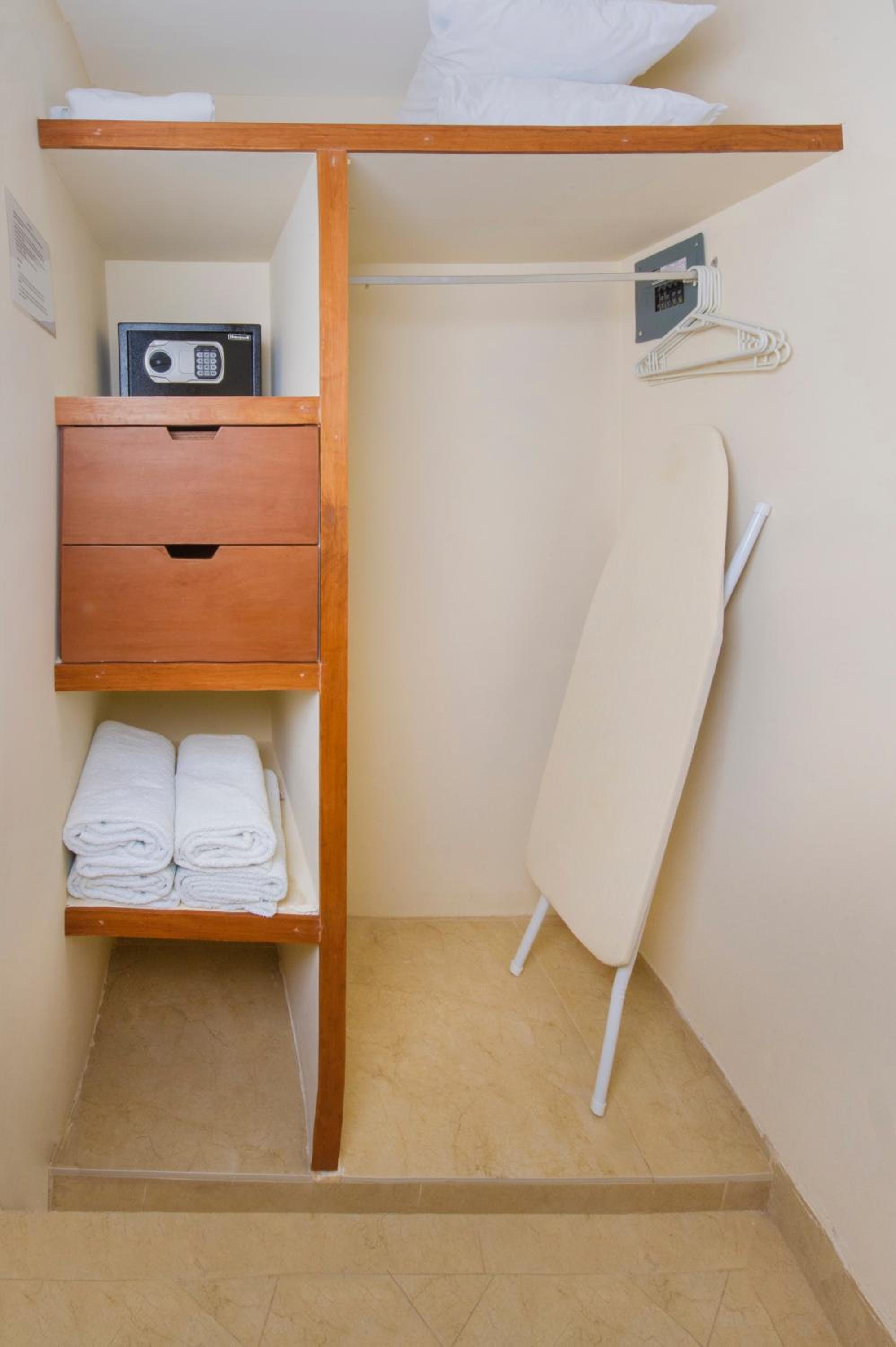 en la habitacion que nos toco con vista al mar no contaba con muebles, únicamente las camas y el closet estaba dentro del baño eso no me gusto por la humedad que se le queda a la ropa