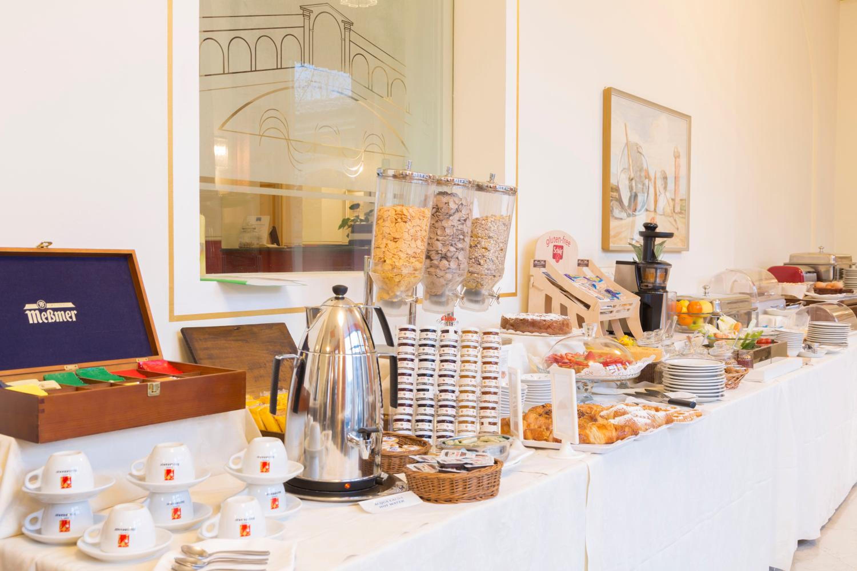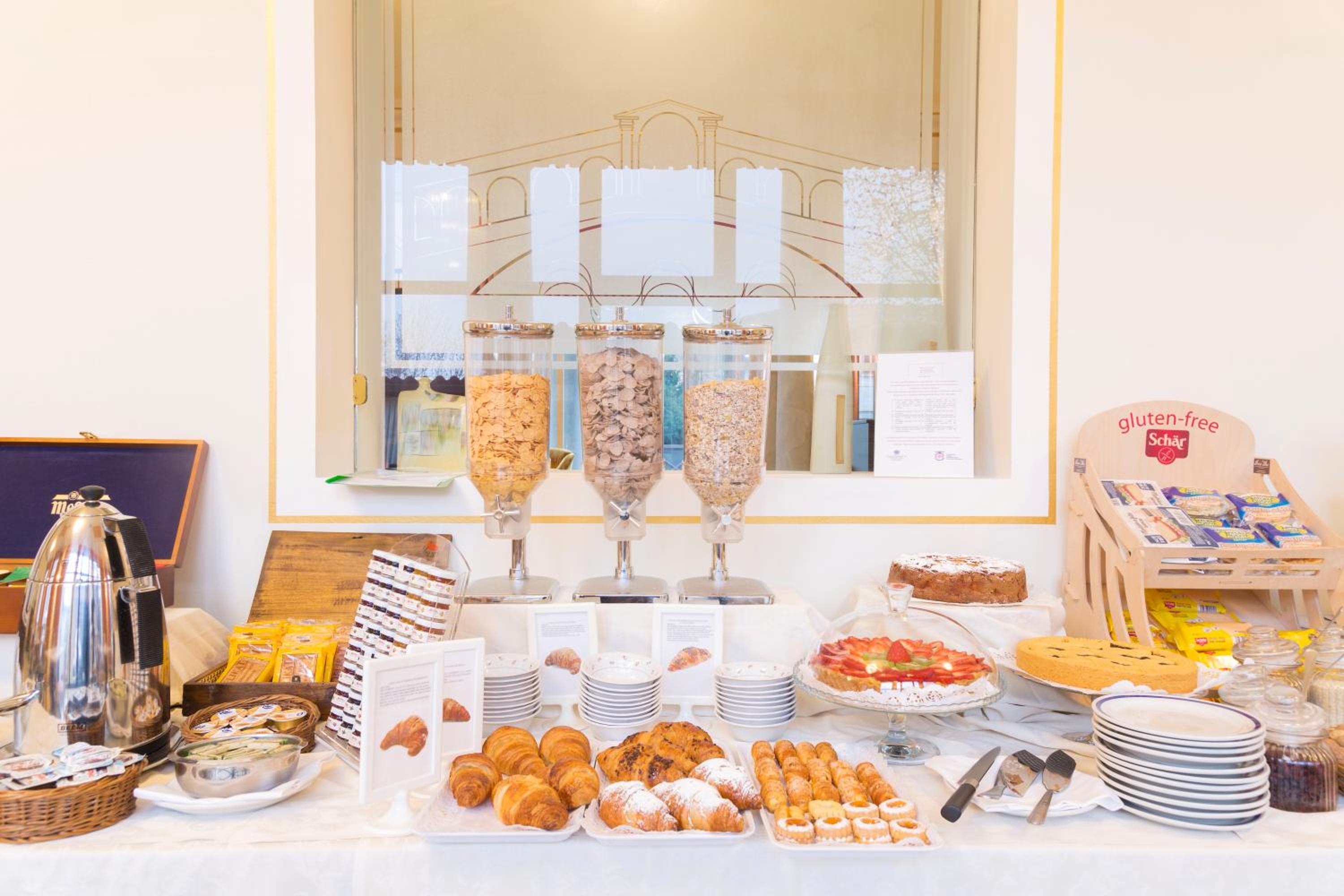 Indulge in a delightful breakfast spread at Ponte di Rialto Hotel, with a mix of sweet and savoury treats. For dinner, savor local specialties at the on-site restaurant.