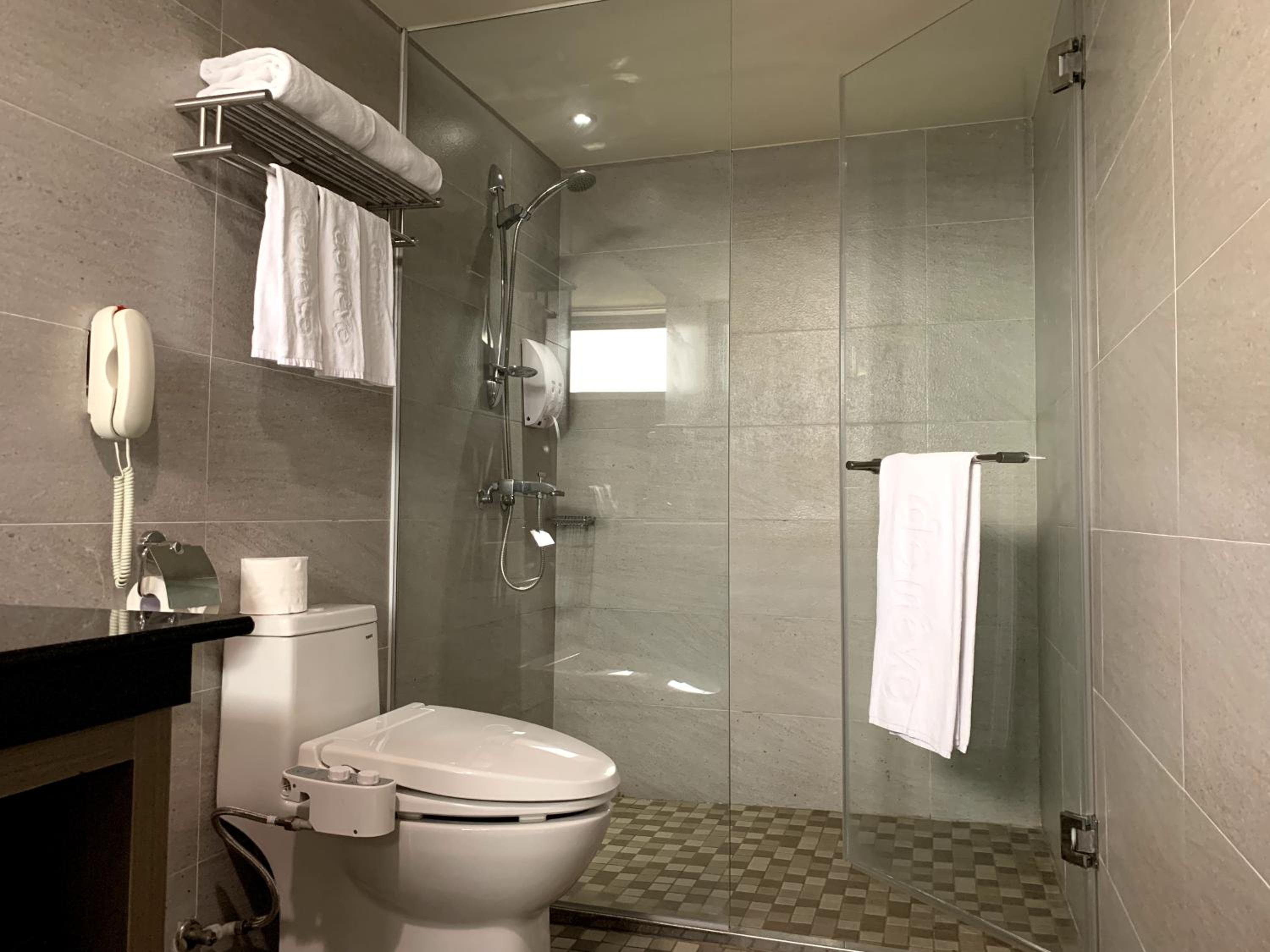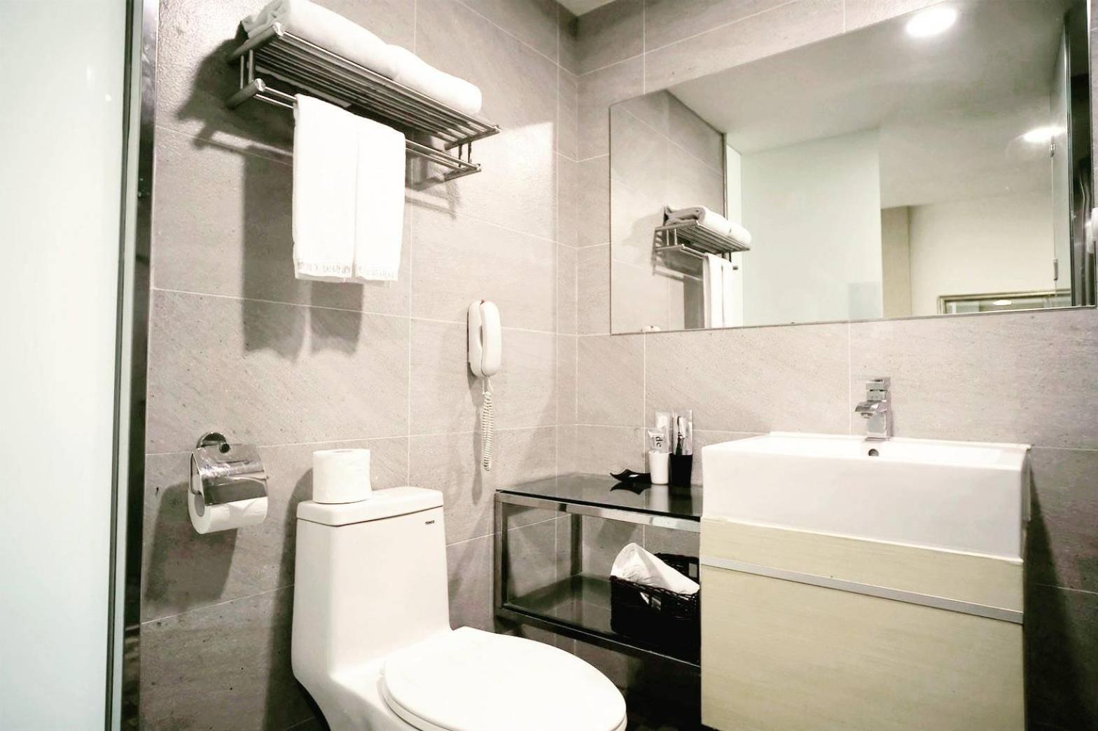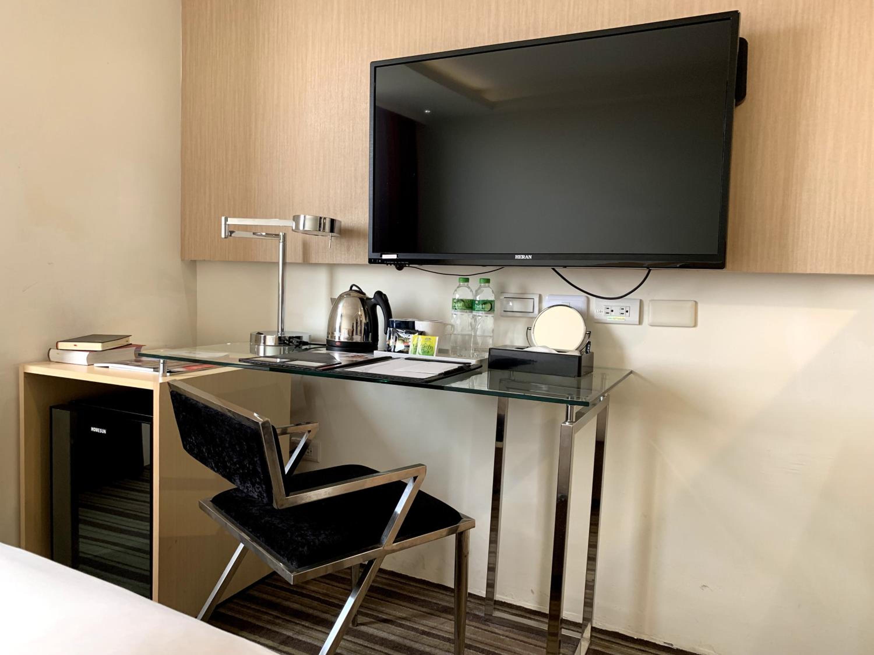 Modern Amenities: Each air-conditioned unit at the hotel is elegantly designed in dark chocolate tones and equipped with a flat-screen cable TV, work desk, and free WiFi. Guests can enjoy city views from their room windows and make use of the convenient amenities like a refrigerator, electric kettle, and free toiletries in the private bathroom.