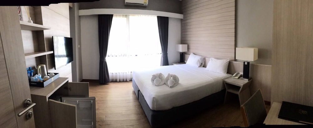Vi bokade ett rum för 3 vuxna och det visade sig vara det minsta rum vi bott i samt att storleken på rum ej utges. Andra natten regnade det in genom taket på rum 206 fick bytat rum till 211 i 3 nätter. Därefter fick vi flytta till 208 där ac inte fungerade samt att det stank något fruktansvärt från avloppet.