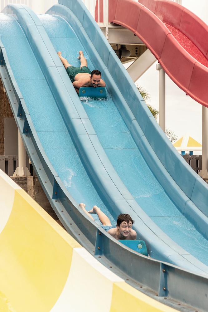 Dive into excitement with two outdoor swimming pools, an attached winery, and a thrilling water park for all ages, plus a complimentary beach shuttle to the nearby coastline.
