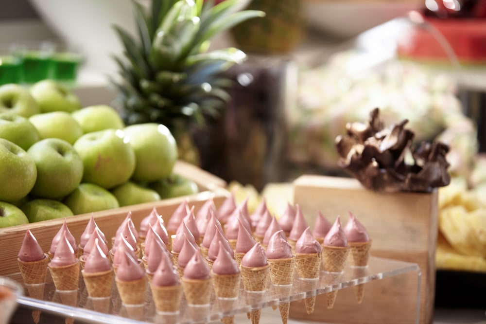 At dinner we experienced no tables, a single drink, no large plates, huge queues for food and no deserts! Food stations with pork/ chicken with no staff to cut and serve.
