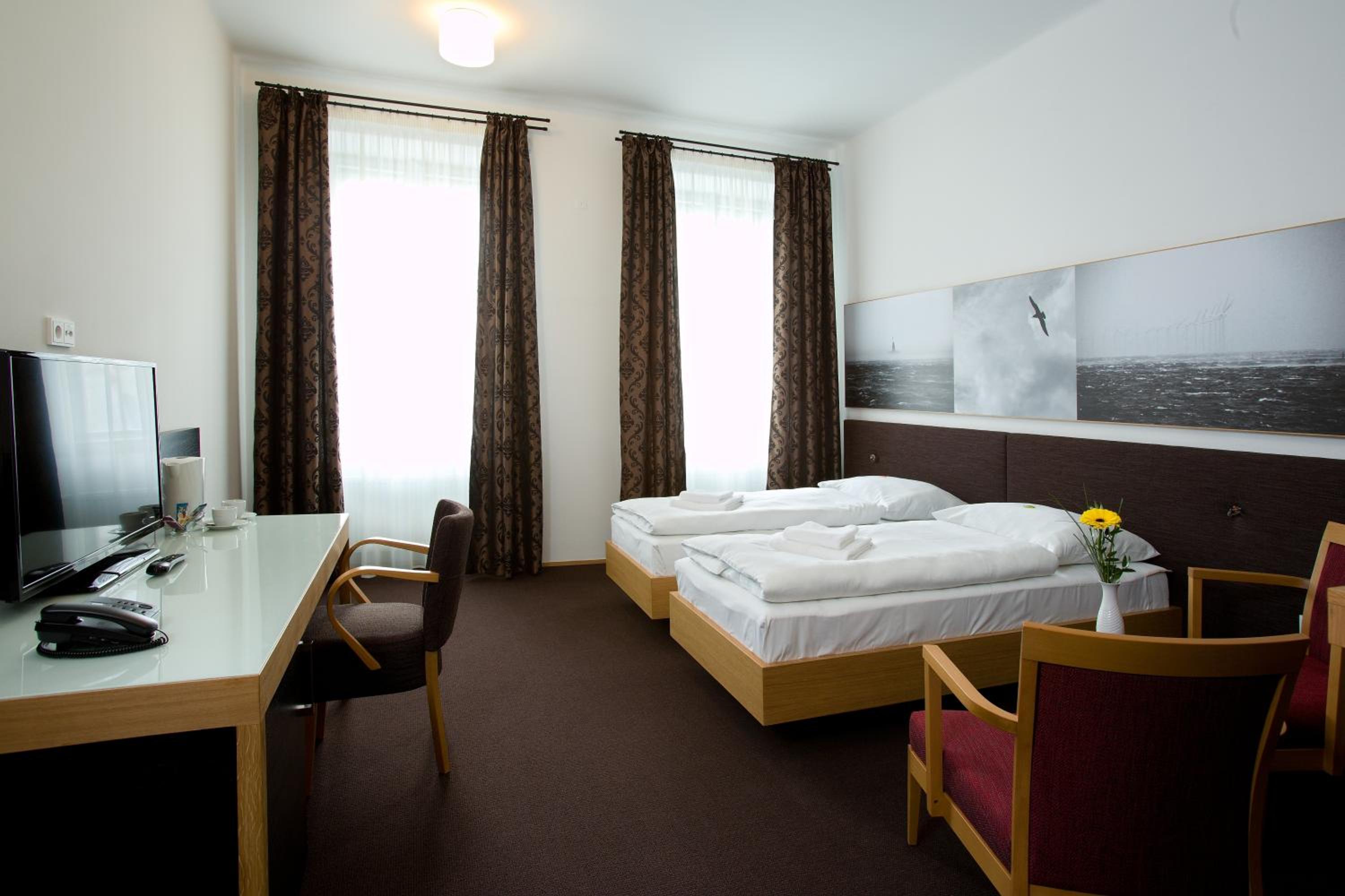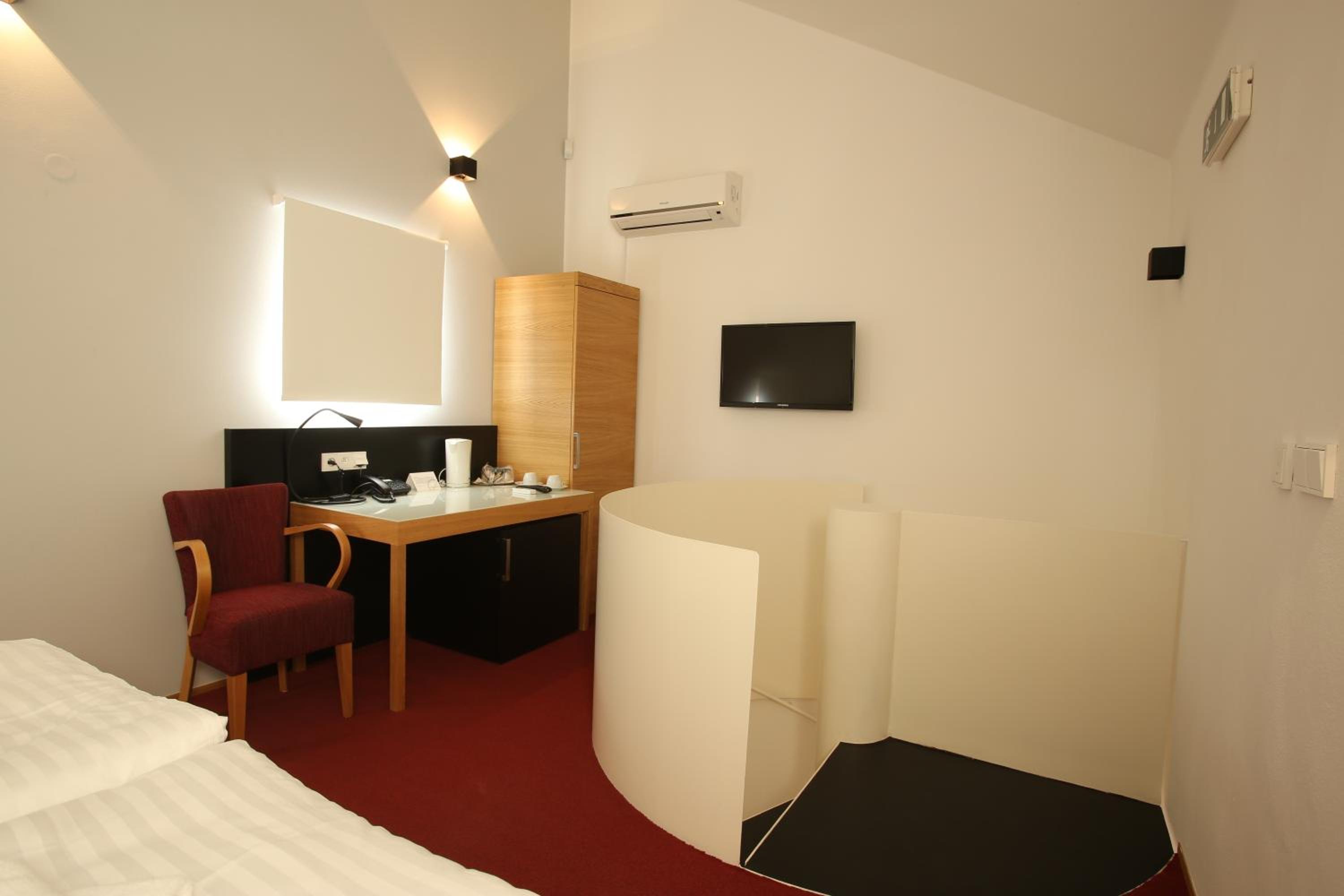 Výšlap do druhého patra už je horší, jasně mají i výtah, ale dva a je to komplikované. Pokoj ucházející, čistý byl, ale postele vrzají, ve sprše padá mýdlo, skříňka vedle umyvadla je oprýskaná. Zelené světlo nad dveřmi "exit" svítí tak moc, že je to jako byste měli zapnutou lampičku. Snídaně, nedostačující, slabý výběr, snídaně je ve sklípku, tudíž se dobře oblečte, je tam zima. A při check-outu by mohl být někdo na recepci... takže kartu jsme dali k počítači a děkujeme za pobyt, příště vybereme určitě něco jiného.