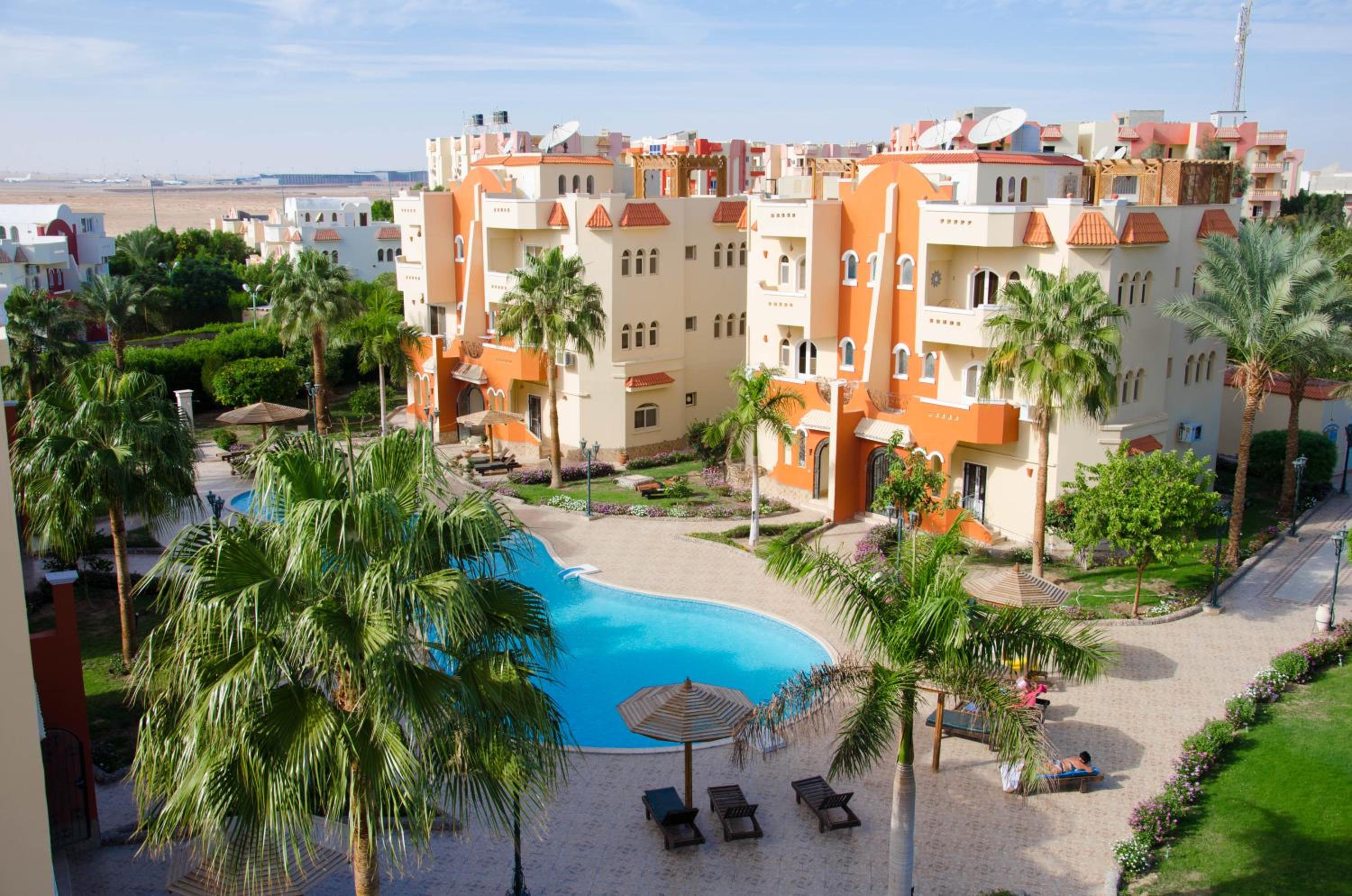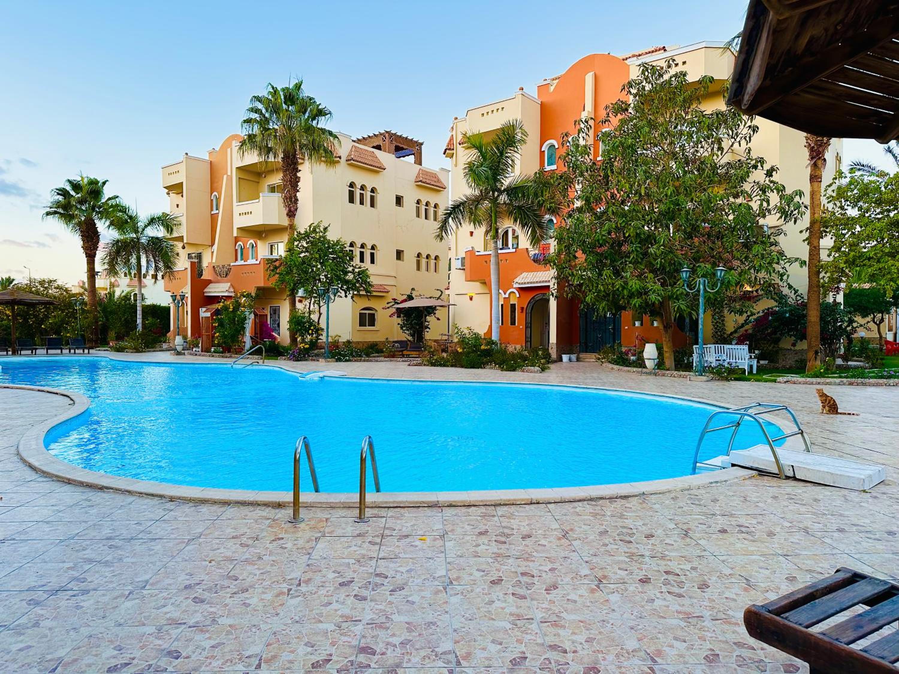 The Green Garden Resort offers elegant and spacious apartments with garden views and a refreshing swimming pool, just 500 meters from Hurghada Boulevard.