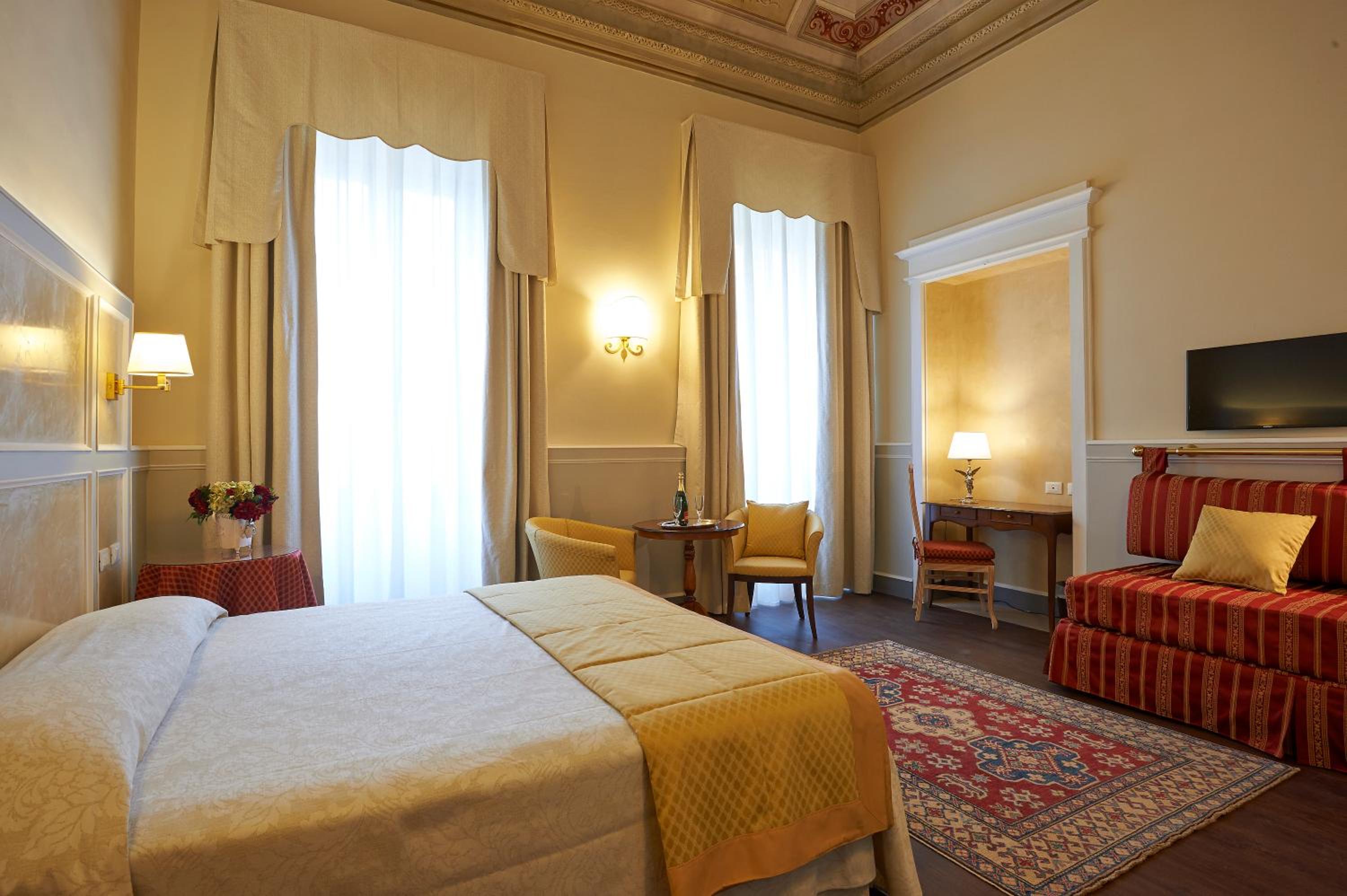 Room is elegant and comfortable. The high ceiling and the painting are very Firenze. And the decors are all matching with the painting.