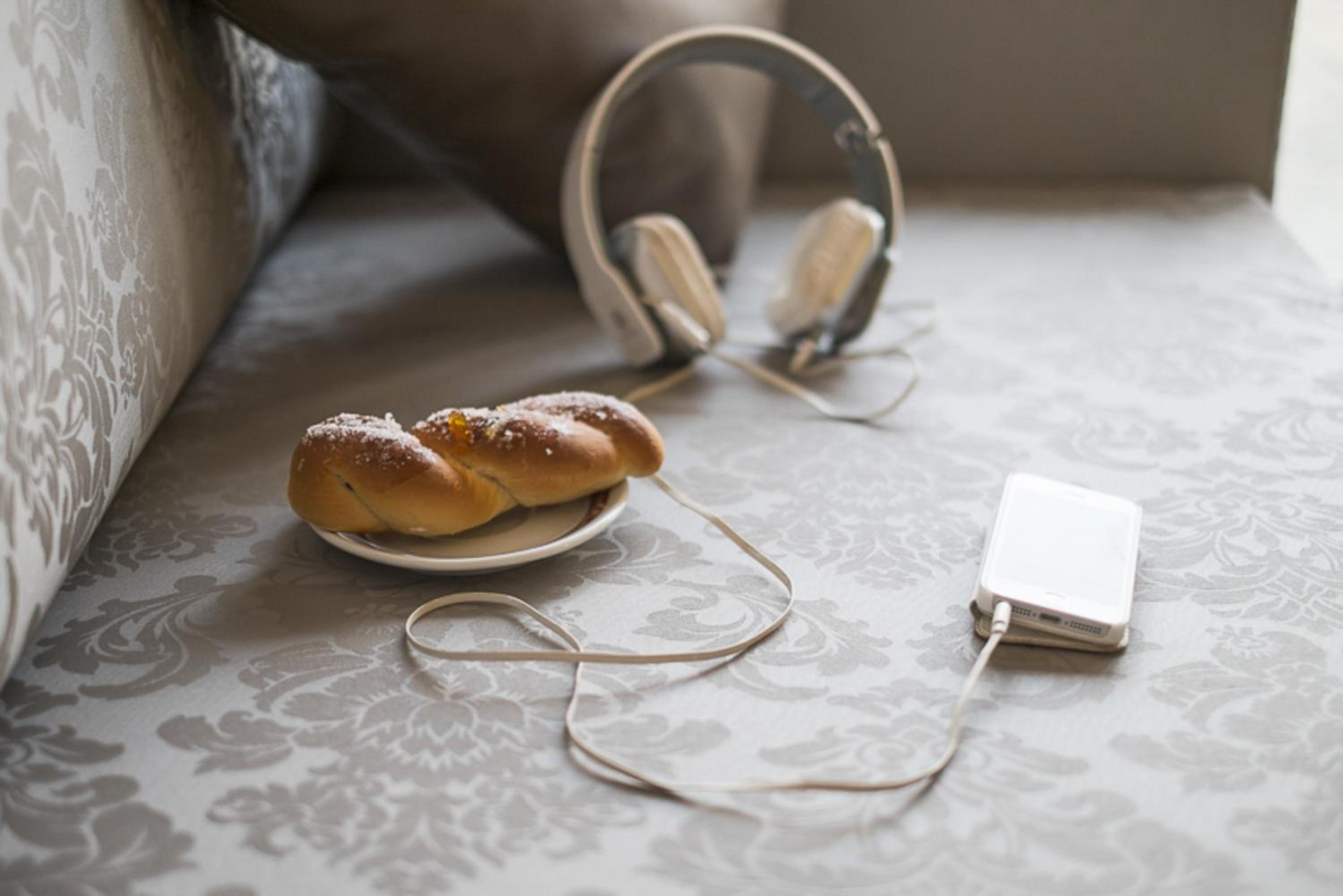 Café da manhã muito simples, um croissant (ou pedaço de pizza) e um café espresso e mais nada. Não tem água, ovos, nem frutas.