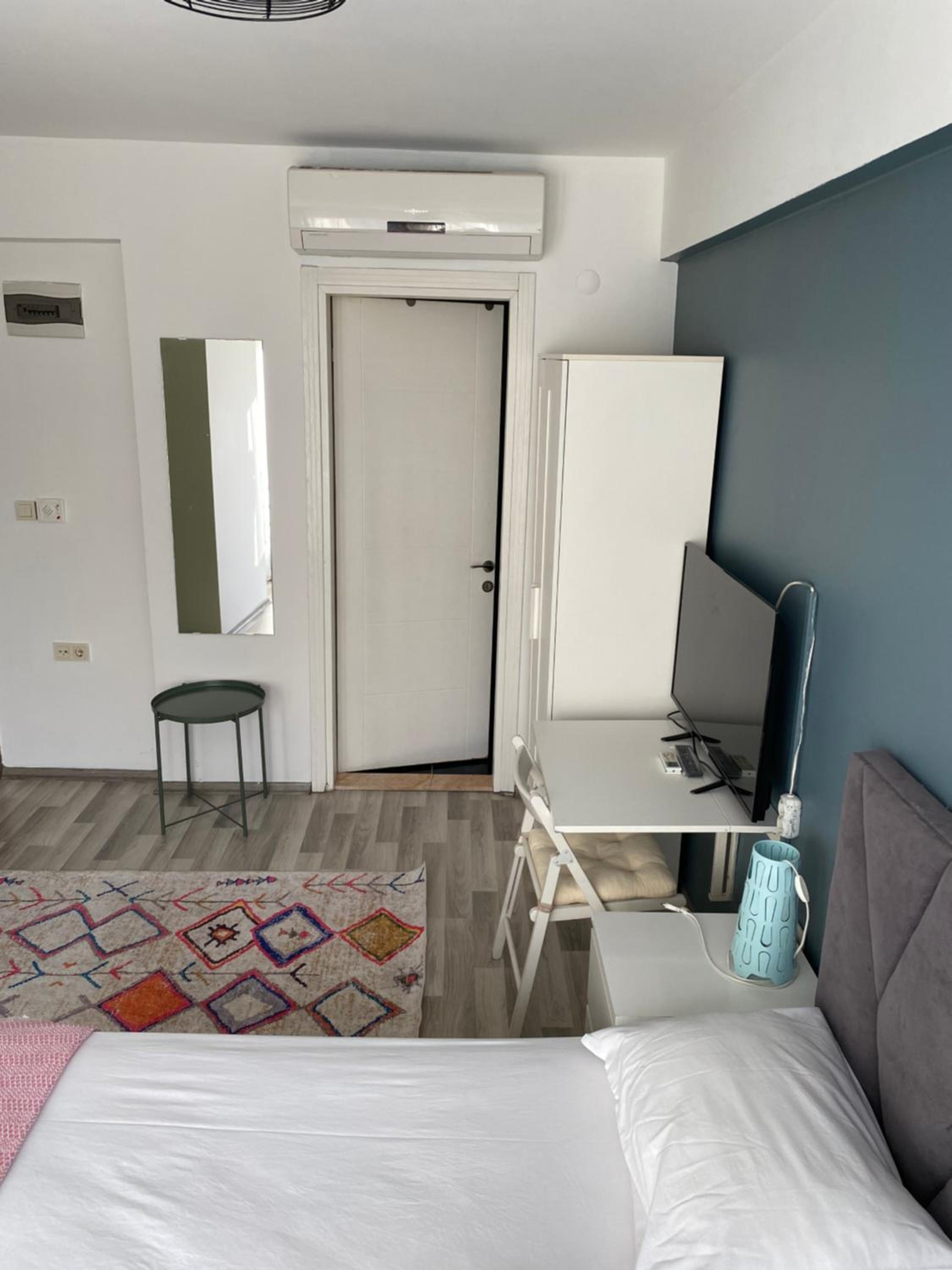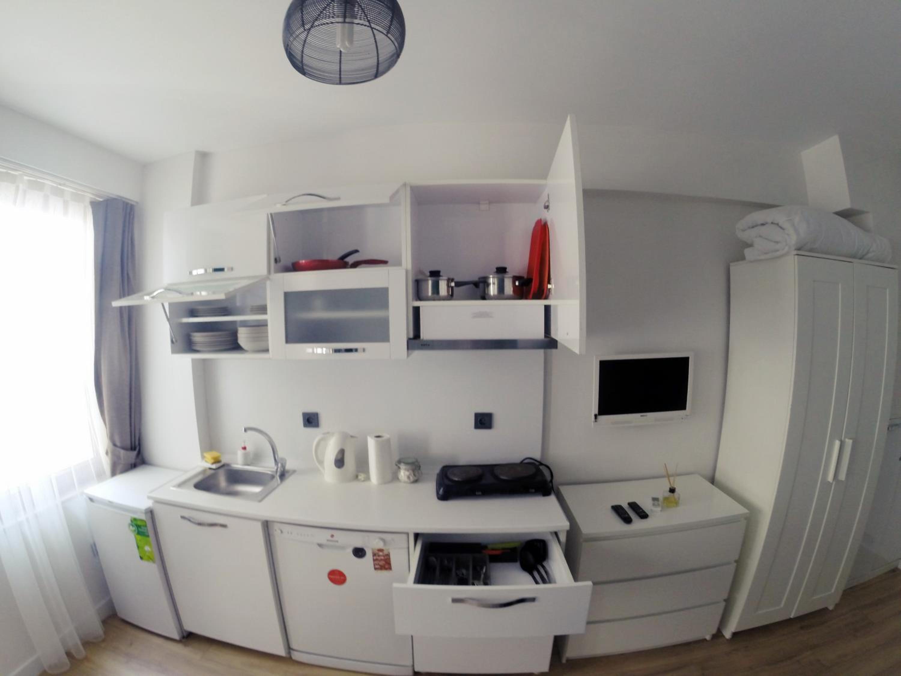 Everything was almost perfect. The studio has everything you need for a comfortable stay and was very clean. The kitchen was very well equipped with modern utensils and appliances, and everything looked quite new. The bathroom was excellent, with a great shower and good-quality shampoo provided. The smart TV with YouTube was a big plus.