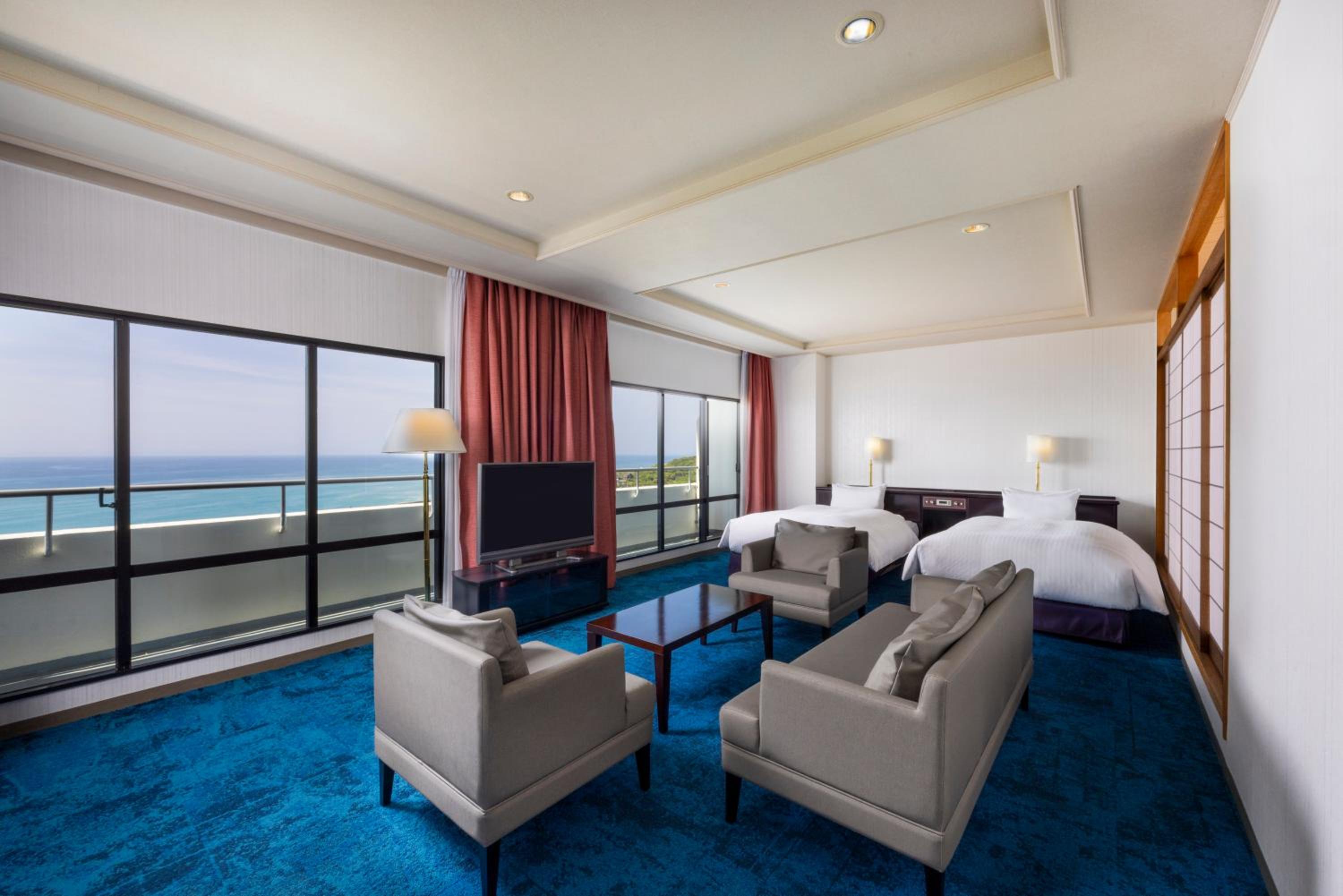 3名で予約。急遽、体調の悪化で2名が行けないことになりました。ホテルに電話でその由を伝えていたものの、記録に残っていませんでした。北側で眺めは悪く、インターネットの繋がりの悪い部屋。3人分で程々の値段だったので、文句は言えないかと思う一方、1名の宿泊となり、その点を考慮して部屋替えなど何か考慮してくれたらなと思いました。ホテルのスタッフは、そんな素振りもなく、何だか杓子定規的というか機械的な感じで、好感が持てませんでした。当日は、くろしお鉄道から徒歩で向かいましたが、汗だくで急な坂道を上り、結局、高台にあるホテルから見えるだろう海の景色を見ることもなく、チェックアウト。何だか空しい気分になりました。ある程度のお金を持った人が対象なんだろうなと、いろいろな場面で感じました。