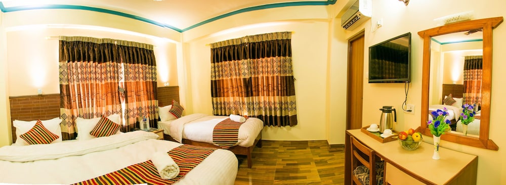 L’hôtel est très bien situé, 5 min à pied du lac. Personnel attentif, ils nous on upgranded sans frais la chambre vue sur le lac. Plusieurs services disponibles à la réception,monnaie exchange, buanderie , activités touristiques et billet d’avion pour Katmandou. Personnelle attentif !!! Je recommande cette hôtel.