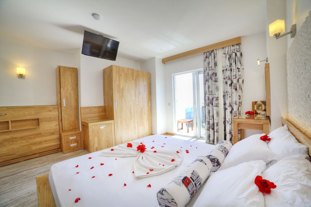 Experience comfort in our guestrooms with private balconies, flat-screen TVs, and complimentary Wi-Fi. Indulge in our complimentary wired internet access, concierge services, and complimentary valet parking for a stress-free stay. Book your retreat at Nur Hotel now for an unforgettable beachfront experience near Kas Marina.