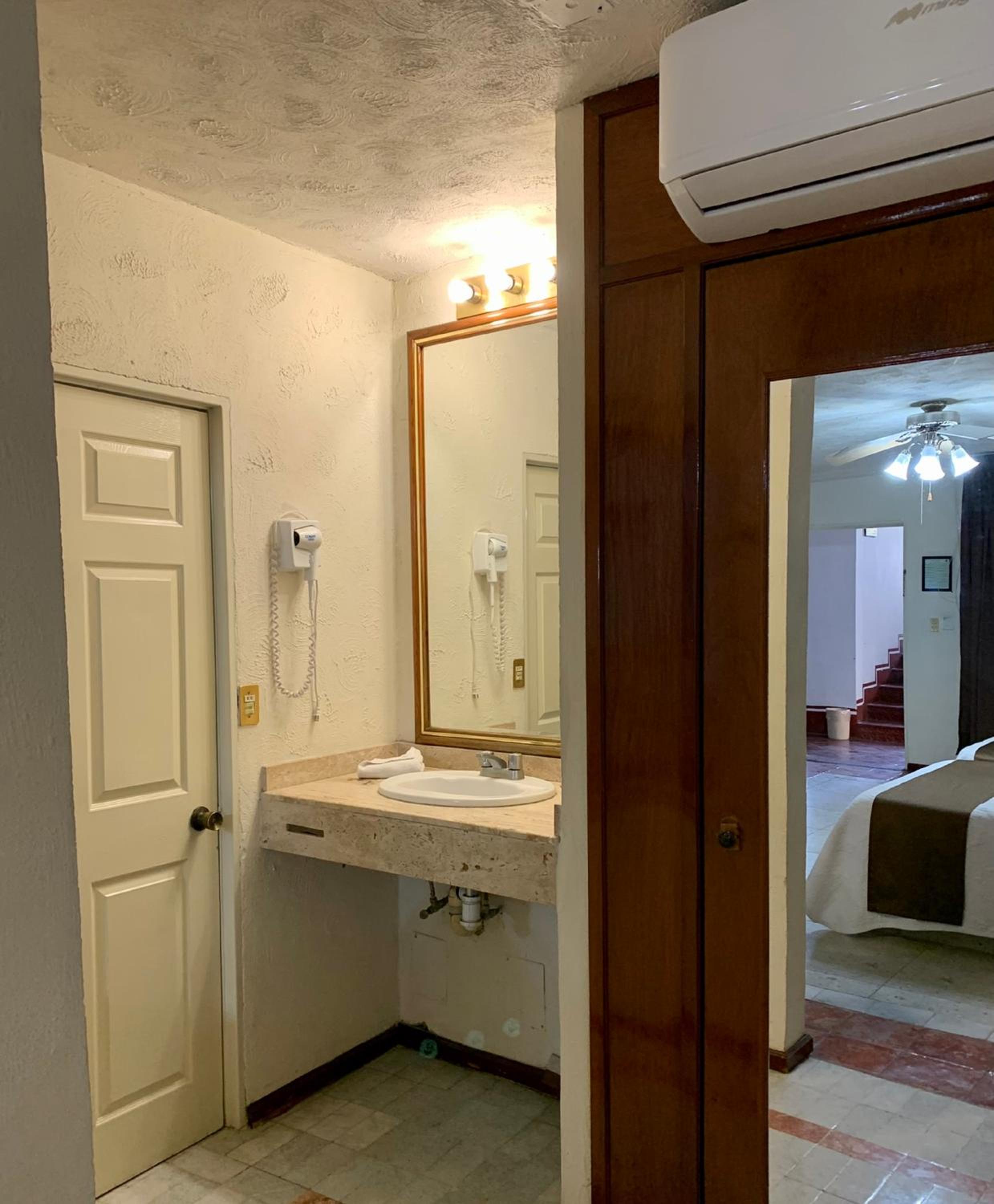 No había haga caliente, falta de papel sanitario, encharcamiento en la regadera, la llave del lavabo tira agua afuera del lavabo. Un almohada muy dura.