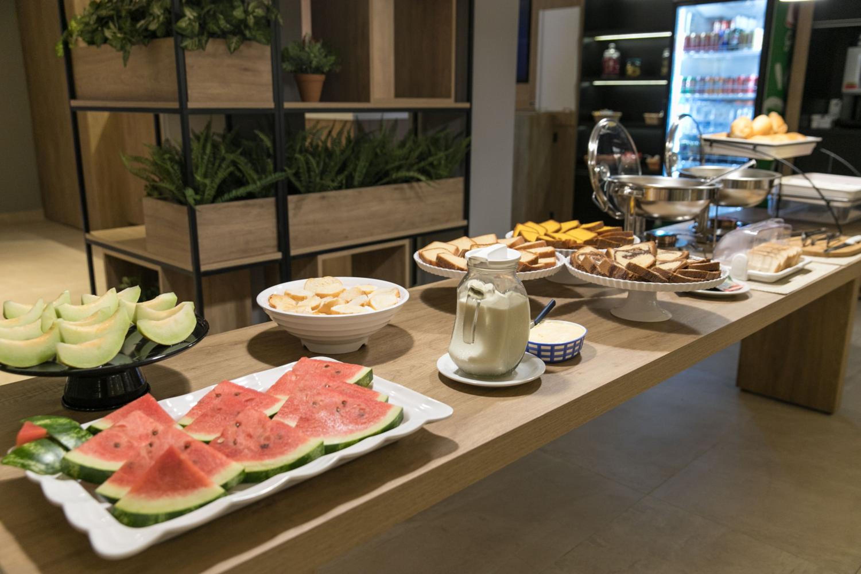 O café da manhã é mediano, tem o essencial mas poderia ter um pouco mais de opções e um bolo com cobertura